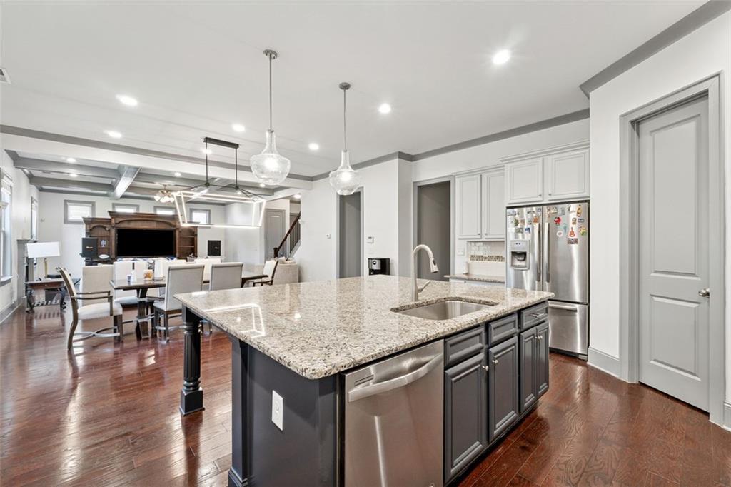 Welcome to this stunning 5-bedroom, 4-bathroom home located in the highly sought-after Buford City School District. This elegant residence features a spacious entrance foyer that opens into a formal dining room; Bedroom with private bath on main or use as a private office perfect for working from home. The gourmet kitchen is a chef’s dream, complete with granite countertops, a large center island, white cabinetry, stainless steel appliances including a vented-out hood, and a walk-in pantry. The kitchen overlooks the family room with a cozy fireplace, creating the perfect space for entertaining and everyday living. On the main level, you'll find a guest bedroom with a full bath. Upper Level features four additional bedrooms, including an oversized owners suite with sitting area, walk-in-closet, a trey ceiling, a luxurious en-suite bathroom with double vanities, a separate soaking tub and shower, and a large walk-in closet. One secondary bedroom has its own private bath, while the other two share a convenient Jack & Jill bathroom. Outside is a perfect outdoor space with screened porch with ceiling fan perfect for outdoor entertaining, grilling, or relaxing with family and friends. Community amenities include swim, tennis, and a playground, nature trail. Conveniently located just minutes from Bogan Park, the Mall of Georgia, shopping, dining, and major highways—this home offers the perfect blend of comfort, style, and location. Included in the rent is Pest Control and Lawncare. Small dogs, New LVP in the bedroooms, No Carpet