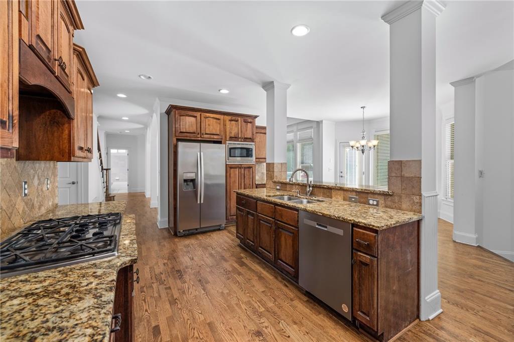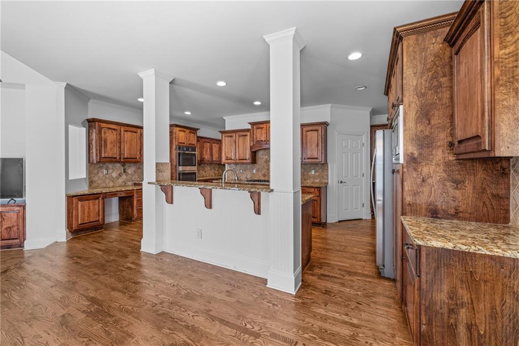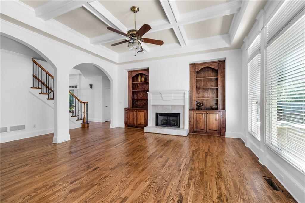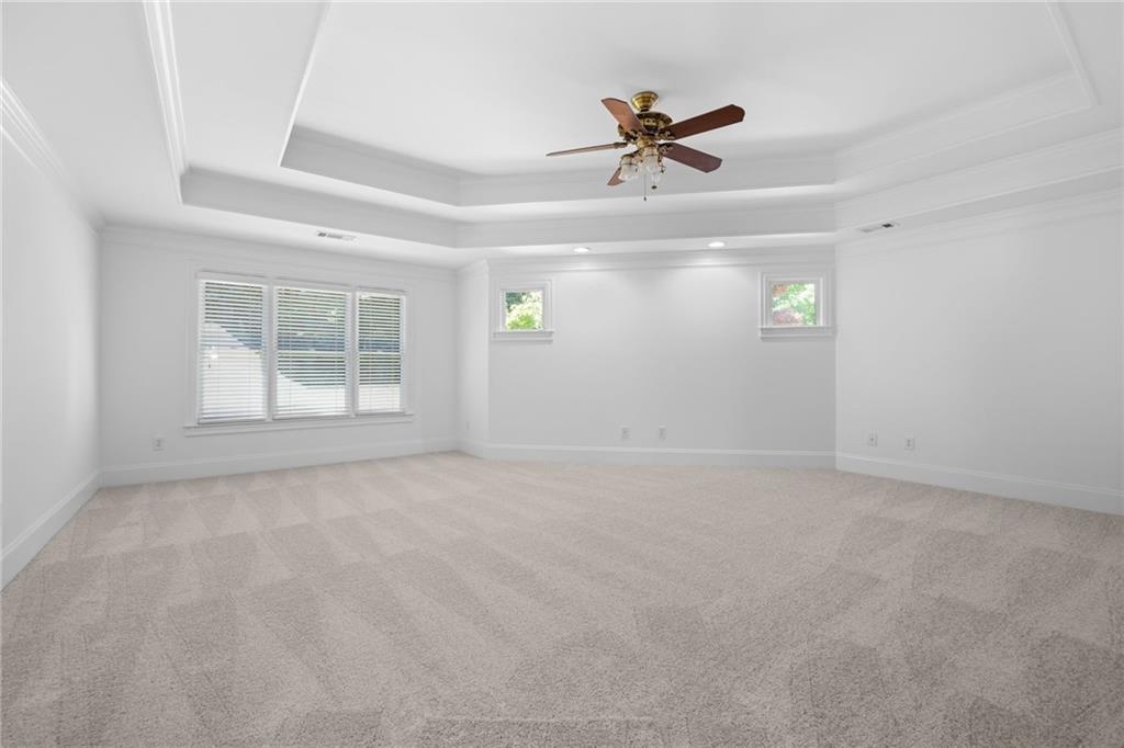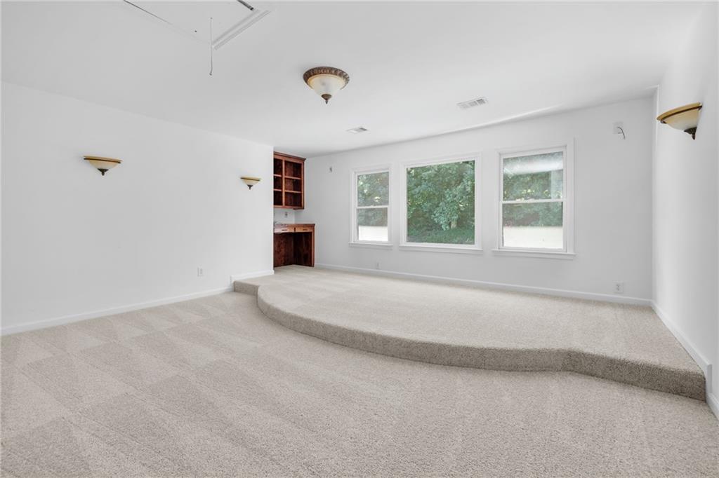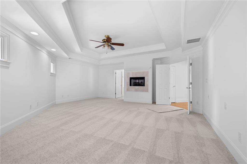 Don't miss the opportunity to rent this beautiful, spacious executive home nestled in a quiet, upscale neighborhood. Recently renovated flooring and freshly painted throughout. The large gourmet kitchen, featuring a breakfast area, overlooks the vaulted fireside keeping room. A coffered ceiling adorns the fireside great room, complete with built-ins and a wall of windows. The main-level bedroom includes a walk-in closet and full bath. Enjoy working from home in the main-level private office, which boasts a bookcase, desk, and French doors for privacy. The primary bedroom is expansive, offering a seating area with a fireplace. The master bath provides ample counter space with dual sinks, a generous shower, and a whirlpool tub for end-of-day relaxation. The walk-in closet features built-ins and a large island with drawers. Two upstairs bedrooms share a Jack-and-Jill bath, and an additional bedroom with a private bath completes the upstairs. Outdoor kitchen grill and refrigerator do not work. Homeowner removing/addressing. Pets are considered on a case-by-case basis with a nonrefundable deposit.