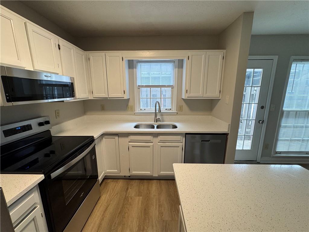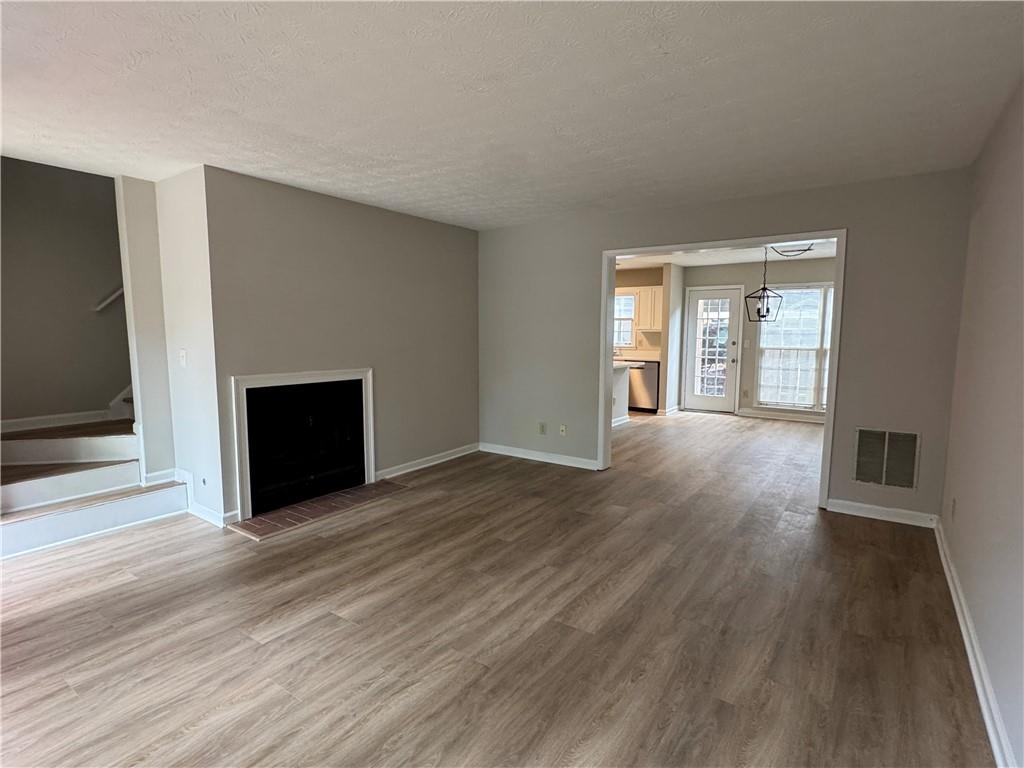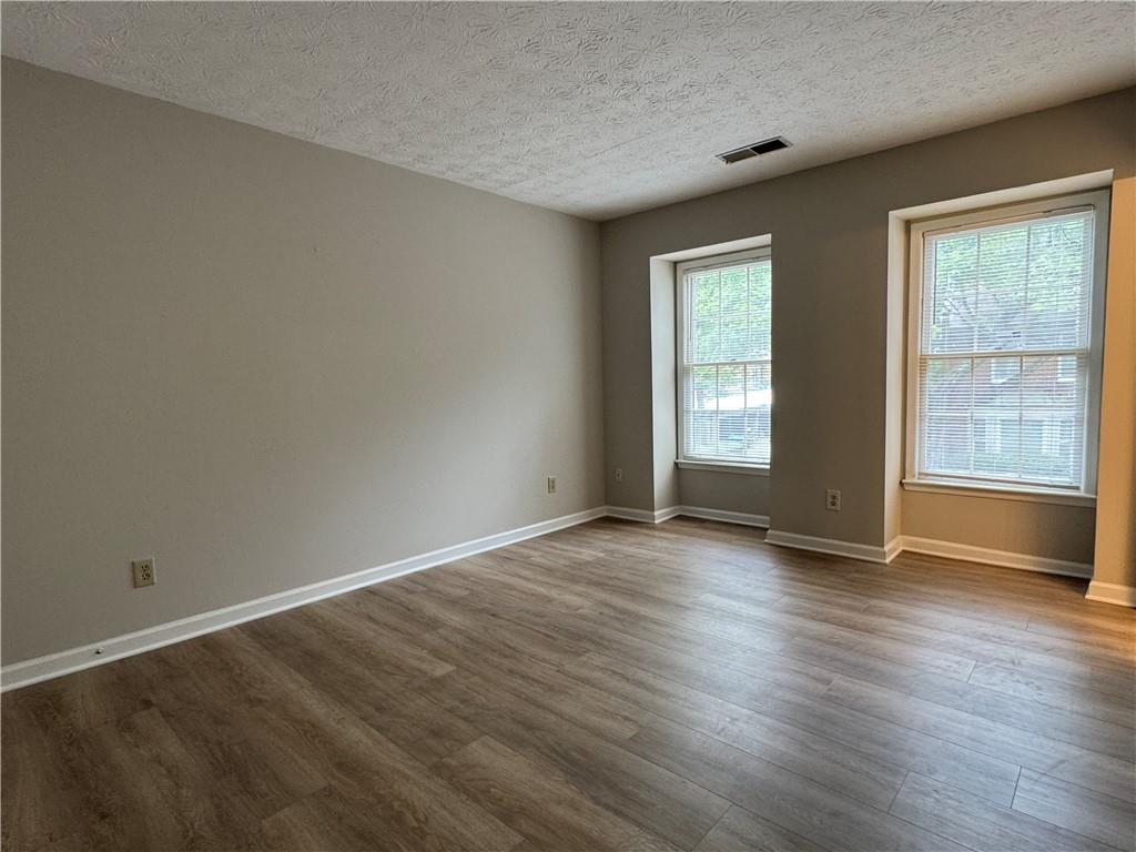 Full house renovation just completed! Practically like new 2 bed 2.5 bath townhome in great Duluth location! Beautiful new kitchen: all new quartz counter-top, white cabinets, stainless steel appliances and refrigerator! Premium 9-inch wide luxury vinyl plank flooring throughout, no carpet! Three upgraded bathrooms: quartz counter-top, newly painted cabinets, and new toilets. New paint interior and exterior, new blinds, hardware and light fixtures! Spacious kitchen/dining/living room open floor plan on first floor. Two en-suite bedrooms upstairs. Plenty of natural light. Quiet location. Covered parking for 2 cars & storage. Great community amenities include swim/tennis, lake, trails & playground! Walking distance to shopping and dining nearby. Available for move-in from 9/1/2025.
