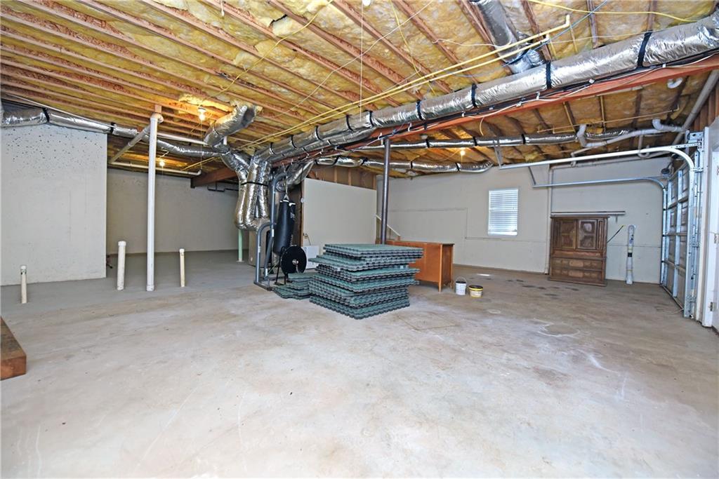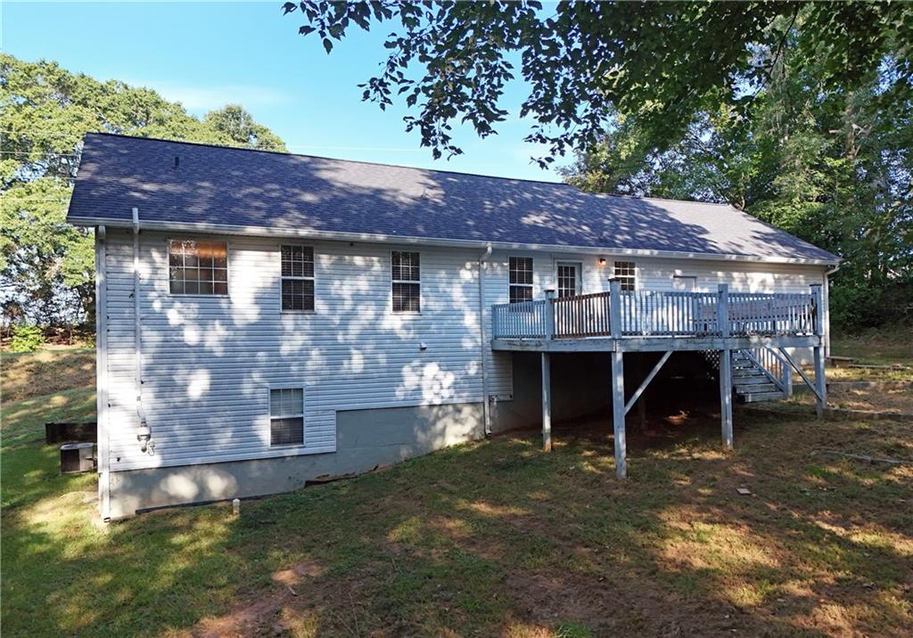 Beautifully updated 3BR/2BA ranch on a private, wooded 1.06-acre corner lot. Open floorplan with modern eat-in kitchen featuring stainless steel appliances, updated cabinetry, and abundant natural light. Spacious living room with durable LVP flooring throughout main level. Primary suite offers a large walk-in closet and ensuite bath with soaking tub and separate shower. Two additional bedrooms share a full bath. Laundry room on main level with washer and dryer included. Deck off the kitchen overlooks the private backyard, perfect for relaxing or entertaining. The highlight of this property is the HUGE full unfinished basement with exterior boat door ideal for storage, workshop, gym, or recreational use. Additional features include a 2-car garage, ample driveway parking, and wooded surroundings that provide peace and privacy. Move-in ready for comfortable and spacious living!
