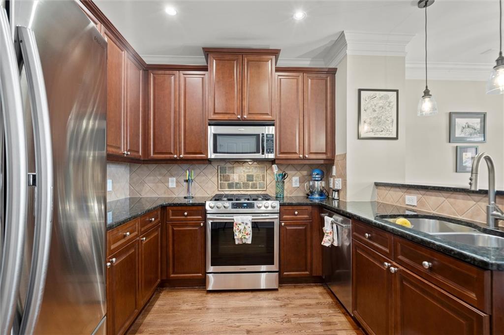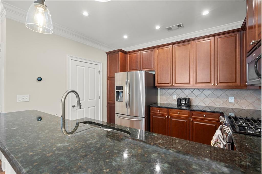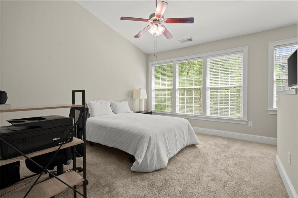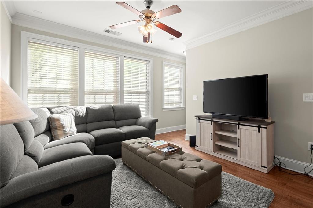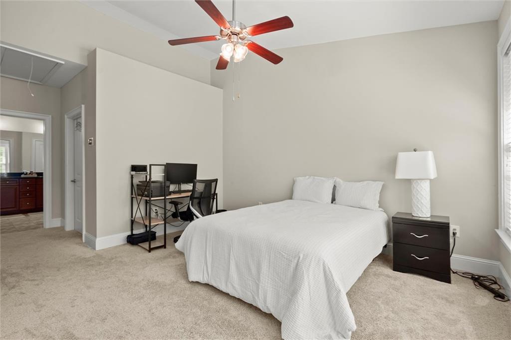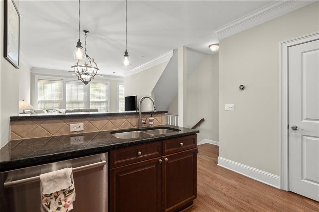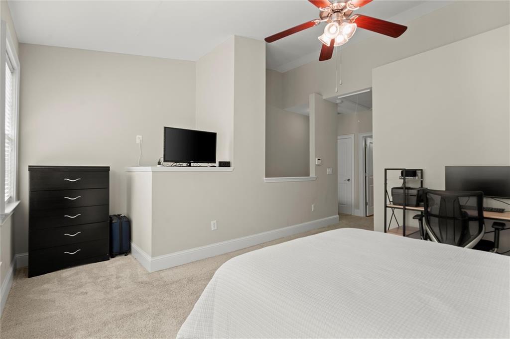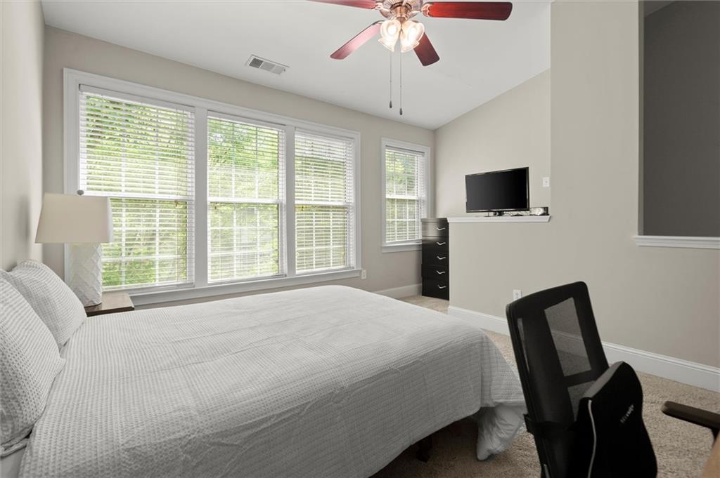 Now offering $5,000 closing cost incentive to use as buyer would like! Don't miss your chance to call this charming townhome in gated, swim community, directly across from Blackburn Park home! This 1 bedroom, 1.5 bathroom home has an easy, open floor plan with hardwood floors on main, tall ceilings and lots of natural light streaming in from windows. Kitchen is extra spacious with stainless steel appliances, granite counters, plenty of cabinets offering storage, and breakfast bar with view to dining and living area. On the upper level, find your primary retreat with vaulted ceiling generously-sized bedroom, walk in closet, and a spa-like bathroom including double vanities, private water closet, and separate soaking tub and shower. The lower level offers a half bath and great bonus space for workout room, office, or entertaining space--whatever you need! This private, gated community features a beautiful clubhouse with fitness center, beautiful pool with hot tub, fishing pond, a lovely walking trail, and all of this in an amazing location with easy highway access and just minutes from Buckhead Village, Perimeter Mall, and tons of dining, shopping, and entertainment options.