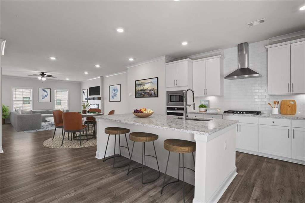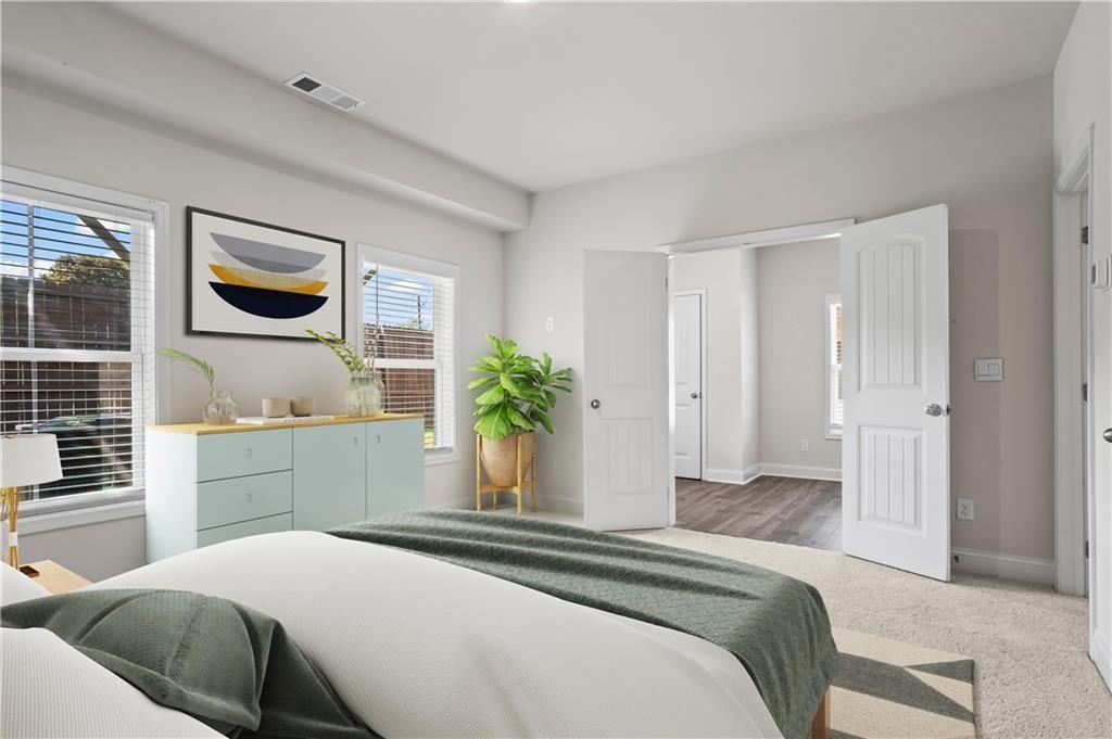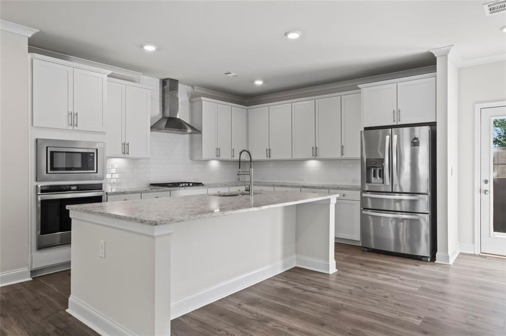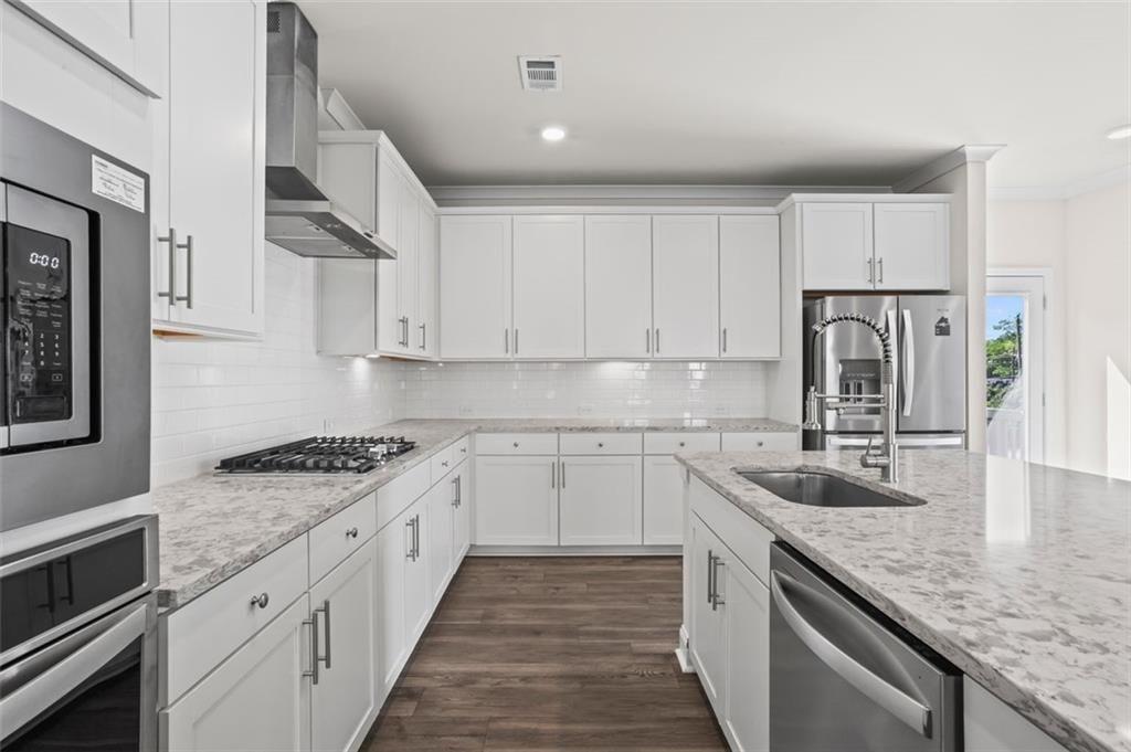 This elegant 3-story townhome is located in the gated Gardendale community in downtown Duluth—just steps from restaurants, shopping, and entertainment. Built in 2021 and impeccably maintained, this 2,696 sq ft home offers 4 bedrooms, 3.5 bathrooms, and a 2-car garage. The terrace level features a private in-law suite with backyard access, while the main level is ideal for entertaining with a spacious great room, modern electric fireplace, and luxury vinyl floors. The chef's kitchen showcases 42" white cabinets, soapstone countertops, stainless steel appliances, and a large island, opening to a private deck. Upstairs, the primary suite includes a custom walk-in closet, wood accent wall, and spa-like bath. Smart home features provide remote access to climate control and security. A perfect blend of style and smart living—schedule your showing today!