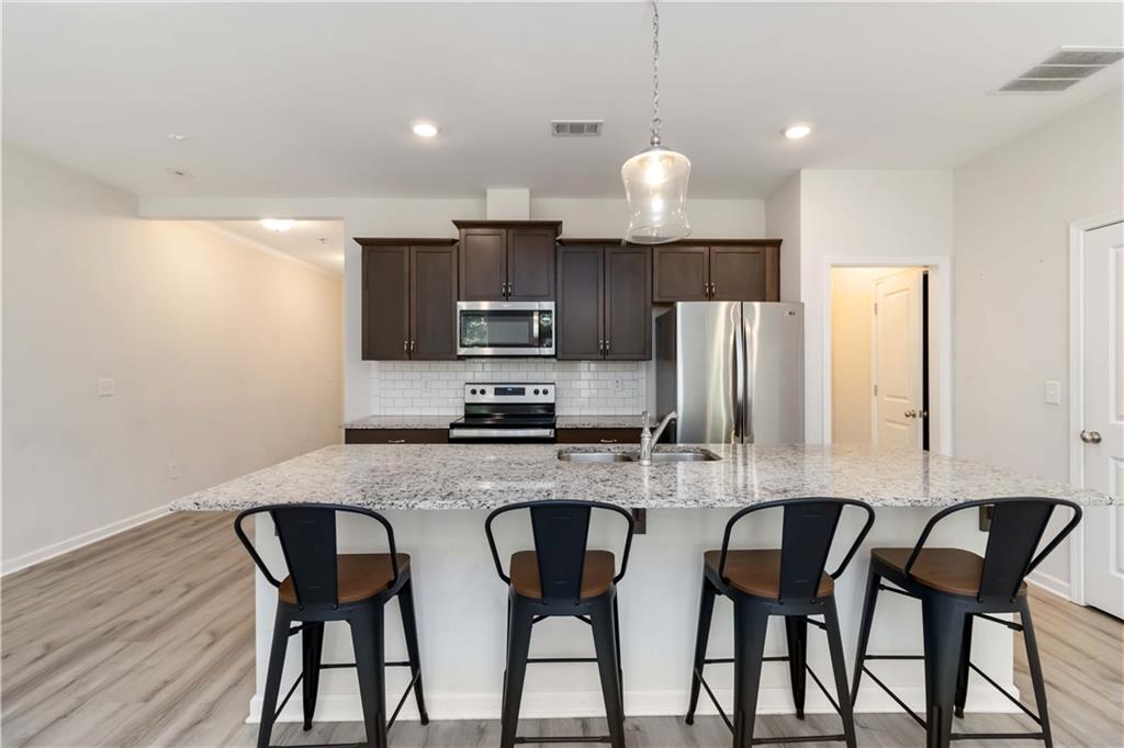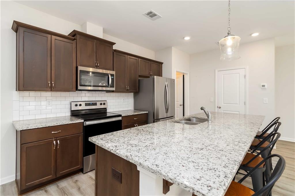 1039 Collections Drive, Lawrenceville, GA 30043 – Step into luxury living at The Collection at Wolf Creek, a gated townhome community in the heart of Lawrenceville. This spacious 2,297 sq ft, 3-story home features 4 bedrooms, 3.5 baths, and an open floor plan filled with natural light. The gourmet kitchen shines with upgraded finishes and overlooks the living and dining areas, perfect for entertaining. Retreat upstairs to a private suite with its own balcony, while secondary bedrooms offer plenty of comfort and space. Enjoy a backyard with a concrete patio, ideal for relaxing outdoors. This smart-home-ready property is equipped with wireless access points and Ethernet throughout, ensuring seamless connectivity. Conveniently located within 5 miles of Hwy 316 and I-85 and zoned to Gwinnett County’s top-rated schools. A rare opportunity to enjoy modern design, smart technology, and gated community living all in one.