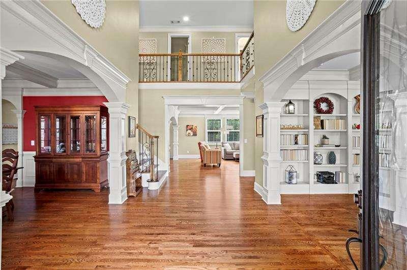 Exquisitely maintained traditional home on one of the best lots in the subdivision! High quality, custom construction and an entertainers dream. This 4 bedroom/5 1/2 bath home caters to a large family or small. Gleaming hardwood floors throughout the main level. Completely private fenced backyard that stretches past the fence. No neighbors within sight. Catch a quick catnap on either of the screened porches, off the main living area or master suite. Lots of work from home opportunities throughout, including the wide open spaces in the finished basement including a full sized bathroom or on the main level with an incredible wall of built-ins. No expense spared on the crown moldings and coffered ceilings. Sellers have taken great care of this home and it shows from the minute you walk thru the front door into the soaring 2 story entry. Definitely move in ready, you will not be disappointed!