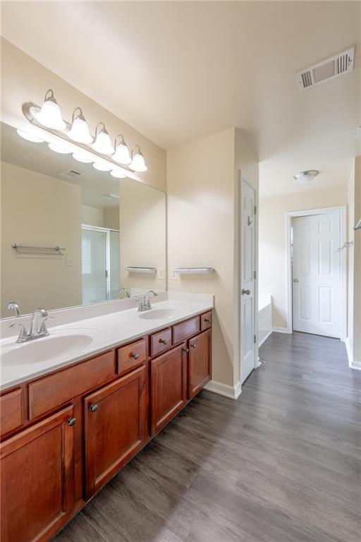 Welcome to this spacious and inviting brick-front home, perfect for comfortable everyday living. The main level features an open family room with a cozy fireplace that flows into the kitchen and dining area, along with a versatile bedroom and full bath. Upstairs, a large loft provides extra space for a second living room, playroom, or home office. The oversized primary suite offers a private retreat with vaulted ceilings, a spa-style bath, and a walk-in closet, while three additional bedrooms and another full bath complete the upper level. Outside, enjoy a fully fenced backyard—ideal for relaxing or entertaining. With plenty of space and a flexible layout, this home is move-in ready and waiting for you!