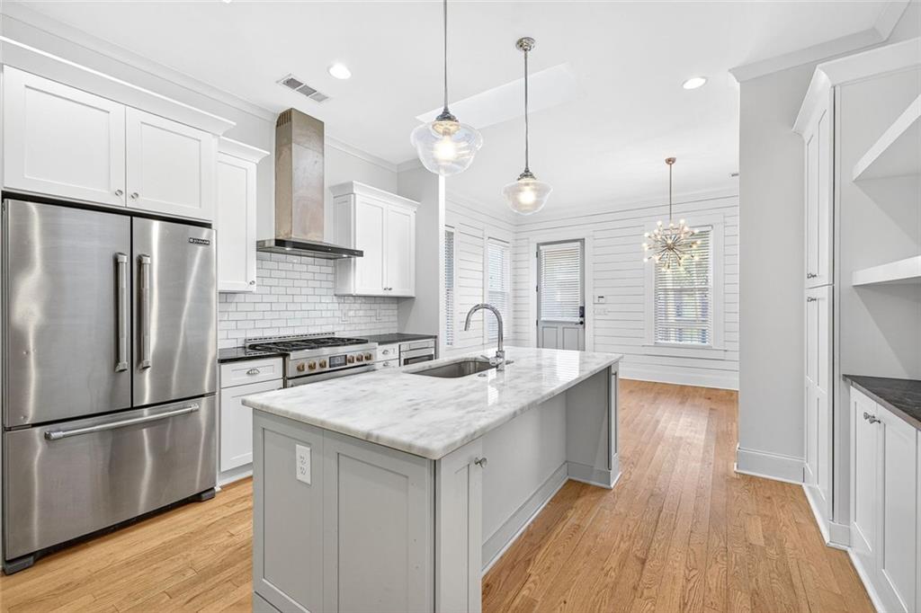 Step into this stunning newer home in the heart of Old Fourth Ward, where modern design meets everyday comfort. Soaring 10’ ceilings and wide-plank oak floors set the tone, while perfectly placed skylights fill the open floor plan with natural light.The chef’s kitchen is a true showpiece, marble countertops, stainless steel appliances, offering seamless views into the dining area, living room, and out to the private patio. The fully fenced TURF backyard is ideal for grilling, entertaining, or unwinding outdoors. Retreat to the spacious primary suite, featuring a spa-inspired bath wrapped in polished glass tile, marble flooring, and a walk-in shower that feels like your own personal retreat. Two additional large, light-filled bedrooms provide incredible flexibility. perfect for families, roommates, or a dedicated work-from-home setup. Enjoy unbeatable access. bike or stroll to Krog Street Market, the BeltLine, and some of Atlanta’s best dining, shopping, and nightlife all just minutes from your front door.