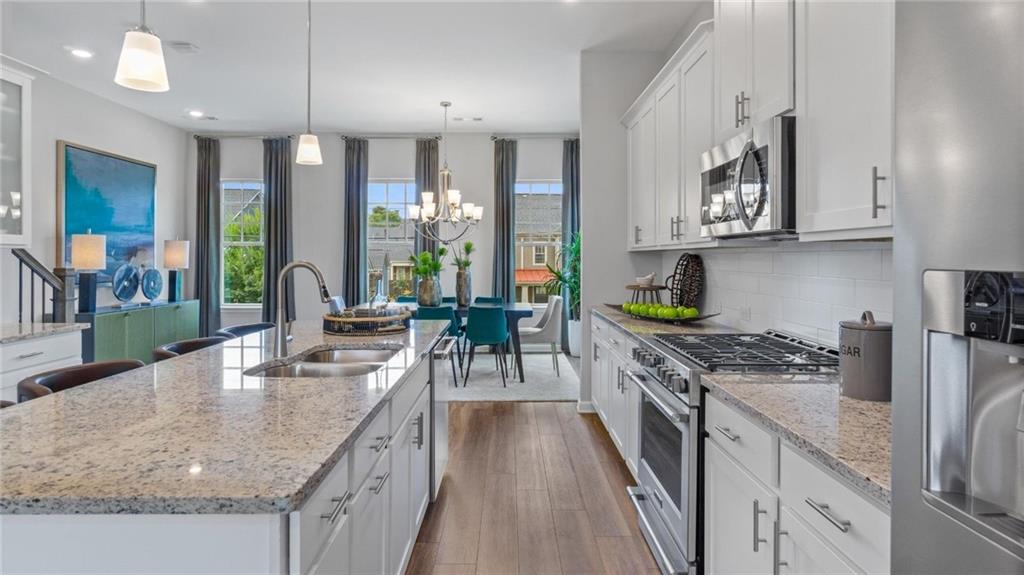 Hurry! Recently build luxurious, modern townhome in the heart of Historic Norcross. New appliances. Great location. Close to shops and restaurants, walkable to Lillian Park, minutes to I85. Open floor plan with kitchen, living and patio view with modern finishes. Elegant 3 bedrooms 3.5 baths, Featuring King sized two masters, Spacious bed rooms and attached full bath on all bedrooms. Beautiful white cabinets, wood stairs, stainless steel appliances, granite counter tops with nice backsplash, Granite Island with nice patio view, Tile in all baths. 2 car rear entry garage. *note: some of the pictures are model only