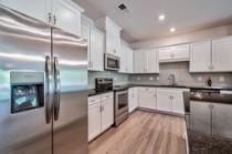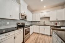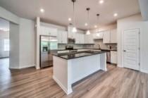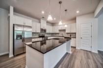 A contemporary townhome with a spacious kitchen-dining-living combination. Greet guests from the gracious foyer that leads guests inside to the open kitchen, featuring an oversized island with granite counters. The kitchen overlooks the fireside family room. Back patio is ideal for enjoying outdoor leisure time. The home features upgraded cabinets and Vinyl Plank flooring on the main level. Upstairs features large owners suite and two secondary bedrooms, a shared full bath plus a convenient laundry room complete this level. Nine foot ceilings on both levels! HOA includes lawn maintenance giving you even more time to enjoy. NO PETS