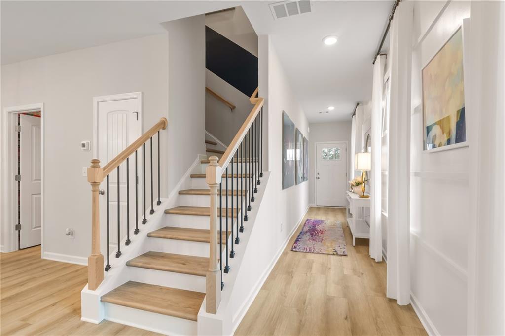 READY RIGHT NOW! townhome featuring an exquisite brick exterior. Our spacious AUSTIN floor plan on a slab features 3 bedrooms and 2.5 bathrooms and an open layout on the main level. The stunning kitchen features an expansive island with white quartz and beautiful white cabinets with spacious pantry. Upstairs you will find welcoming loft leading to the owner's suite with a large walk-in closet, shower, and a separate soaking tub. Please note the photos are of a decorated model or a spec home. Please note: If the buyer is represented by a broker/agent, DRB REQUIRES the buyer’s broker/agent to be present during the initial meeting with DRB’s sales personnel to ensure proper representation. If buyer’s broker/agent is not present at initial meeting DRB Group Georgia reserves the right to reduce or remove broker/agent compensation.