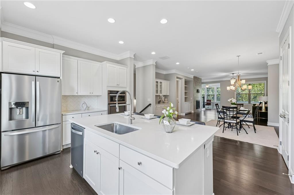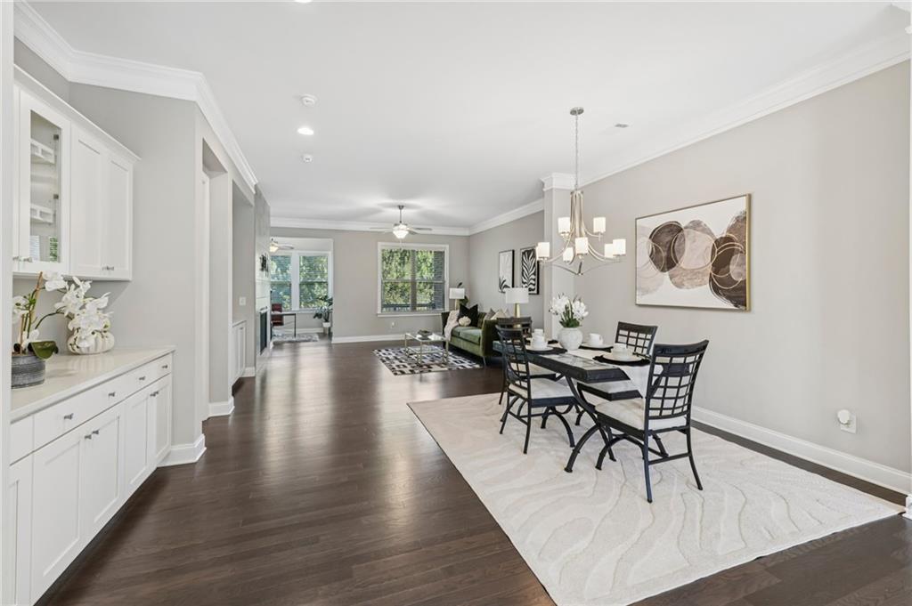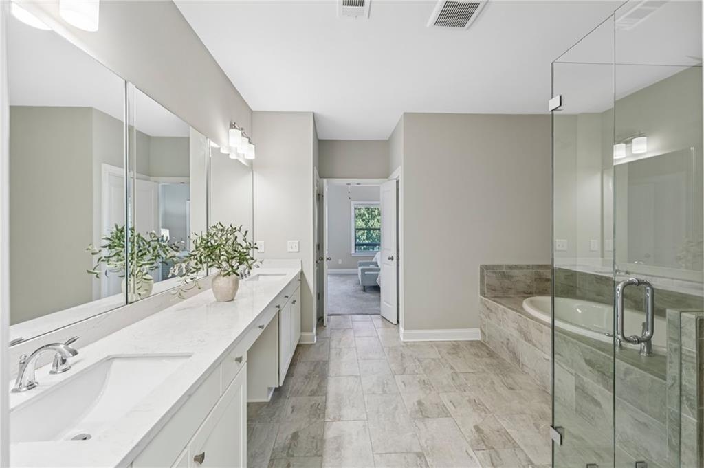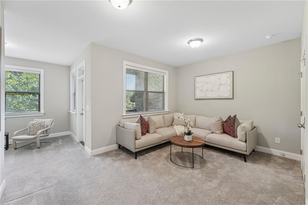 Experience luxury living in this stunning multi-level, full-brick townhome with a basement located in the highly desirable Park at Paces Ferry. Offering a prime location, this home puts you just minutes from Cumberland Mall, Truist Park, The Battery, Vinings at Jubilee, and a wealth of shopping, dining, and year around entertainment options. Everything you need right at your fingertips. The open-concept main level is designed for both comfort and style, featuring a built-in buffet and dry bar area, perfect for entertaining. A floor-to-ceiling tiled fireplace serves as a cozy and elegant focal point, while upscale fixtures and finishes elevate every detail. This level also includes a dedicated office or flex space, a spacious dining area, and a chef’s kitchen complete with an island breakfast bar, stainless steel appliances, pantry, and a herringbone subway tile backsplash. From the main living area, step out to the covered balcony for relaxing evenings or morning coffee. Upstairs, the luxurious primary suite boasts a sitting area, private balcony access, and a spa-like en-suite with a double vanity, soaking tub, walk-in shower, and a large closet. An additional en-suite bedroom and a conveniently located laundry room stubbed for a sink, complete the upper level. The lower level offers private access from the garage and includes a bedroom with a sitting area, covered balcony, and a full bathroom, perfect for multi-generational living, guests, or roommates. The unfinished basement on the ground level provides endless possibilities to create your dream space, whether it’s a media room, game room, home gym, or entertainment hub while adding instant equity as plumbing and HVAC are already ran for easy finishing. The back patio opens to a fenced backyard, ideal for pets or enjoying a bit of outdoor privacy. Yard maintenance included for a maintenance free lifestyle! With its flexible layout, roommate-friendly design, and incredible location, this townhome delivers modern living with convenience and versatility, making it a perfect place to call home or a smart investment opportunity.
