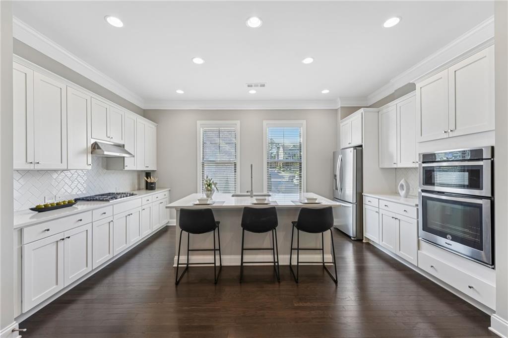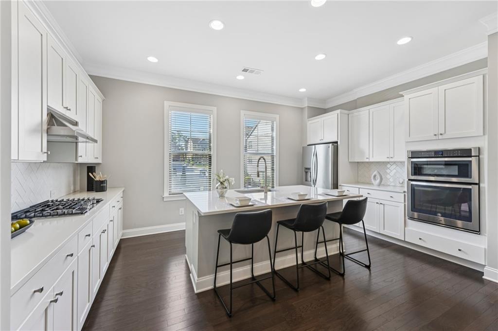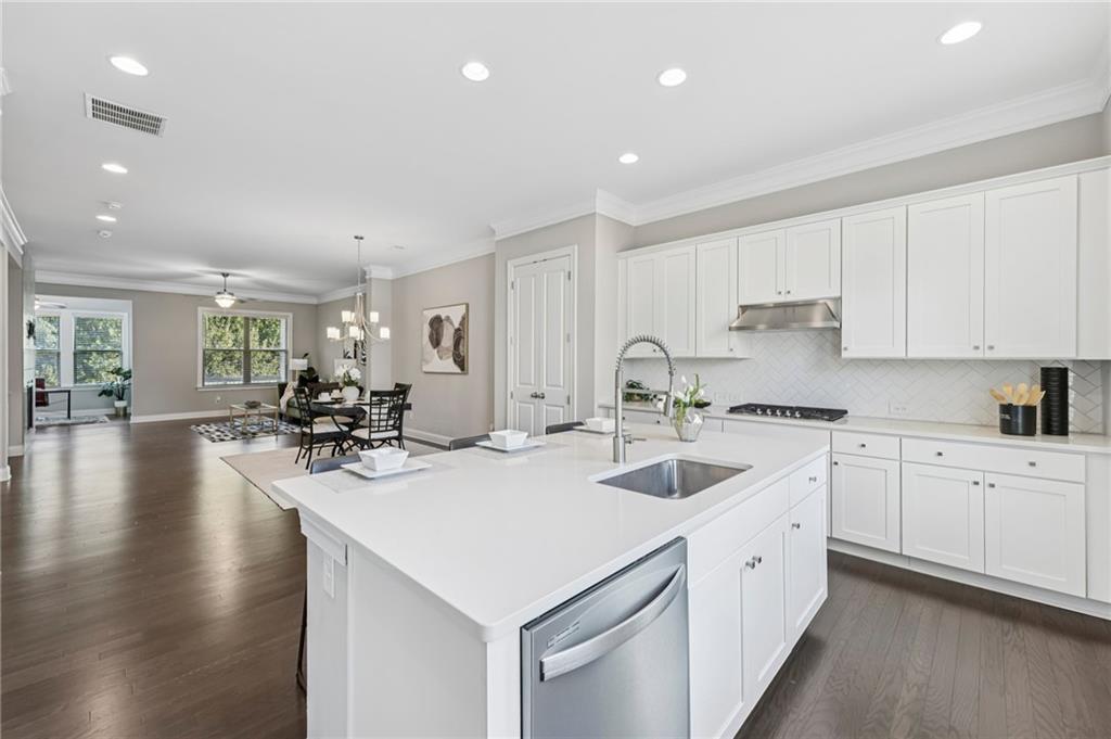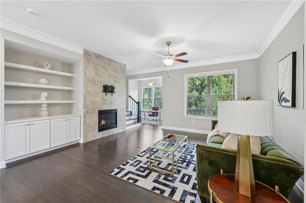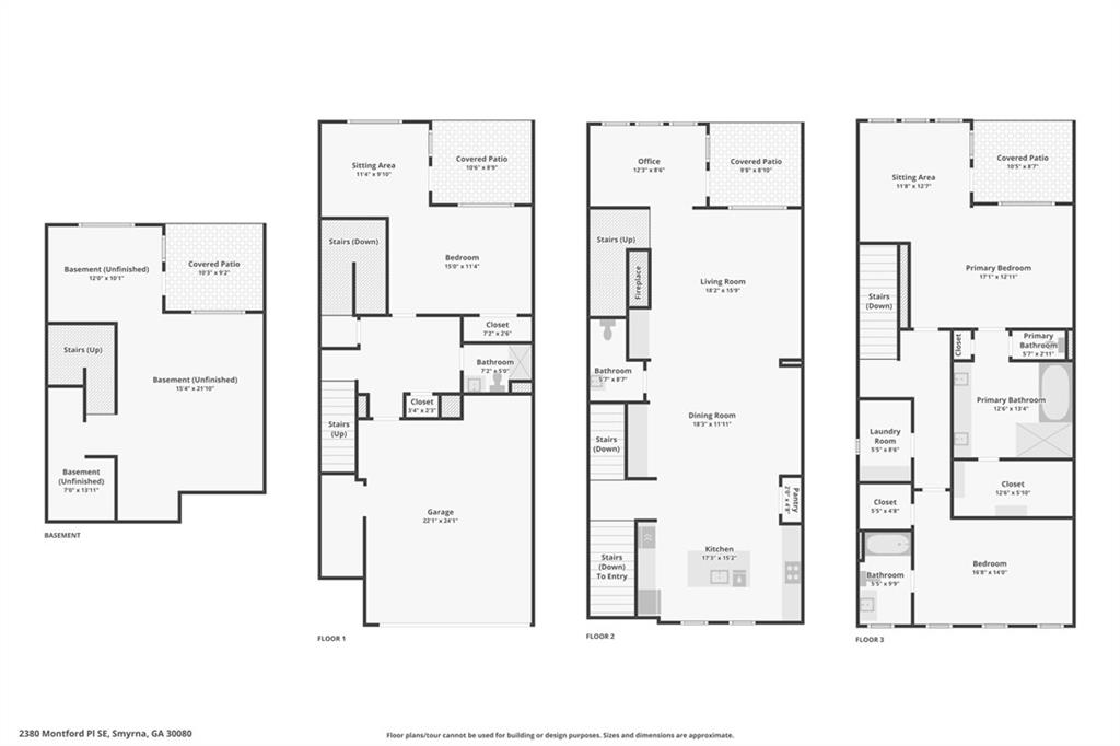 Experience luxury living in this stunning multi-level, full-brick townhome with a basement located in the highly desirable Park at Paces Ferry. Offering a prime location, this home puts you just minutes from Cumberland Mall, Truist Park, The Battery, Vinings at Jubilee, and a wealth of shopping, dining, and year around entertainment options. Everything you need right at your fingertips. The open-concept main level is designed for both comfort and style, featuring a built-in buffet and dry bar area, perfect for entertaining. A floor-to-ceiling tiled fireplace serves as a cozy and elegant focal point, while upscale fixtures and finishes elevate every detail. This level also includes a dedicated office or flex space, a spacious dining area, and a chef’s kitchen complete with an island breakfast bar, stainless steel appliances, pantry, and a herringbone subway tile backsplash. From the main living area, step out to the covered balcony for relaxing evenings or morning coffee. Upstairs, the luxurious primary suite boasts a sitting area, private balcony access, and a spa-like en-suite with a double vanity, soaking tub, walk-in shower, and a large closet. An additional en-suite bedroom and a conveniently located laundry room stubbed for a sink, complete the upper level. The lower level offers private access from the garage and includes a bedroom with a sitting area, covered balcony, and a full bathroom, perfect for multi-generational living, guests, or roommates. The unfinished basement on the ground level provides endless possibilities to create your dream space, whether it’s a media room, game room, home gym, or entertainment hub while adding instant equity as plumbing and HVAC are already ran for easy finishing. The back patio opens to a fenced backyard, ideal for pets or enjoying a bit of outdoor privacy. Yard maintenance included for a maintenance free lifestyle! With its flexible layout, roommate-friendly design, and incredible location, this townhome delivers modern living with convenience and versatility, making it a perfect place to call home or a smart investment opportunity.