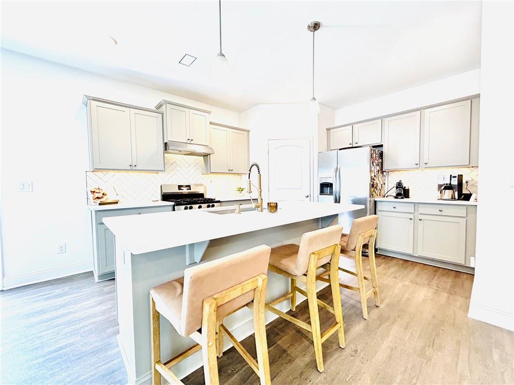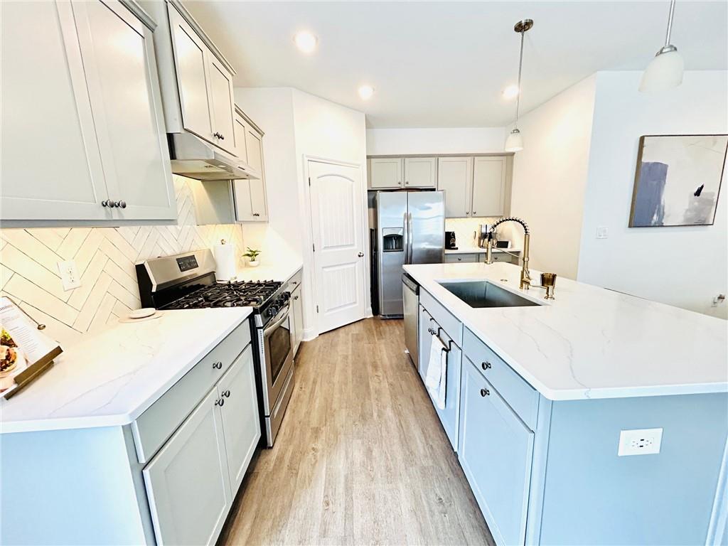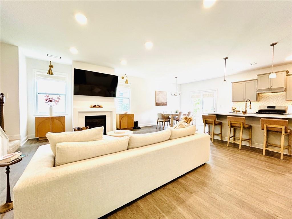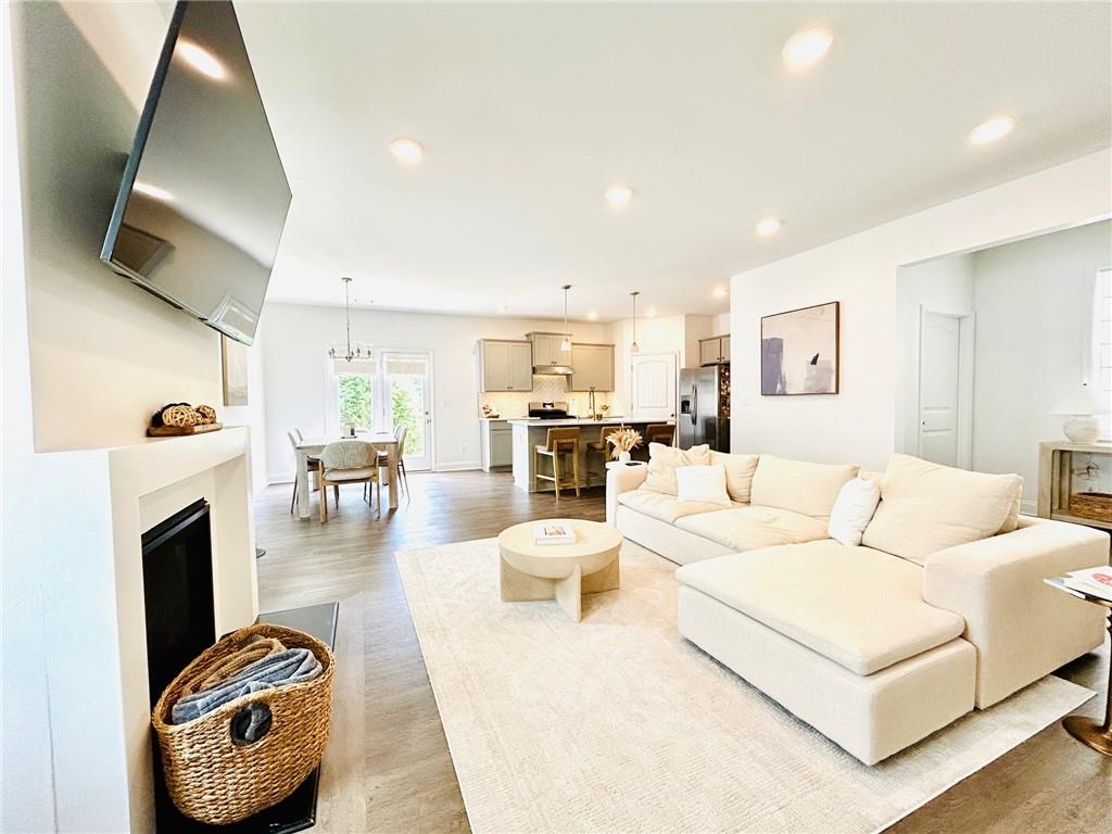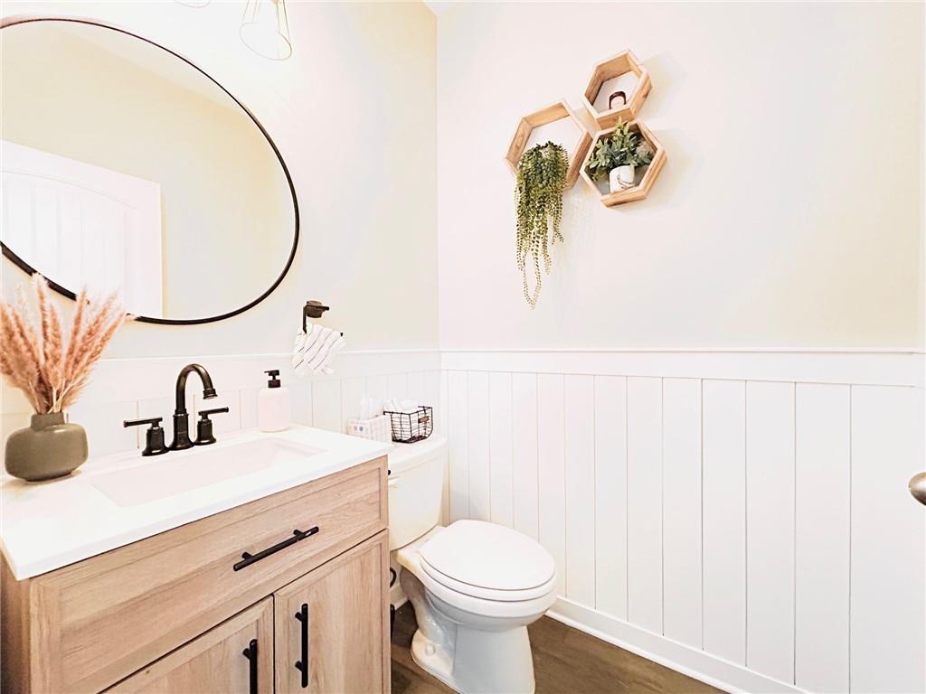 Georgeous UPDATED Property, Located in an unincorporated part of Cherokee County and close to both I-75 and I-575, this Acworth home conveniently sits between Downtown Acworth and Woodstock, and is convenient to shopping and award-winning schools. Upon entering this adorable home, you'll notice the home's pristine, move-in ready condition and wonderful daylight spilling in through the windows. This floor plan allows for easy entertaining with a nice flow and open concept on the main level. The updated kitchen boasts light gray cabinets, quartz counters, a lovely kitchen island, and pantry. After a long day's work, curl up next to your modern fireplace or retreat upstairs to soak in your spa-like tub. The primary bedroom and bath boast tray ceilings with dual vanities and a separate tub and shower. The three secondary bedrooms are spacious and neat. Enjoy the nice patio with a storage closet and the privacy of not having neighbors in the back yard. The HOA maintains the lawn, so you'll have more free time for fun! This home has been smoke free