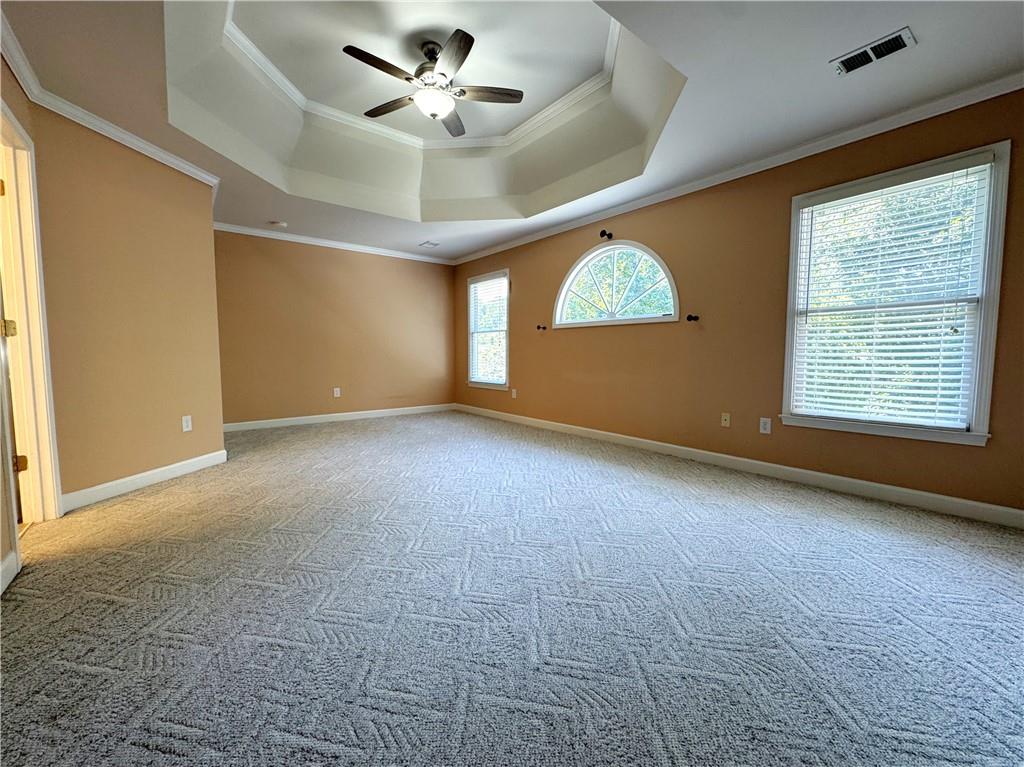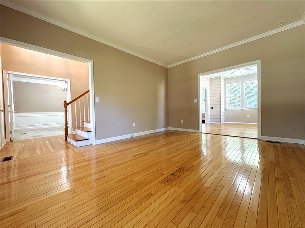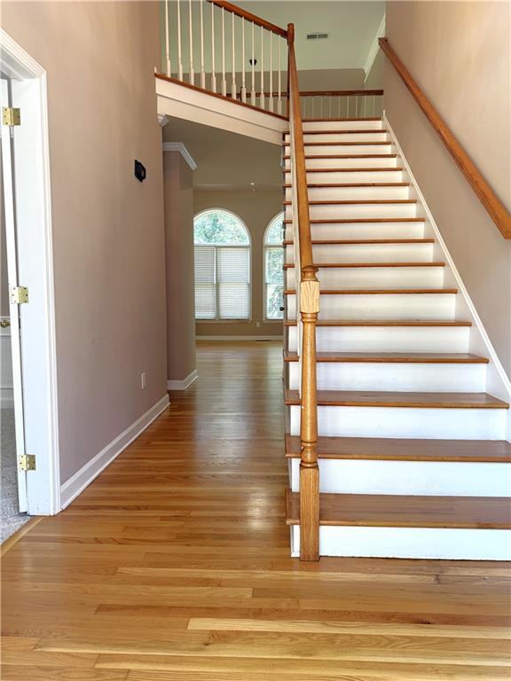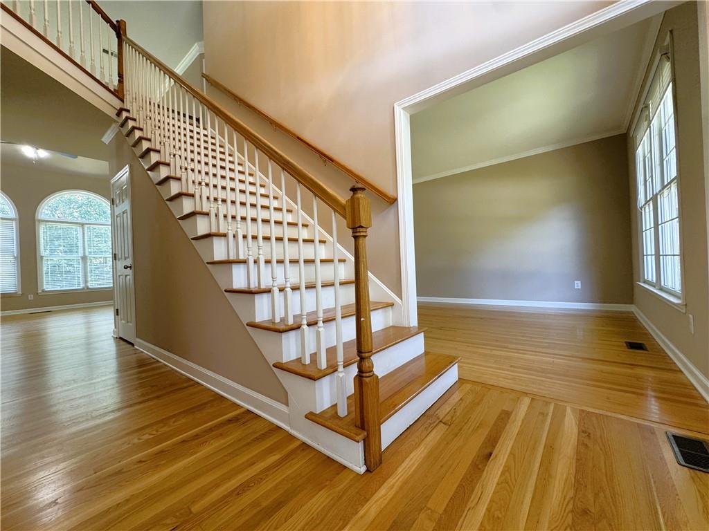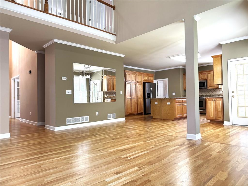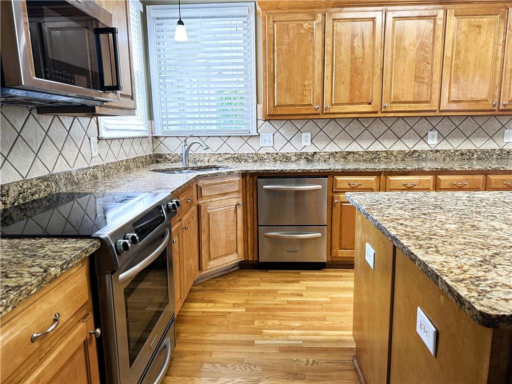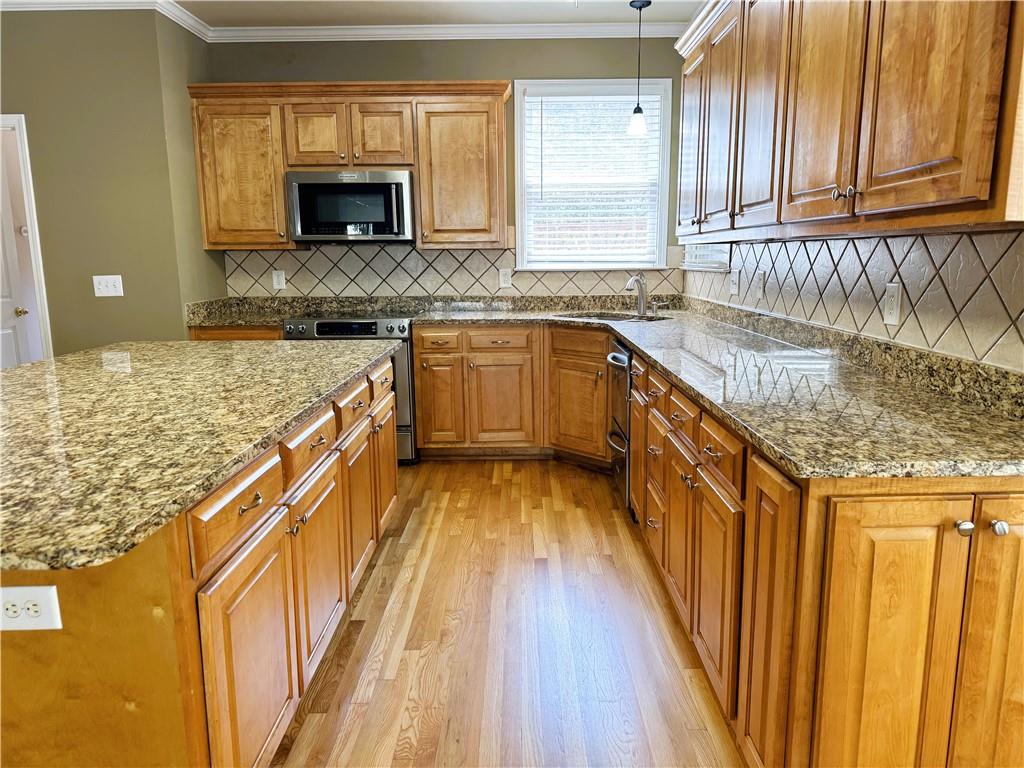 This stunning home offers incredible flexibility and thoughtful design, featuring 5–6 bedrooms, 3.5 bathrooms, a sunroom, office, media room, and an amazing kitchen with exceptional storage. Beautiful hardwood floors flow throughout the main level. Main Level: Enter into a grand 2-story foyer with hardwood floors and a Palladian window. Dining Room to the left with French doors on two walls, chandelier, wainscoting, and chair rail. Office/Study #1 to the right, filled with natural light. Kitchen highlights include stainless steel appliances, stained cabinets, granite countertops, a huge island with breakfast bar, eat-in area, 2-drawer dishwasher, and slide-out drawers in all lower cabinets and full-length pantry for unmatched storage. The kitchen opens to a glass-enclosed sunroom with tall ceilings, ideal for working from home or entertaining. Sunroom connects to a privacy-screened deck with access to both the backyard and driveway. Laundry Room with sink and storage, adjacent to the 2-car side-entry garage. Great Room/Family Room with cathedral ceiling, brick fireplace with gas logs, and wall of Palladian windows. Additional flexible space off the great room—perfect for Office #2, Sunroom #2, Playroom, or Homework room. Upper Level: Primary Suite with double-tray ceiling, Palladian window, sitting area, and luxurious bath with dual vanities, soaking tub, walk-in shower, ceiling fan, large walk-in closet, and linen closet. Bedrooms #2–#4 feature vaulted ceilings and Palladian windows, sharing a full hall bath with double vanities. Finished Basement: Includes Bedroom #5, a bonus room (potential 6th bedroom), living room, full bath, large workroom/storage room, and three additional utility/storage closets. Walks out to a patio with access to a 2nd garage suitable for work or extra storage. Exterior & Community: Expansive backyard. Located in the Lansfaire/Lansmoore community with clubhouse, swimming pools, tennis courts, playground, and park area. Landlord pays HOA. Close to major shopping and dining. This home truly combines elegance, functionality, and lifestyle amenities for the perfect living experience.