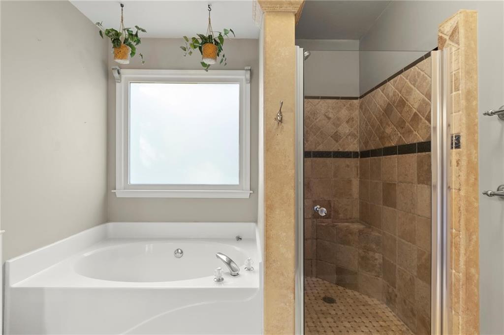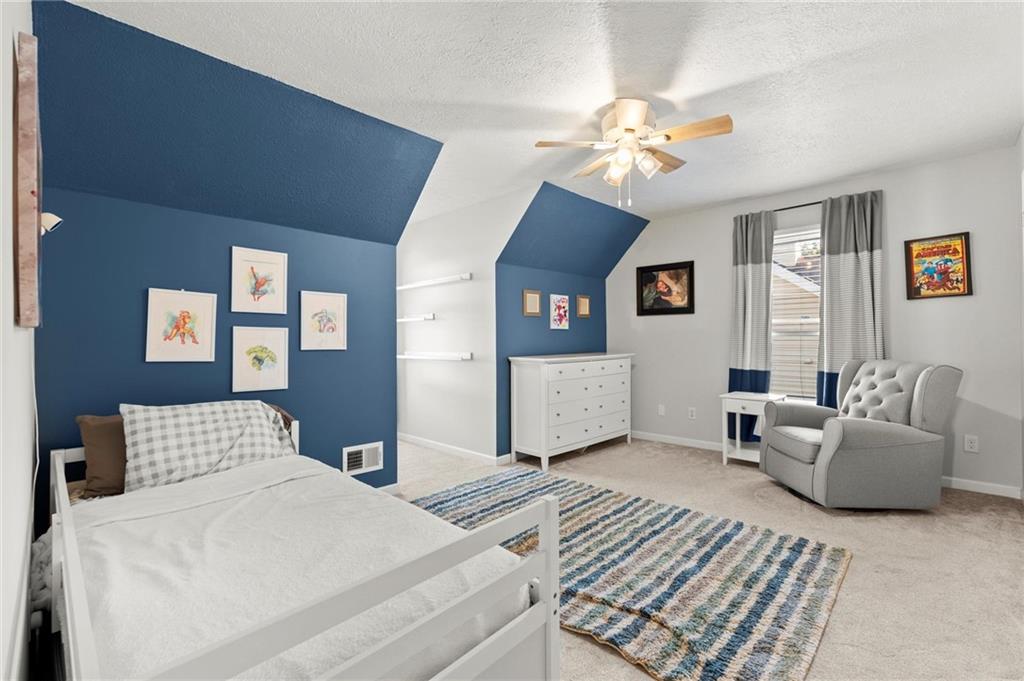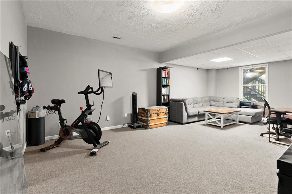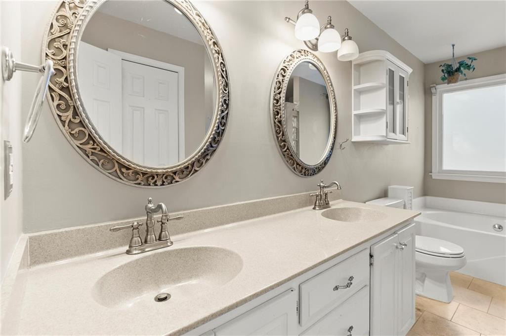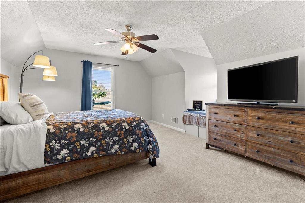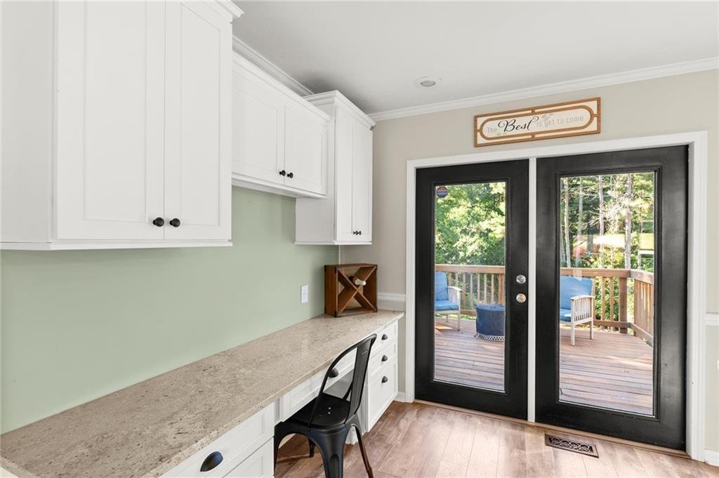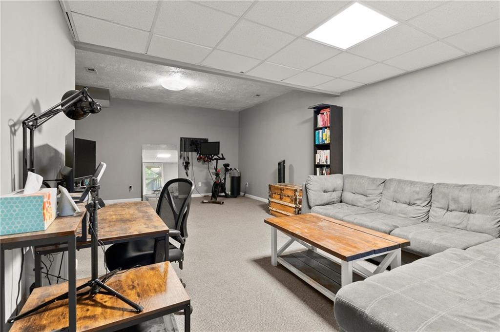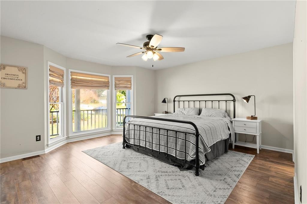 This home is an absolute DREAM! You're immediately greeted by a charming front porch, step inside to a gorgeous, light & bright, open floorplan--the living room is generously sized with a bay window and centered by a cozy fireplace and built in bookcases, and is open to a beautiful white kitchen with granite countertops, stainless steel appliances, and tons of storage, even a long peninsula perfect for hosting/entertaining. Adorable banquette takes advantage of breakfast nook area with extra seating and tons of windows, and built in desk area makes for smart storage space. Primary bedroom on main floor is generous in size with spacious en-suite bathroom including separate tub and shower, and walk in closet. An additional powder room on the main floor as well as laundry conveniently located. Upstairs, find 2 additional spacious bedrooms with dormer window nooks adding to the charm as well as a secondary bathroom. Basement level offers additional living area/office/playroom/exercise space--whatever is needed! And just wait til you see this fenced-in yard! Recently built deck is a great extension of the living area and kitchen and overlooks a sprawling, over half acre flat yard with a fireplace at the back to soak up the outdoors! All of this in the heart of Woodstock--super quick highway access, 5 minute drive to Target or Walmart, 10 minutes to downtown Woodstock, and tons of grocery stores right around the corner (including Aldi, Lidl, Kroger, Sprouts & more!) It's everywhere you want to be, don't miss your chance to call it home!