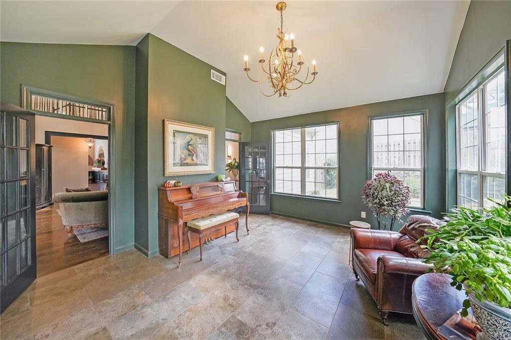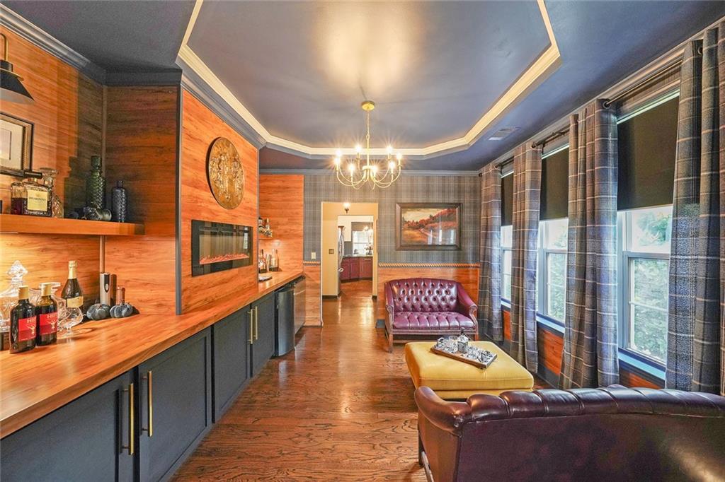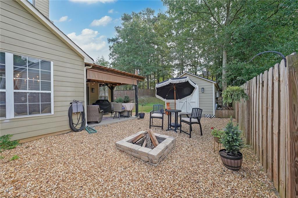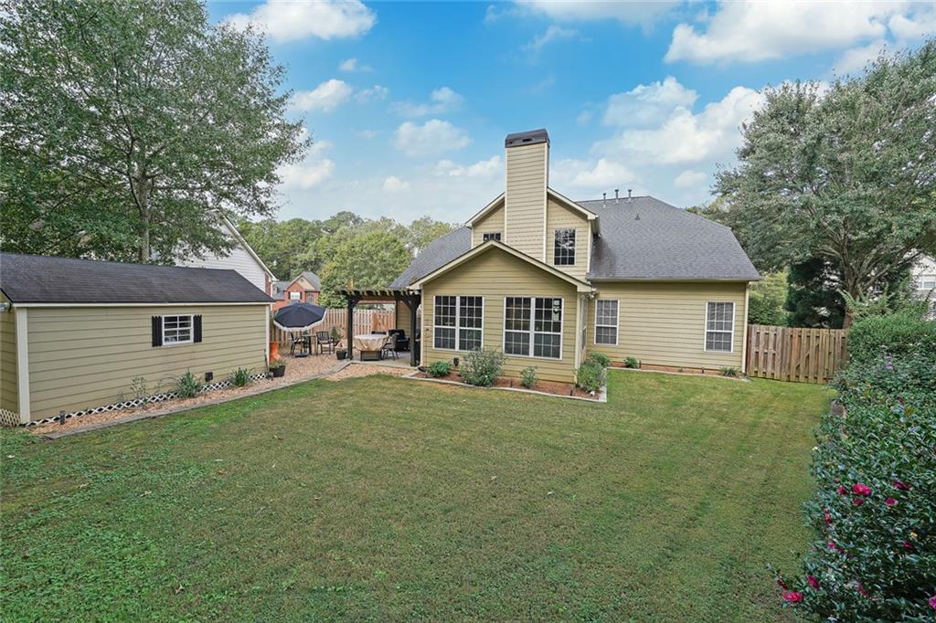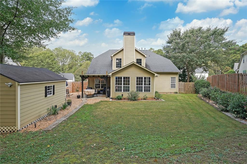 Welcome to this stunning 4-bedroom, 3-bath home in sought-after Daniel Park, where charm, upgrades, and location all come together. Step through the double-door entry into a soaring 2-story foyer that sets the tone for the home’s spacious and inviting layout. The main level boasts a light-filled family room with custom moldings and complemented by an airy sunroom perfect for relaxing with family and friends. A custom wine bar with cabinetry and a built-in fireplace elevates the dining room, while the adjoining den offers a serene retreat with its own fireplace and oversized window. The beautifully updated kitchen features stone counters, shelving, appliances, and a built-in coffee bar—making it both stylish and functional. The owner’s suite is also on the main level, complete with brand-new carpet, a private fireplace, and a spa-like en-suite bathroom featuring a soaking tub, tiled glass shower, dual sinks, and walk-in closet. Upstairs, additional bedrooms and baths provide flexibility for family, guests, or home office needs. Step outside to the large, fully fenced backyard with an extended patio, pergola, and matching storage building with a new roof—perfect for entertaining. This home is filled with thoughtful upgrades, including new hardwoods, lighting, wainscoting, fresh paint, faucets, cabinetry, insulation, whole-house air filtration, and more. With top schools, incredible community amenities, and proximity to restaurants, shopping, the Mall of Georgia, Top Golf, and more, this home has it all. Whether hosting gatherings or enjoying quiet evenings, this entertainer’s dream is move-in ready and waiting for you!