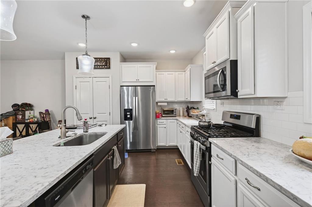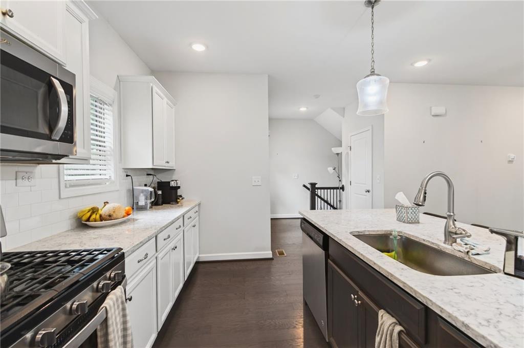 Walk to downtown Kennesaw from this stunning townhome! Just a one-minute walk to the new amphitheater and award-winning restaurants. This gorgeous 3 story townhome built in 2019 is in the sought after Fullers Chase Community! The main large area of the home features a gourmet kitchen with upgraded appliances including refrigerator, stunning counters, a huge island with tons of cabinet space and countertops; all open to the spacious dining and living area. Plenty of space for a table to seat up to 10, this area is simply perfect for entertaining. The gourmet kitchen and dining area are open to the great room with fireplace and custom built in bookshelves. The upper level features an oversize master suite with sitting room, spa-like bath with double vanity sinks and a walk-in shower, plus walk-in closet! This is one of the few units with a walk-out covered porch on the upper level! A 2nd bedroom is located on the upper level with a private bath. The lower level features a large 3rd bedroom with private bath that's perfect for teen, in-law suite or roommate. Covered outdoor patio on lower level to fenced backyard. Intimate community with just 28 townhomes and is just over a mile from Swift/Cantrell Park and walking distance to all downtown Kennesaw has to offer. 2-year lease preferred - no pets. Credit check & background check required.