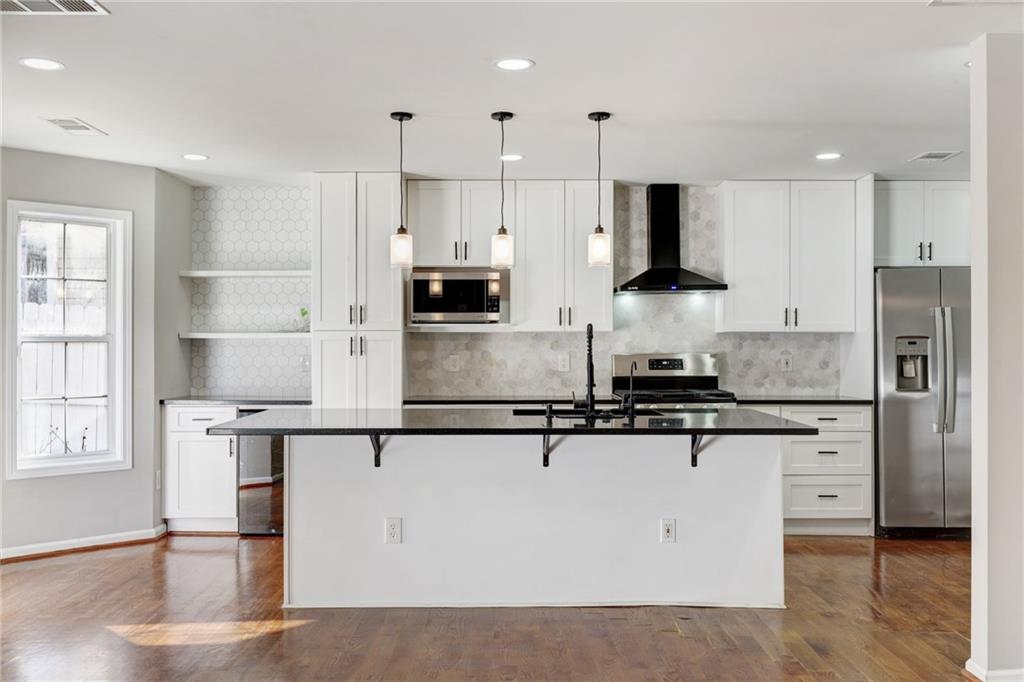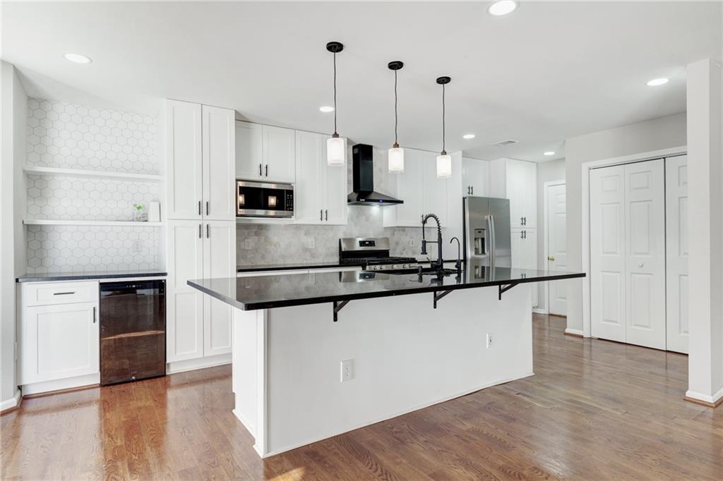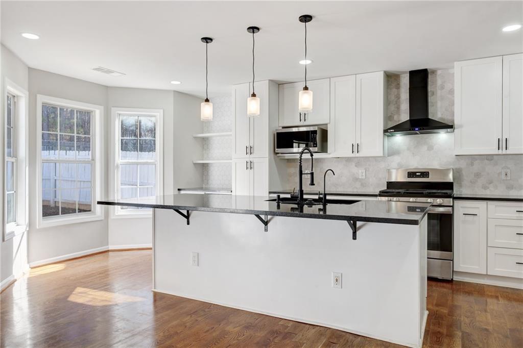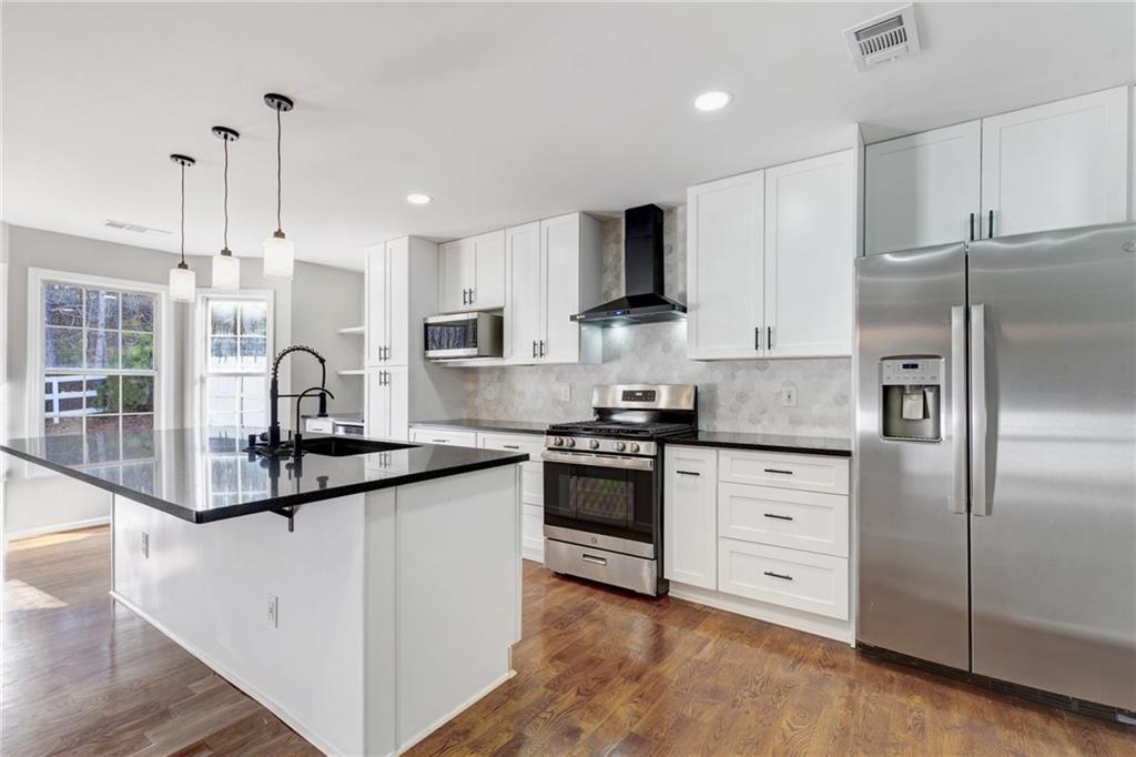 Just an absolutely adorable neighborhood walkable to N. Cobb HS, Swift Cantrell Park and the amazing shopping and dining in Downtown Kennesaw! This home has been completely opened up with an Amazing kitchen with quartz counters tops, HUGE island kitchen, stainless steel appliances and wine cooler. All bedrooms are upstairs and master has stand up shower with separate soaking tub and walk in closet. Home also boasts a completely fenced in level backyard. Just a cute modern home in a swim and tennis community!