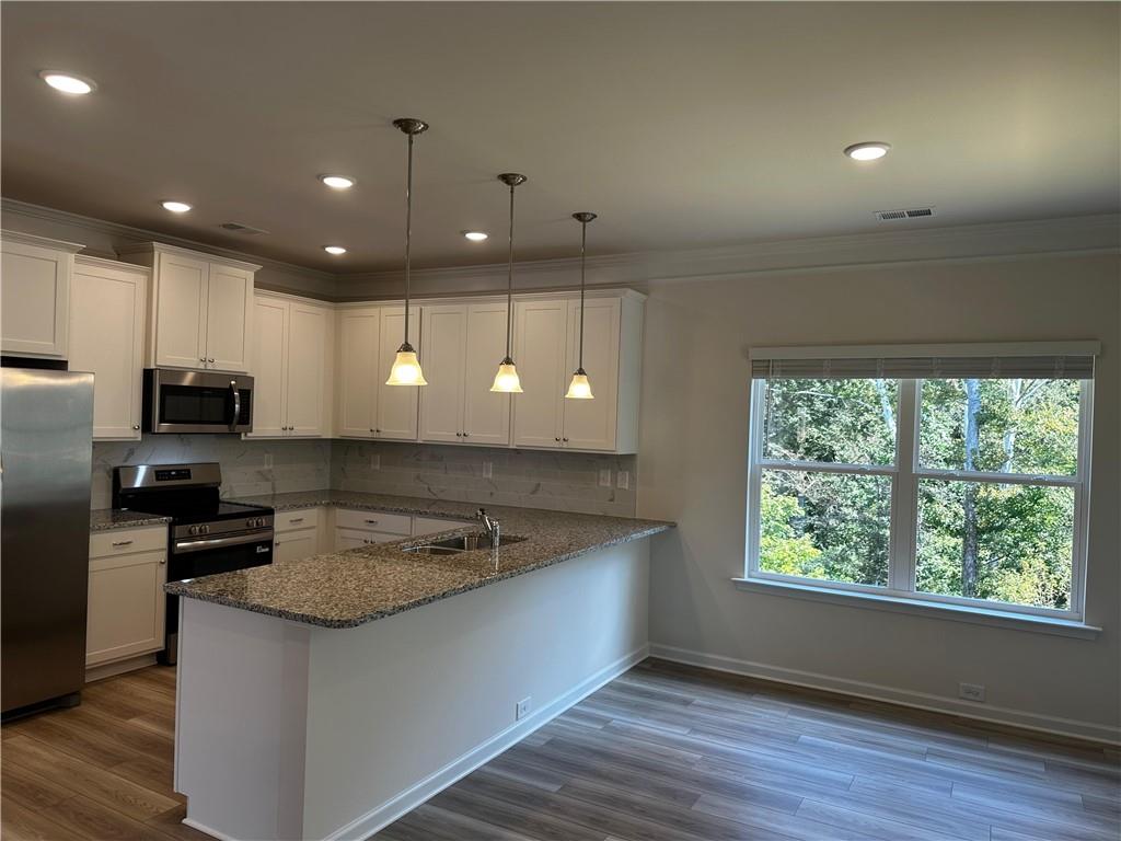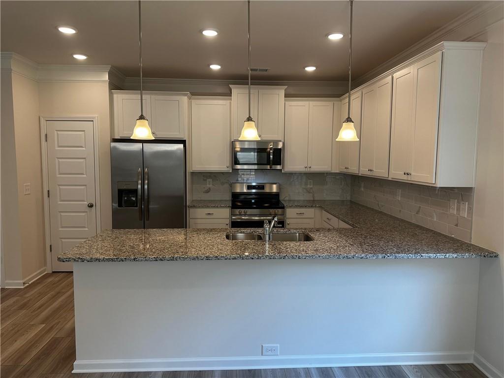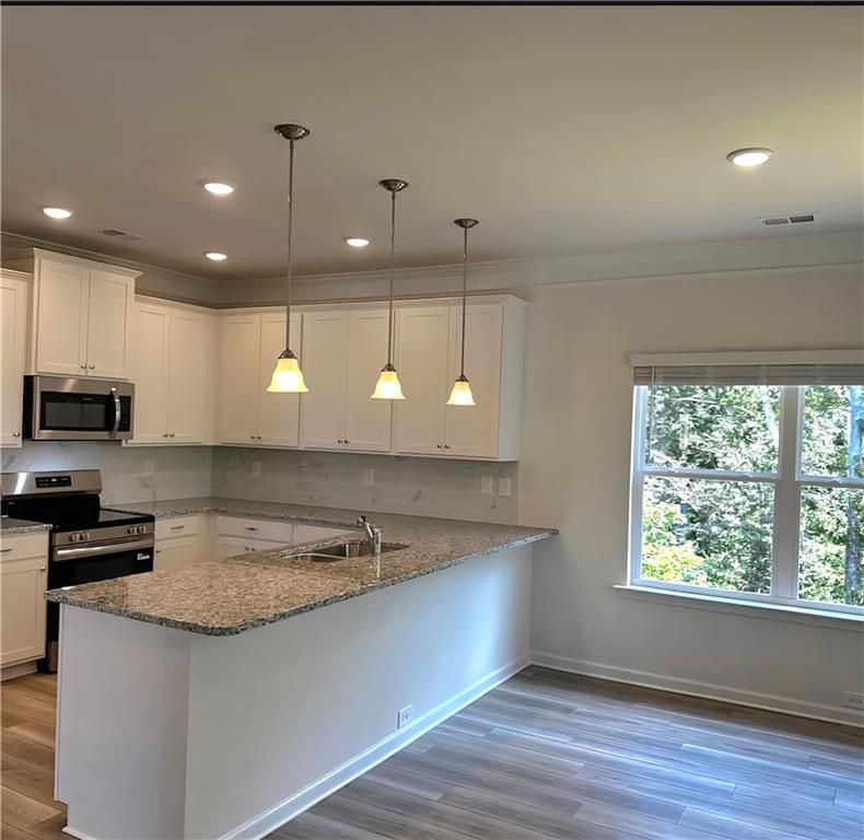 Be the first to make this newly built, 3 bedroom, 2.5 bathroom beautifully crafted home in the heart of Austell. This home has a modern style with spacious rooms. This home features a welcoming open-concept floor plan on the main level. The great room features a modern electric fireplace, bright lighting and opens to the kitchen which features an entertainers large island. Off the kitchen is a deck that overlooks a wooded / private lot. The spacious staircase will welcome you to a bonus loft area which can be used as an additional living space. The primary bedroom is also very spacious and features walk in closet space and a spa-inspired en-suite bathroom. This level also feature two additional bedrooms and a full bath. The laundry room is also in the upstairs hallway. This home also features an unfinished basement that can be used for storage and a covered patio perfect for relaxation and entertainment. There is also a spacious cleared unfenced wooded back yard perfect for privacy. This home also features a two-care garage and energy efficient appliances and plumbing. Additional visitor parking is located in front of the home. This part of Austell is growing and easy access to restaurants, shopping, parks, schools, highways and main roads. $250 off first month's rent lease Incentive if leased by October31st!!!