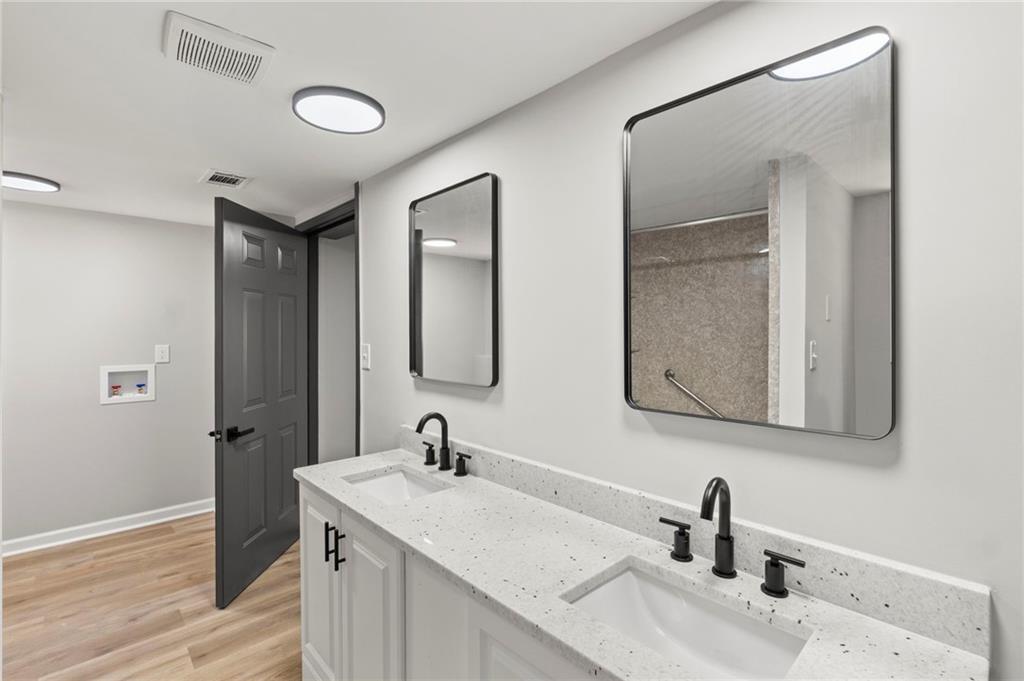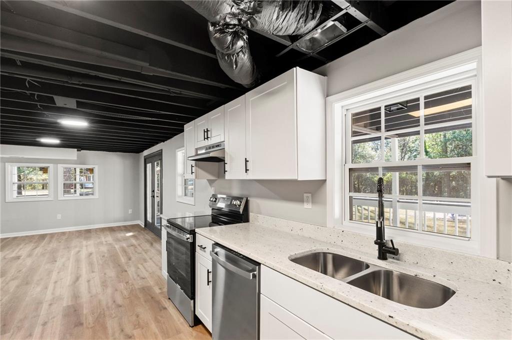 Stunningly renovated 6 bed/4 bath home with a finished basement providing a second kitchen perfect for an apartment or in law suite. Home features brand new Luxury Vinyl Plank flooring, new HVAC, new interior and exterior paint, new lighting and plumbing fixtures everywhere, new granite countertops in kitchen and bathrooms, and new stainless-steel appliances. Home offers beautiful curb appeal with covered front porch and 2nd entrance on the right side. Enter into the large living room with big windows allowing in lots of natural light that leads into the large dining room and picture window. Large kitchen off the living room offers brand new cabinets, granite countertops, and large butlers pantry with 2nd sink. Off the butlers pantry is the huge sunroom. Master on main offers an En-suite with double vanity, low flow toilet, and walk in shower. Full bathroom and laundry room also located on the main level. Upstairs provides two great sized secondary bedrooms and secondary bathroom with new granite, low flow toilet, and tub/shower combo. Basement offers a 2nd kitchen with new cabinets, new granite, stainless steel appliances, and eat-in dining area. Two great sized bedrooms and full bathroom offering walk in shower, low flow toilet, and double vanity. Outside offers plenty of ways to enjoy the vast outdoor space. Large double decks wrap around to the side of the home and overlook the huge backyard with a fire pit.