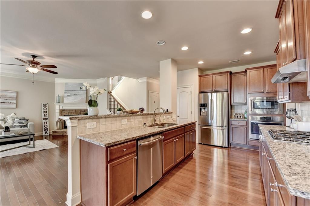 WALKING DISTANCE TO OLD TOWN BUFORD RESTAURANTS, BARS & COFFEE SHOPS!! NO HOA IN BUFORD CITY SCHOOL DISTRICT!!! FULLY FINISHED BASEMENT APARTMENT WITH DRIVEWAY ACCESS!! A beautiful home awaits you for a primary residence or a mixed investment opportunity. Put it on your showing list to see this better than new home that has been superbly maintained. Features are an inviting rocking-chair front porch, foyer entry, formal dining room, open concept family room and kitchen, lovely breakfast room, main level bedroom suite with full bath, mud room, spacious owner's suite, large entertainment loft upstairs with bath, spacious secondary bedrooms, private bathrooms for EVERY bedroom on the upper level, hardwood flooring, ceramic tile baths, a private upper balcony, multiple entertainer's decks on the rear, a full basement apartment, garden sprinkler system, Nest thermostats, Ring Doorbell & Security cameras, exterior flood lighting & more. The downstairs apartment is move-in ready for a tenant or additional full-time residents and features a full kitchen, family room, media room, bedroom, bath, laundry room, safety storm (tornado) room, radon system, and private rear deck! All stainless-steel appliances to remain in the upper and lower kitchens. Additional parking pad added for basement occupancy. There is so much useful space and opportunity at this property! PUT THIS ONE ON YOUR MUST-SEE LIST!