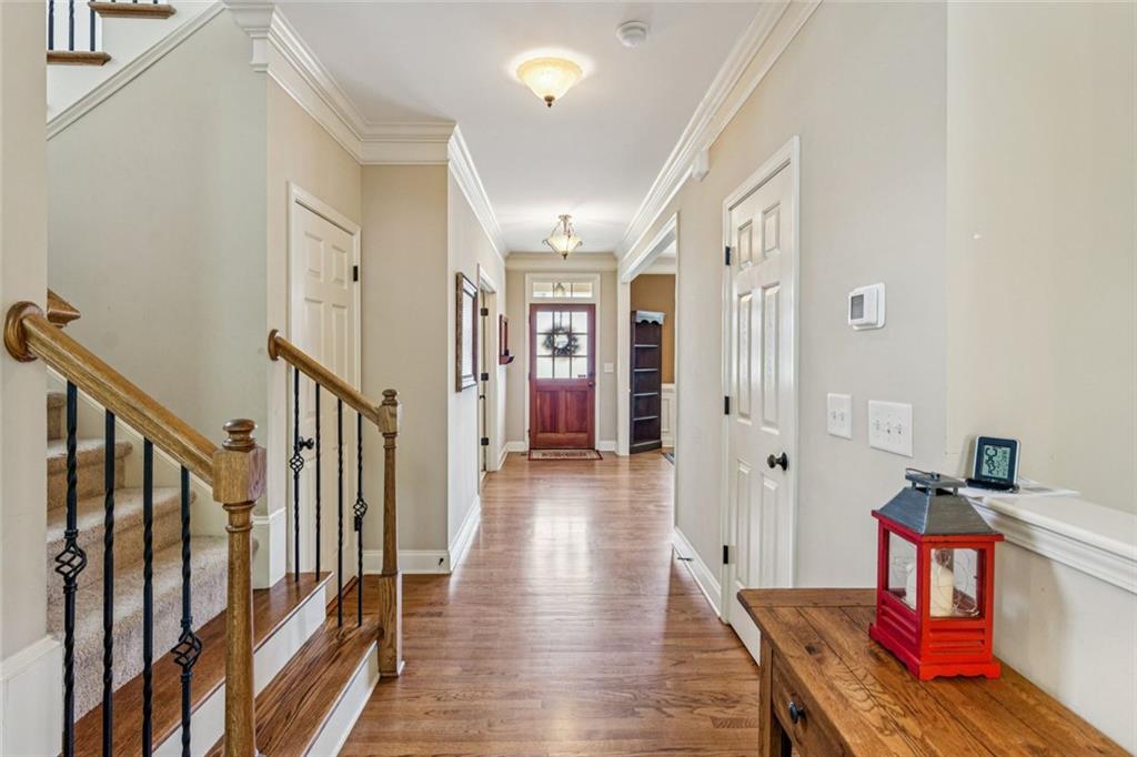 If you’ve been looking for a little more space & comfort while staying connected to everything Metro Atlanta has to offer, this home is worth the short drive north. This spacious 4-bed, 3-bath home features open, inviting living space in South Forsyth. A rocking-chair front porch sets the tone for relaxed living. Step inside to be greeted by a bright foyer framed by a home office with French doors on one side & a formal dining room with elegant crown molding on the other. The kitchen is the heart of the home with a large island, a breakfast nook & a butler’s pantry connecting to the dining room — perfect for gatherings or casual mornings. The two-story living room fills with natural light, creating an airy, comfortable space that feels instantly welcoming. Upstairs, the oversized primary suite offers a peaceful retreat with his-&-hers closets & a well-appointed bath. Three secondary bedrooms are also upstairs — one with a private en-suite, another with a vaulted ceiling, all with generous space & light. The full unfinished daylight basement gives you room to grow — ideal for a media room, gym, in-law suite or creative studio. A large deck overlooks the fenced backyard, ready for cookouts, gatherings, or quiet evenings. Practical features include a deep garage with a 5-panel door, great for larger trucks or SUVs. The HVAC is newer (2022) for peace of mind. Within the community, you’ll enjoy a clubhouse, Olympic-sized pool with zero-entry and mushroom fountain, plus tennis, pickleball, & basketball courts. Sidewalks & green space make it easy to get outside & connect. Located just minutes from GA-400, this home offers easy access back to Atlanta, while keeping you close to Northside Hospital, Cumming City Center, the Collection, Forsyth County schools, parks & the greenway. This home combines modern convenience, thoughtful design & amenities.