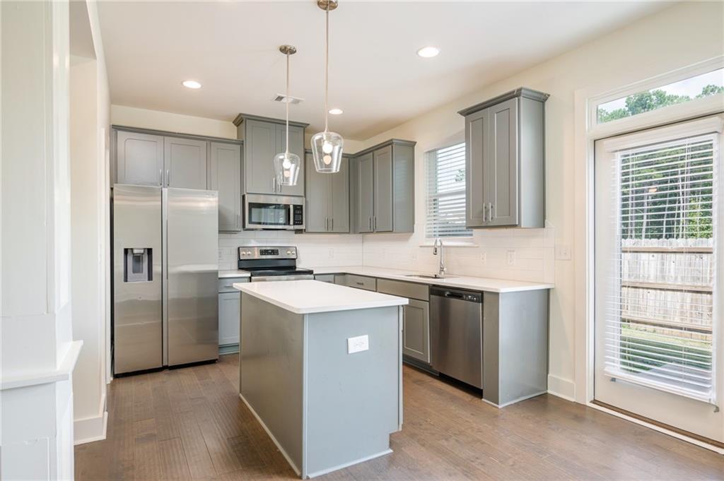 This like-new, upgraded townhouse in Towns of Auburn. The open floor plan features a cozy living room with a fireplace, ceiling fan, recessed lighting, and a dining area with a glass door leading to the patio and fenced yard. The gourmet kitchen boasts quartz countertops, a tiled backsplash, stainless steel appliances, white cabinetry, a breakfast bar and a spacious pantry. Hardwood floors flow throughout the main level and stairs, complemented by elegant faux wood blinds for privacy and style. The primary suite includes a sitting area, tray ceiling, wooded backyard views, a walk-in closet, and a spa-like bath with a soaking tub, separate shower, and double vanities. Secondary bedrooms are spacious with park views. Bathrooms and the laundry room feature tiled floors. Enjoy amenities like a pool, tennis & pickleball courts, and a playground. Low HOA fees cover exterior maintenance, pest control, and lawn care. Includes a two-car garage. Convenient to highways, shopping, and schools!