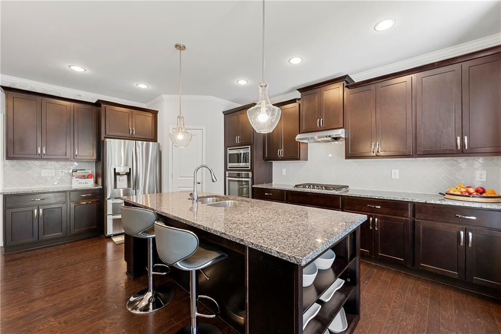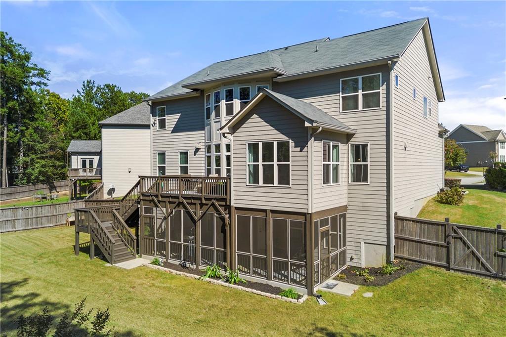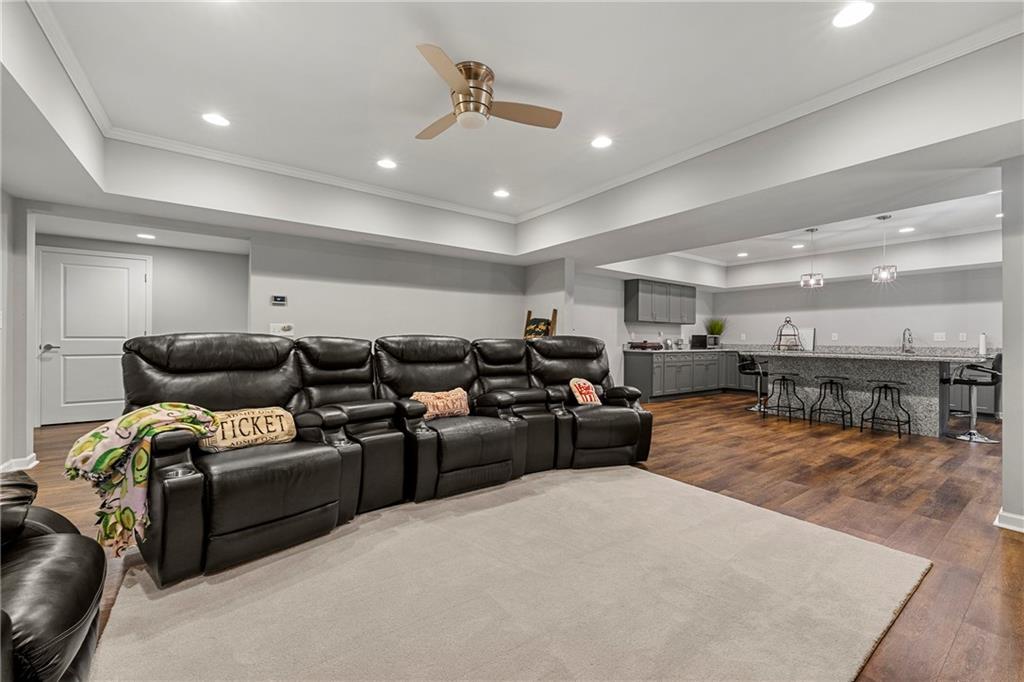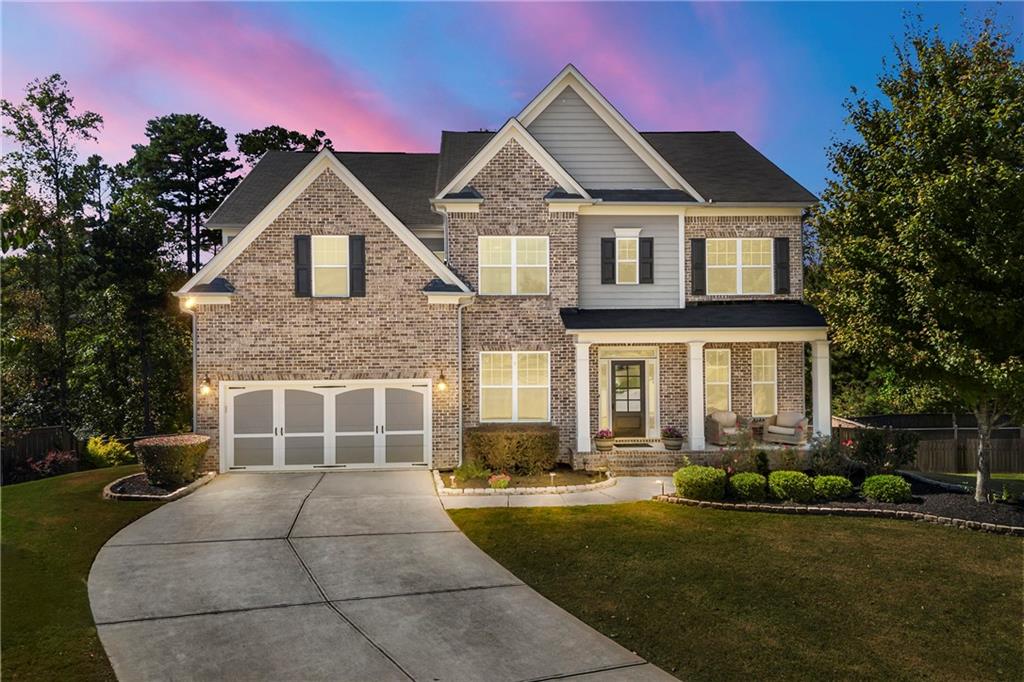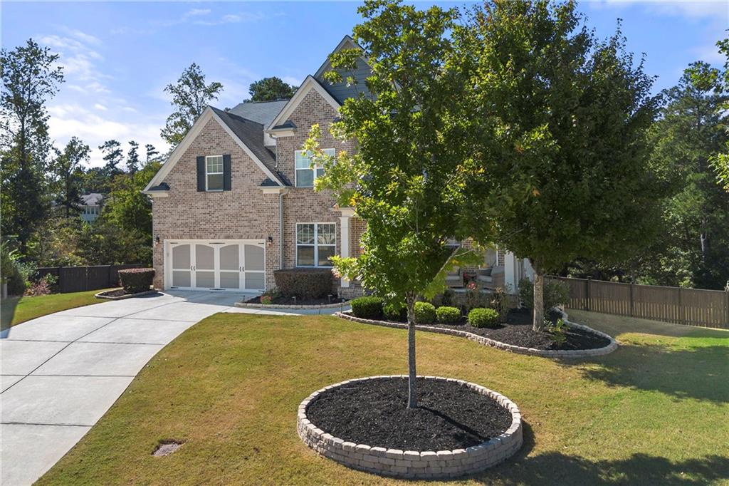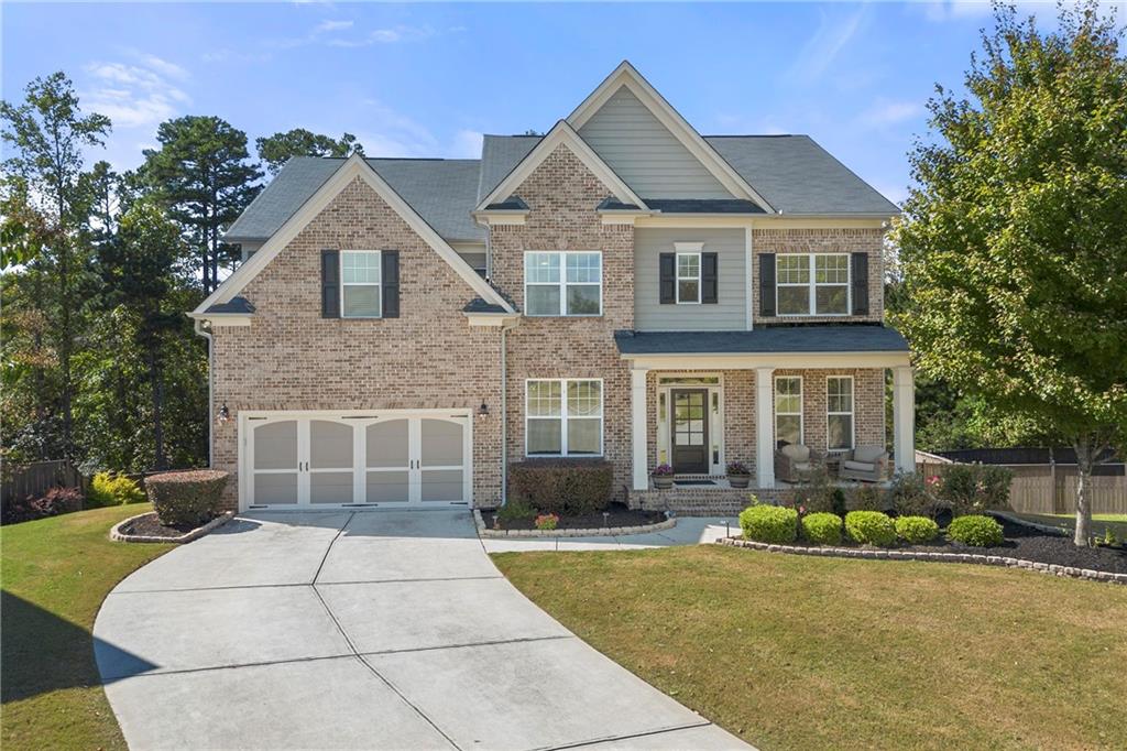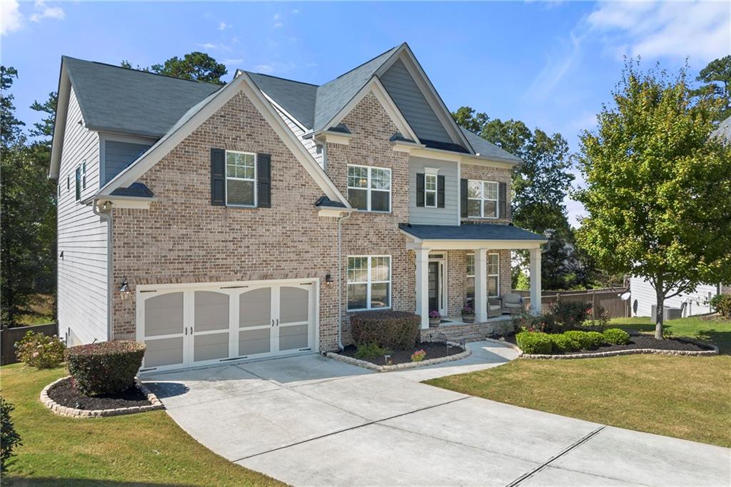EXTRAORDINARY TRIPLE-LEVEL BRICK PALACE… Boasting nearly $250,000 in custom upgrades, this stunning pet-free immaculate luxury home is in one of the highest-rated school districts of renown Gwinnett County. Minutes to the Mall of GA, this like-new home is nestled in heart of very quite cul-de-sac. Level driveway leads to large, front covered porch… Enter home with formal office, formal dining room, and extra-large Grand room with “bowed” palladium windows- allowing a bright interior home. This entertaining open concept floor plan has a unique “Keeping Room” off the kitchen, providing a secondary entertainment area- can also be a sun room- yes, this home features a one-of-a-kind custom floorpan that sets it apart from the others! Full guest suite on main. Heavy trim package… Gourmet chef’s kitchen with every luxury! Upper level features 4BRs/ 3 full BAs/ and an awesome 5th “step up” media room or 2nd office! Unique laundry room has private “pass thru” to elegant owner’s bedroom suite. Almost no carpet- first & second floors hardwood, engineered wood- with basement level quality LVP. Terrace level is built out NICE!!! Features: Full guest suite with nicely appointed bath; game room or billiard room; bar or 2nd kitchen; theatre/ media room; and double-sized storage centers. Exit basement to super-sized screened in patio- overlooking BIG BIG sodded soccer-sized and level fenced yard- perfect for pool or play or gardening- and with amazing privacy… Some add’l notable features: (2) hot water heaters of 100 gal total; basement refrigerator remains- as well as the theatre seating. Being custom built in 2017 this home is only 9 yrs young and meticulously cared. Even comes EV-prewired at the garage! Community is very new, built out- and also has a wonderful family sports center. This gem has the WHOLE PKG folks… A sure-to-please winner on your list!