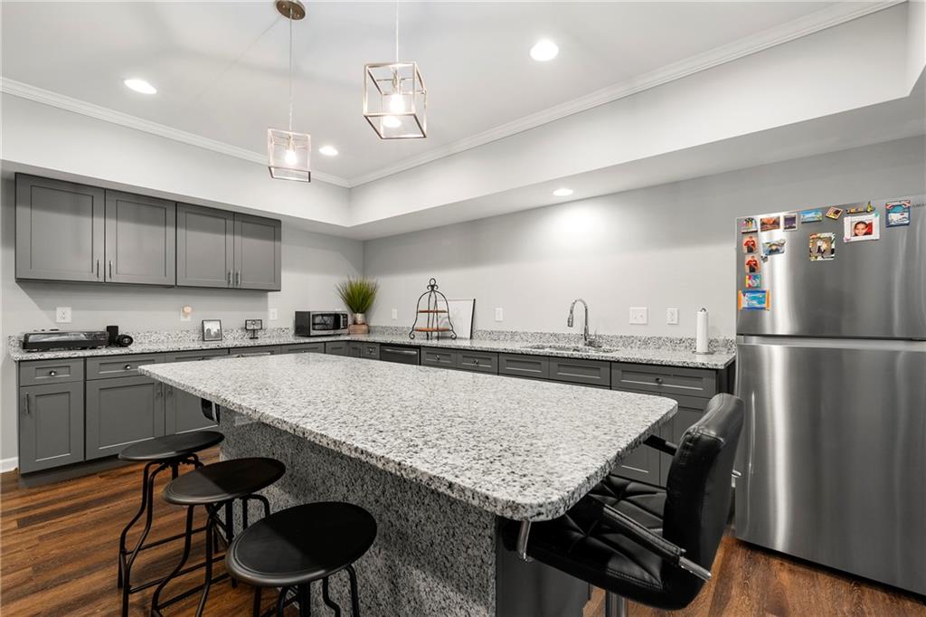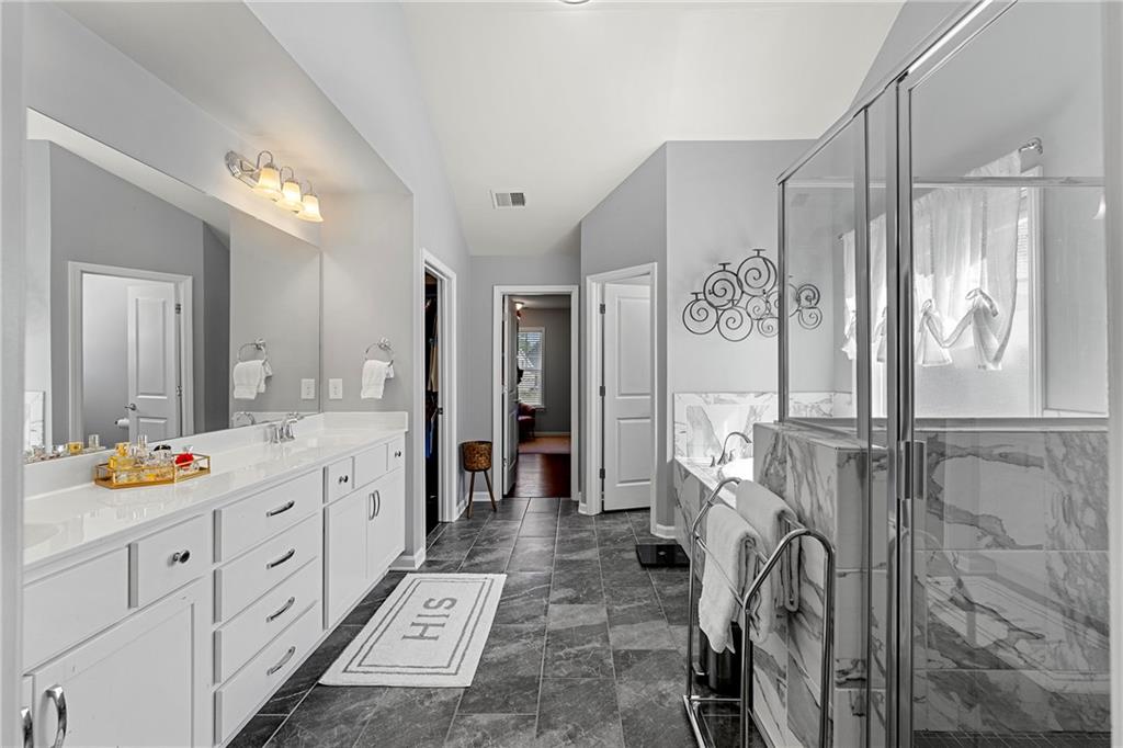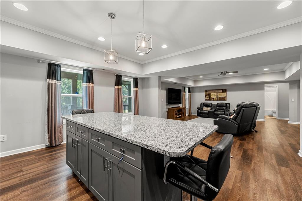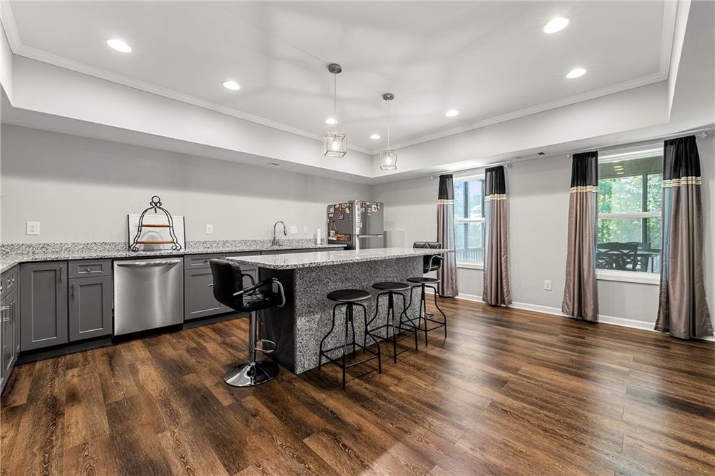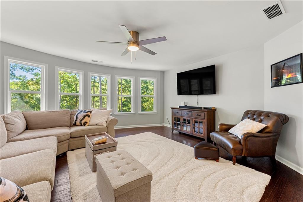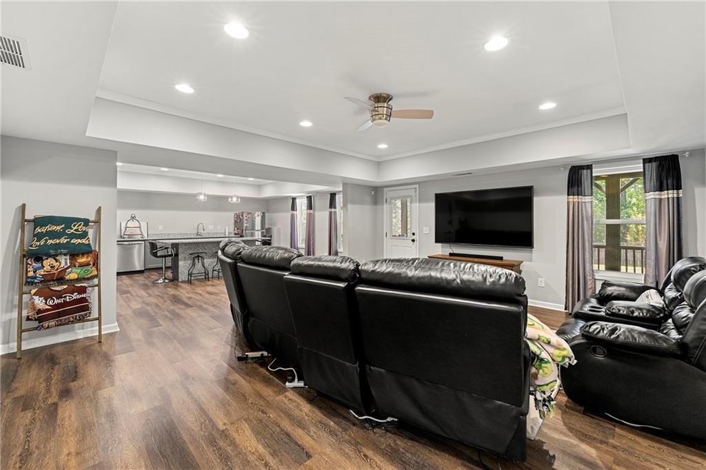 EXTRAORDINARY TRIPLE-LEVEL BRICK PALACE… Boasting nearly $250,000 in custom upgrades, this stunning pet-free immaculate luxury home is in one of the highest-rated school districts of renown Gwinnett County. Minutes to the Mall of GA, this like-new home is nestled in heart of very quite cul-de-sac. Level driveway leads to large, front covered porch… Enter home with formal office, formal dining room, and extra-large Grand room with “bowed” palladium windows- allowing a bright interior home. This entertaining open concept floor plan has a unique “Keeping Room” off the kitchen, providing a secondary entertainment area- can also be a sun room- yes, this home features a one-of-a-kind custom floorpan that sets it apart from the others! Full guest suite on main. Heavy trim package… Gourmet chef’s kitchen with every luxury! Upper level features 4BRs/ 3 full BAs/ and an awesome 5th “step up” media room or 2nd office! Unique laundry room has private “pass thru” to elegant owner’s bedroom suite. Almost no carpet- first & second floors hardwood, engineered wood- with basement level quality LVP. Terrace level is built out NICE!!! Features: Full guest suite with nicely appointed bath; game room or billiard room; bar or 2nd kitchen; theatre/ media room; and double-sized storage centers. Exit basement to super-sized screened in patio- overlooking BIG BIG sodded soccer-sized and level fenced yard- perfect for pool or play or gardening- and with amazing privacy… Some add’l notable features: (2) hot water heaters of 100 gal total; basement refrigerator remains- as well as the theatre seating. Being custom built in 2017 this home is only 9 yrs young and meticulously cared. Even comes EV-prewired at the garage! Community is very new, built out- and also has a wonderful family sports center. This gem has the WHOLE PKG folks… A sure-to-please winner on your list!