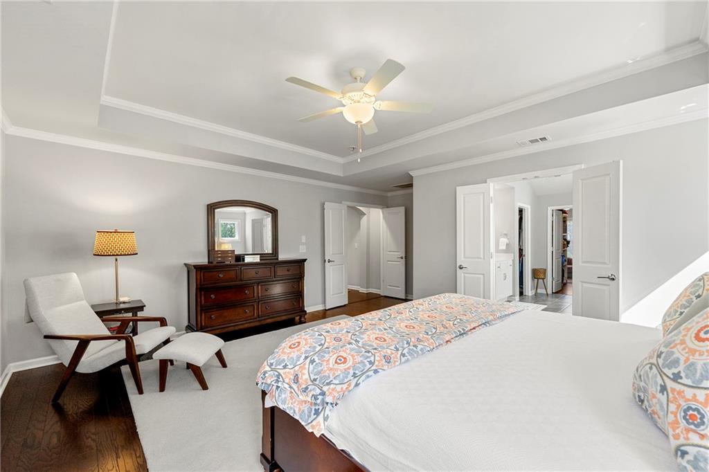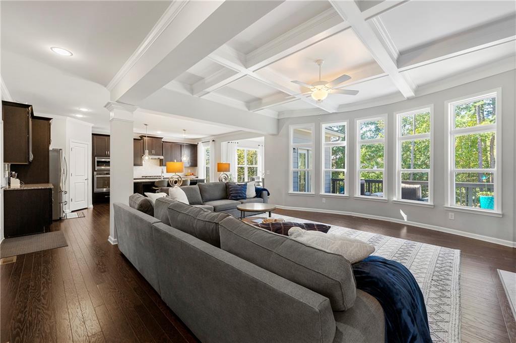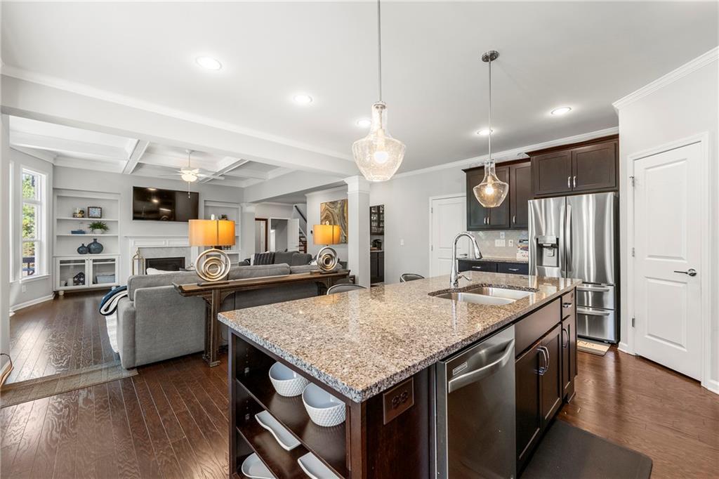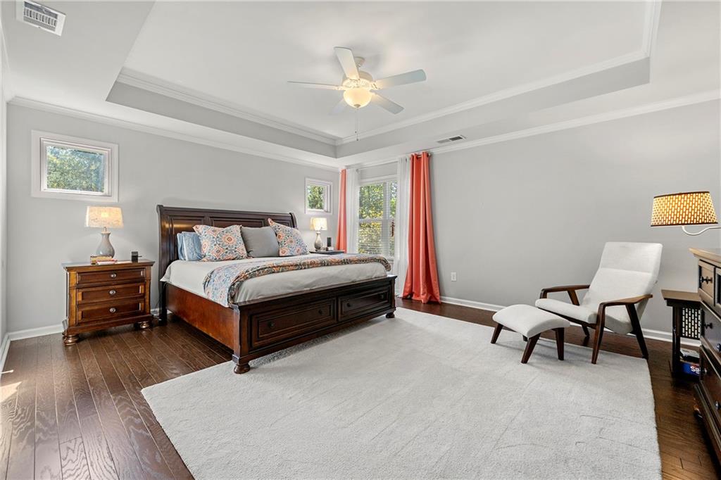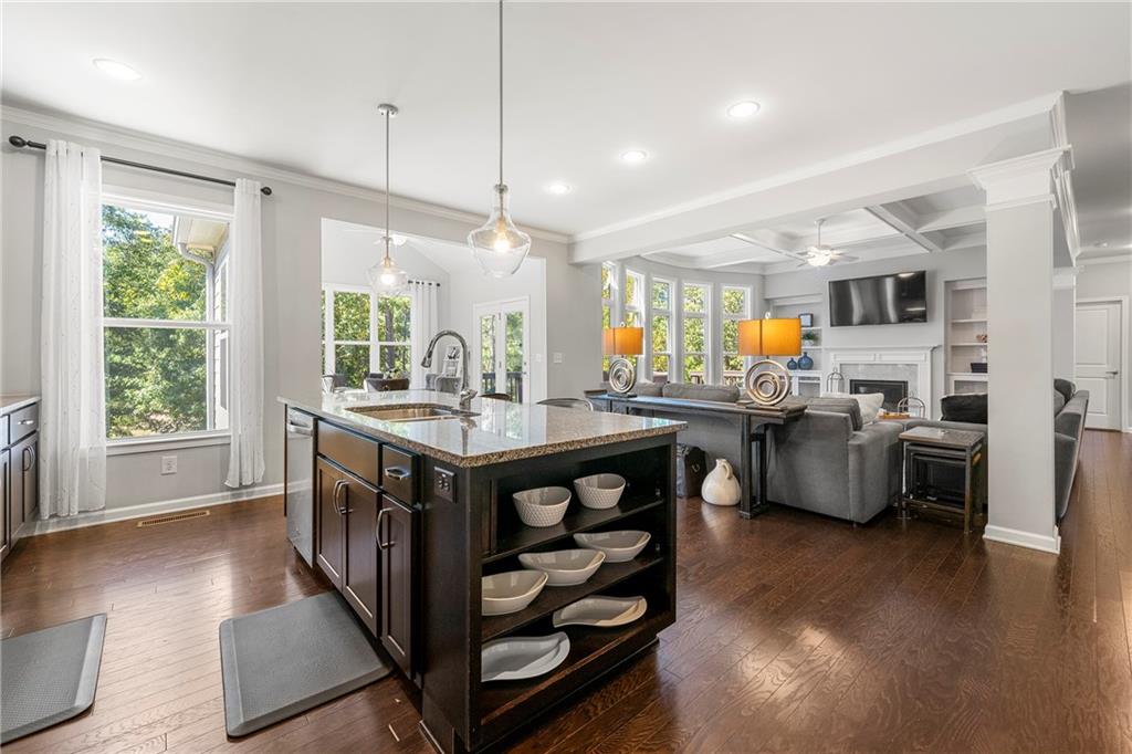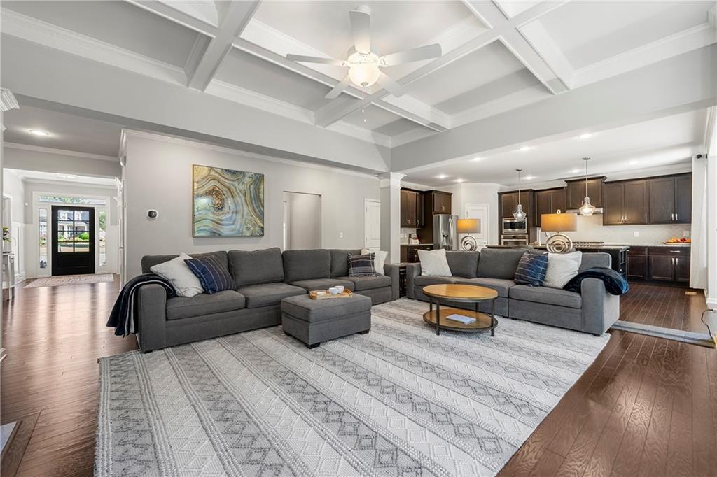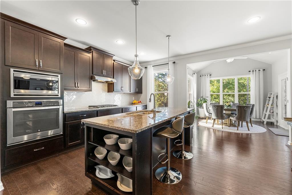 EXTRAORDINARY TRIPLE-LEVEL BRICK PALACE… Boasting nearly $250,000 in custom upgrades, this stunning pet-free immaculate luxury home is in one of the highest-rated school districts of renown Gwinnett County. Minutes to the Mall of GA, this like-new home is nestled in heart of very quite cul-de-sac. Level driveway leads to large, front covered porch… Enter home with formal office, formal dining room, and extra-large Grand room with “bowed” palladium windows- allowing a bright interior home. This entertaining open concept floor plan has a unique “Keeping Room” off the kitchen, providing a secondary entertainment area- can also be a sun room- yes, this home features a one-of-a-kind custom floorpan that sets it apart from the others! Full guest suite on main. Heavy trim package… Gourmet chef’s kitchen with every luxury! Upper level features 4BRs/ 3 full BAs/ and an awesome 5th “step up” media room or 2nd office! Unique laundry room has private “pass thru” to elegant owner’s bedroom suite. Almost no carpet- first & second floors hardwood, engineered wood- with basement level quality LVP. Terrace level is built out NICE!!! Features: Full guest suite with nicely appointed bath; game room or billiard room; bar or 2nd kitchen; theatre/ media room; and double-sized storage centers. Exit basement to super-sized screened in patio- overlooking BIG BIG sodded soccer-sized and level fenced yard- perfect for pool or play or gardening- and with amazing privacy… Some add’l notable features: (2) hot water heaters of 100 gal total; basement refrigerator remains- as well as the theatre seating. Being custom built in 2017 this home is only 9 yrs young and meticulously cared. Even comes EV-prewired at the garage! Community is very new, built out- and also has a wonderful family sports center. This gem has the WHOLE PKG folks… A sure-to-please winner on your list!