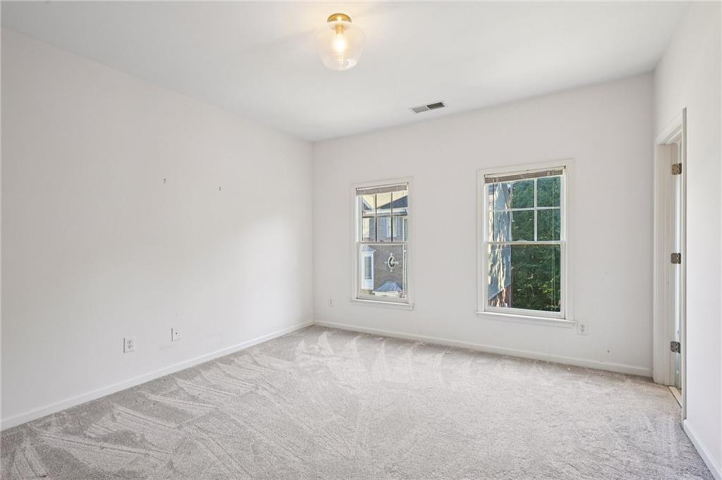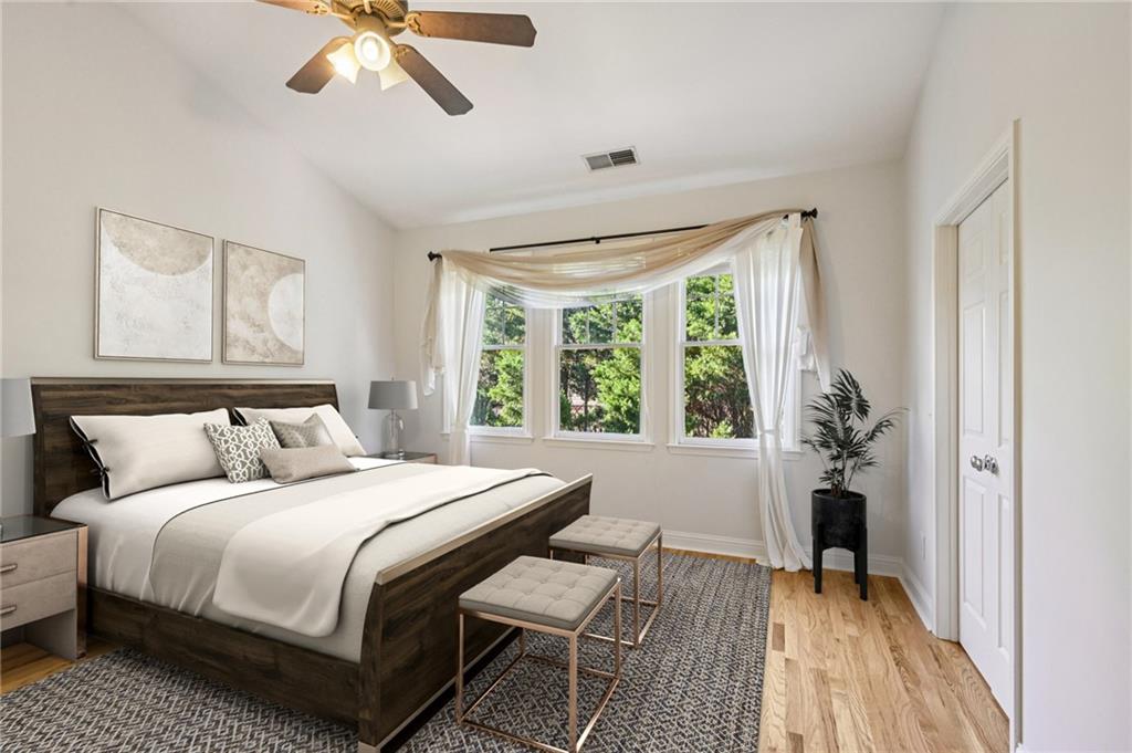 Beautifully updated and brimming with style, this stately Vinings townhome seamlessly blends classic sophistication with modern comforts, featuring a spacious and versatile layout ideal for today’s way of living. Step inside to discover stunning new hardwood floors that flow throughout the entry and main level, setting the tone for refined living. The first floor features a private bedroom and full bath—perfect for guests, a home office, or an in-law suite—offering both comfort and versatility. Upstairs, the bright, open-concept main level is ideal for effortless entertaining. The living room showcases floor-to-ceiling windows that flood the space with natural light and open onto the deck for easy indoor-outdoor living. A cozy fireplace with custom built-ins anchors the room, creating an inviting atmosphere. The dining area features a tray ceiling and a statement light fixture that adds a touch of sophistication. The renovated kitchen is a true showpiece, boasting on-trend white cabinetry, granite countertops, a tile backsplash, a large center island with seating, and a sunny breakfast area—perfect for casual meals or morning coffee. On the upper level, brand-new carpet enhances the comfort of the bedrooms. The spacious primary suite has hardwood floors and serves as a serene retreat with en-suite bath featuring dual vanities, a separate soaking tub, a walk-in shower, and an expansive closet. A secondary bedroom with its own private bath and a convenient upstairs laundry room complete this level. Enjoy peaceful wooded views from the Trex composite deck or unwind on the lower patio area, both perfect for relaxing or entertaining outdoors. Additional highlights include a garage equipped with an electric vehicle charging plug, plus ample guest parking nearby. Situated in an unbeatable location near I-285, The Battery, Silver Comet Trail, West Midtown, Vinings, and Buckhead, this home offers easy access to top shopping, dining, and recreation. You’re also just moments from Publix, Sprouts, and countless restaurants and conveniences — only 10 miles to Downtown Atlanta and 15 miles to Hartsfield-Jackson Airport. Don’t miss this exceptional opportunity—schedule your private tour today!