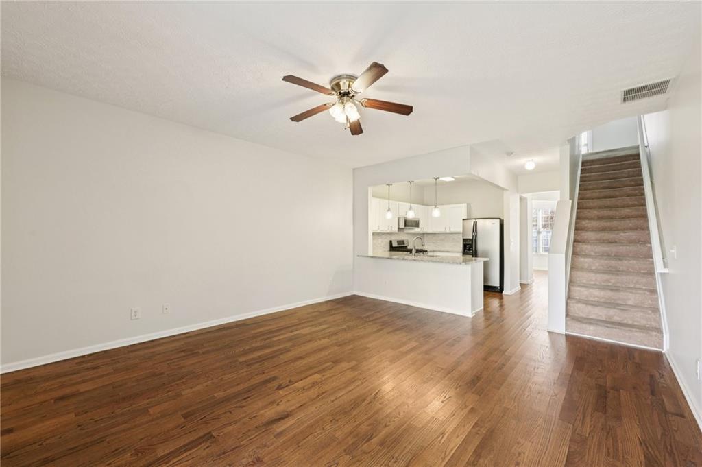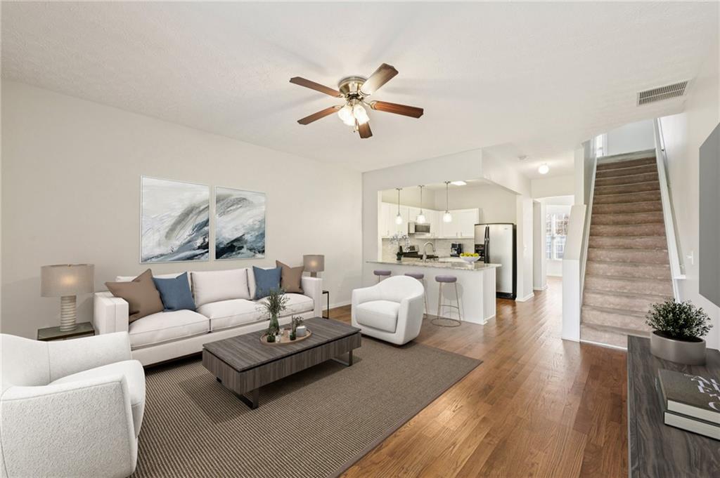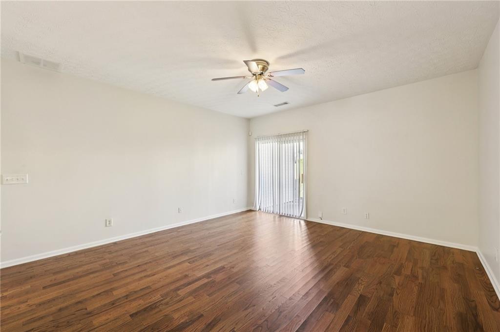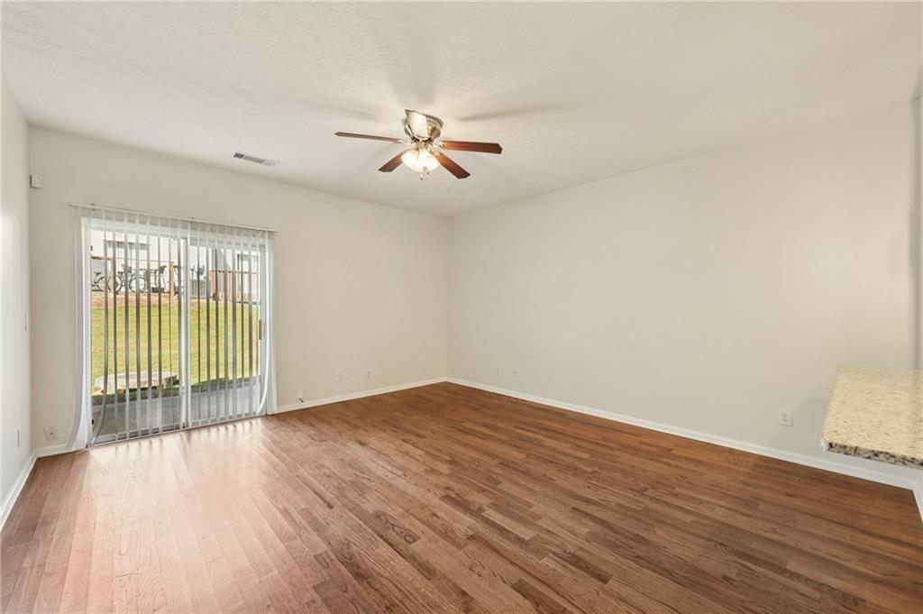 Lovely Townhome in a Fantastic Location! Step inside to discover gorgeous hardwood floors that flow throughout the main level. A front flex room offers endless possibilities—perfect as a formal dining room, formal living space, or home office. The bright, open living room is spacious and provides easy access to the back patio, ideal for entertaining or relaxing. The updated kitchen features a breakfast bar, granite countertops, tile backsplash, on-trend white cabinets with modern pulls, and stainless steel appliances. Upstairs, retreat to the oversized primary suite with dual closets and an updated en-suite bath featuring a separate tub and shower. A second bedroom with its own en-suite bath offers additional comfort and privacy. Laundry closet upstairs for added convenience. Enjoy the community amenities, including a clubhouse, pool, and fitness center. Conveniently located with easy access to I-85, shopping, and dining, this home combines comfort, style, and convenience. Book your tour today!