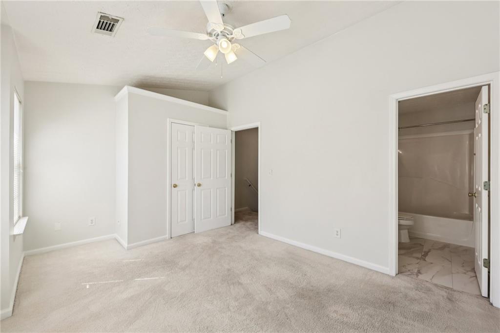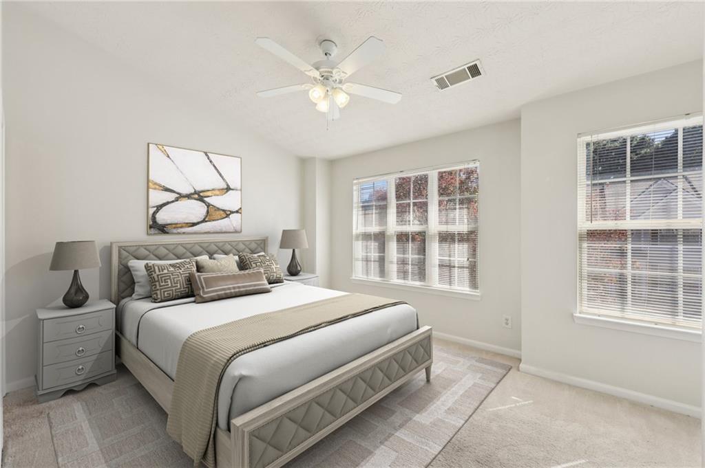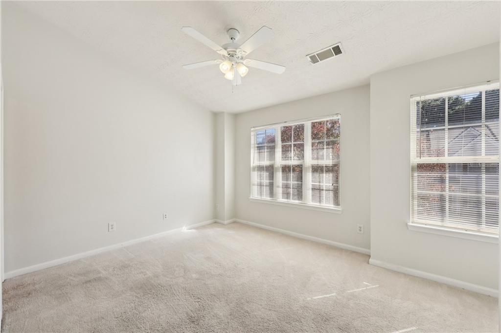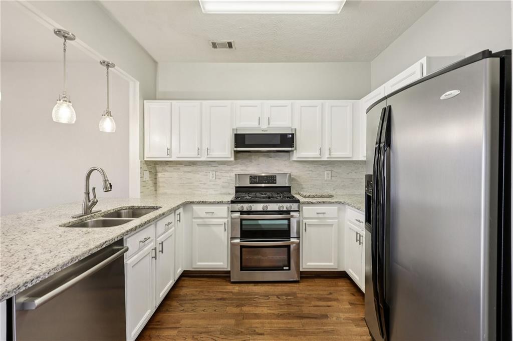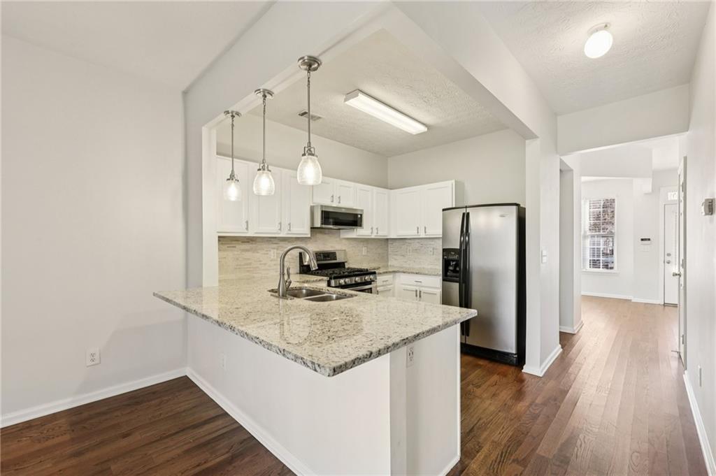 Lovely Townhome in a Fantastic Location! Step inside to discover gorgeous hardwood floors that flow throughout the main level. A front flex room offers endless possibilities—perfect as a formal dining room, formal living space, or home office. The bright, open living room is spacious and provides easy access to the back patio, ideal for entertaining or relaxing. The updated kitchen features a breakfast bar, granite countertops, tile backsplash, on-trend white cabinets with modern pulls, and stainless steel appliances. Upstairs, retreat to the oversized primary suite with dual closets and an updated en-suite bath featuring a separate tub and shower. A second bedroom with its own en-suite bath offers additional comfort and privacy. Laundry closet upstairs for added convenience. Enjoy the community amenities, including a clubhouse, pool, and fitness center. Conveniently located with easy access to I-85, shopping, and dining, this home combines comfort, style, and convenience. Book your tour today!