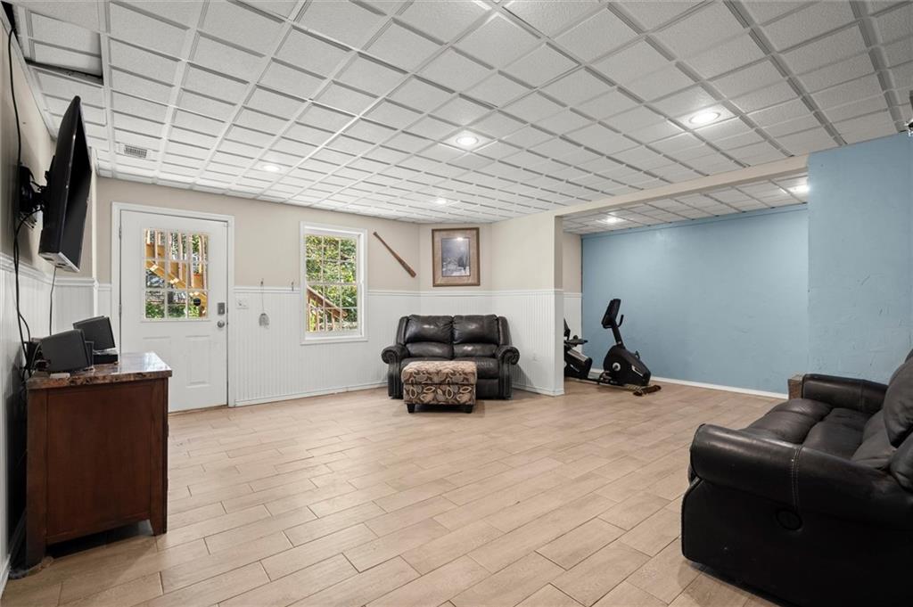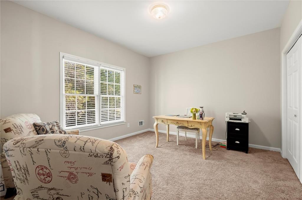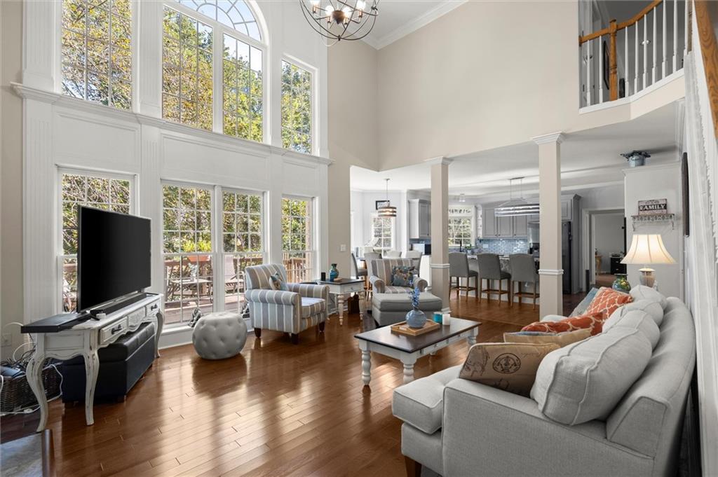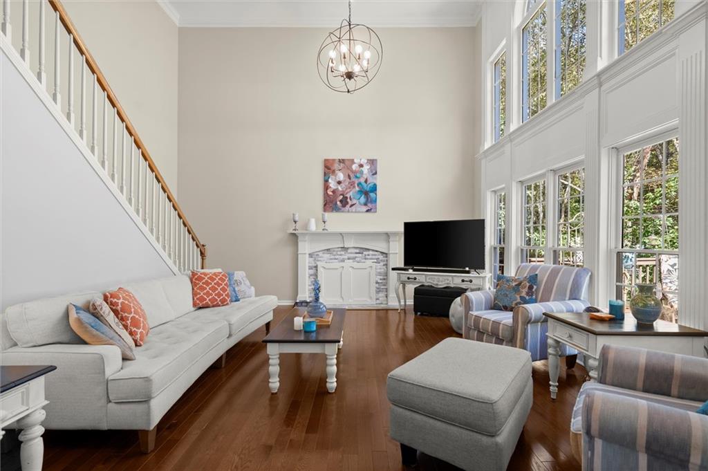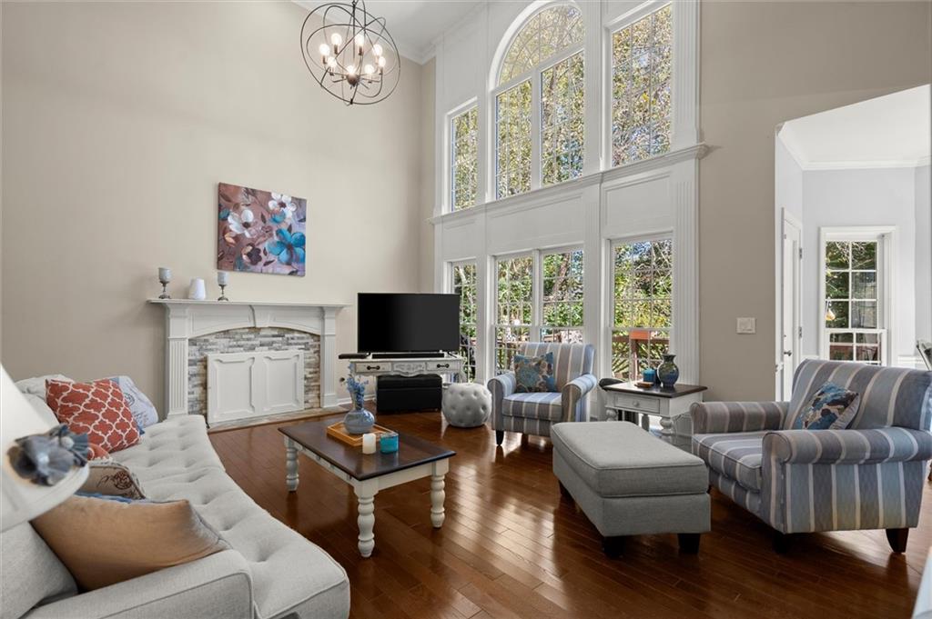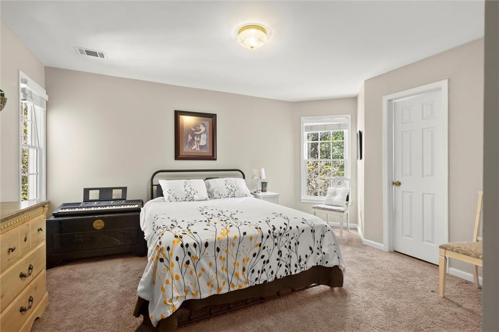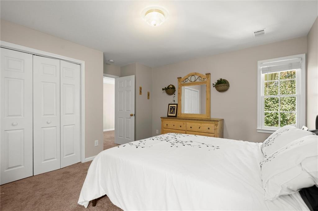 Here’s your chance to own one of the few five-bedroom, four-bath executive homes with a full basement in the highly sought-after Olde Savannah Square community! This spacious and beautifully maintained home is ideal for multigenerational living, offering comfort, flexibility, and style. The main level features gleaming hardwood floors, a bedroom and full bath—perfect for guests or extended family—and a renovated kitchen that opens to the stunning two-story great room. A wall of floor-to-ceiling windows fills the space with natural light and brings the outdoors in, creating an inviting and airy atmosphere. You’ll also find a formal dining room for gatherings and a private sitting room ideal for reading or relaxing. Upstairs, you’ll discover four spacious bedrooms and two full baths, including a generous primary suite with his-and-hers walk-in closets, a spa-like bathroom featuring a soaking garden tub, and a separate shower. The partially finished basement offers endless possibilities—with its wall-to-wall windows, direct access to the backyard, and multiple flexible areas that can serve as a home theater, gym, office, or recreation space. Step outside to a private backyard that backs up to a serene creek, where you can unwind on the deck and enjoy your favorite drink while surrounded by nature. Recent upgrades include new hardwood floors in the main level, kitchen granite countertops, new main-level HVAC, an EV charger, updated electrical panel, new smoke alarm system, and more! Olde Savannah Square is an active and vibrant community featuring a clubhouse, pool, tennis and pickleball courts, beach volleyball, and a children’s playground. Conveniently located near I-85, I-985, top-rated schools, shopping, dining, and entertainment, this home truly has it all. Don’t miss the opportunity to make this exceptional property yours—schedule your private showing today!