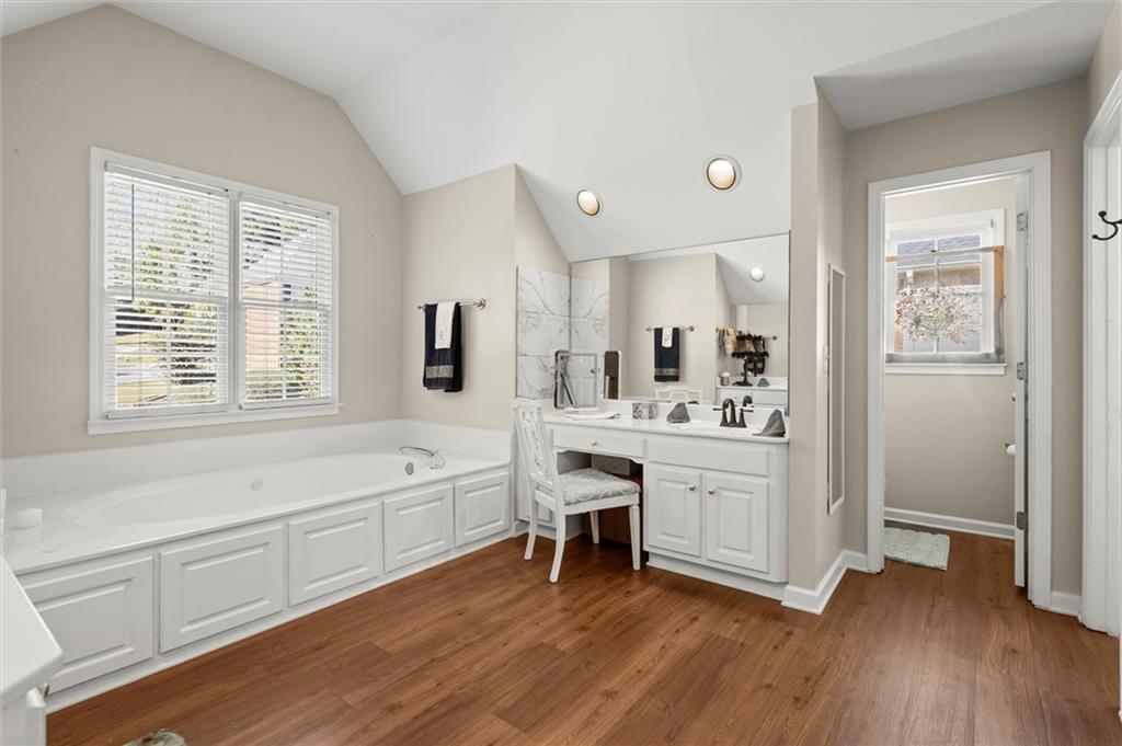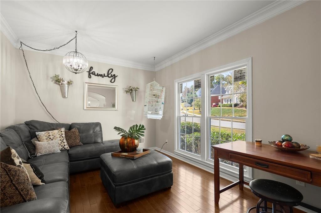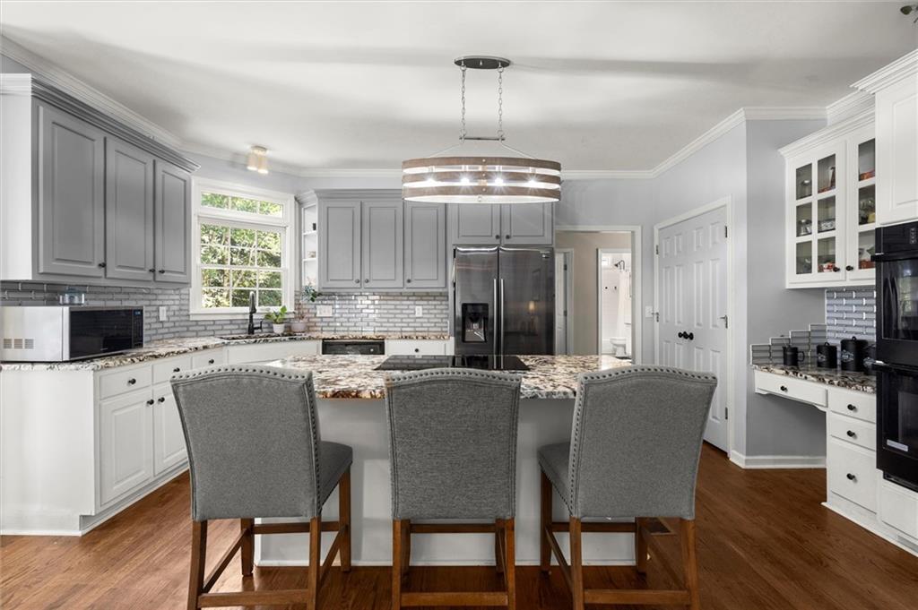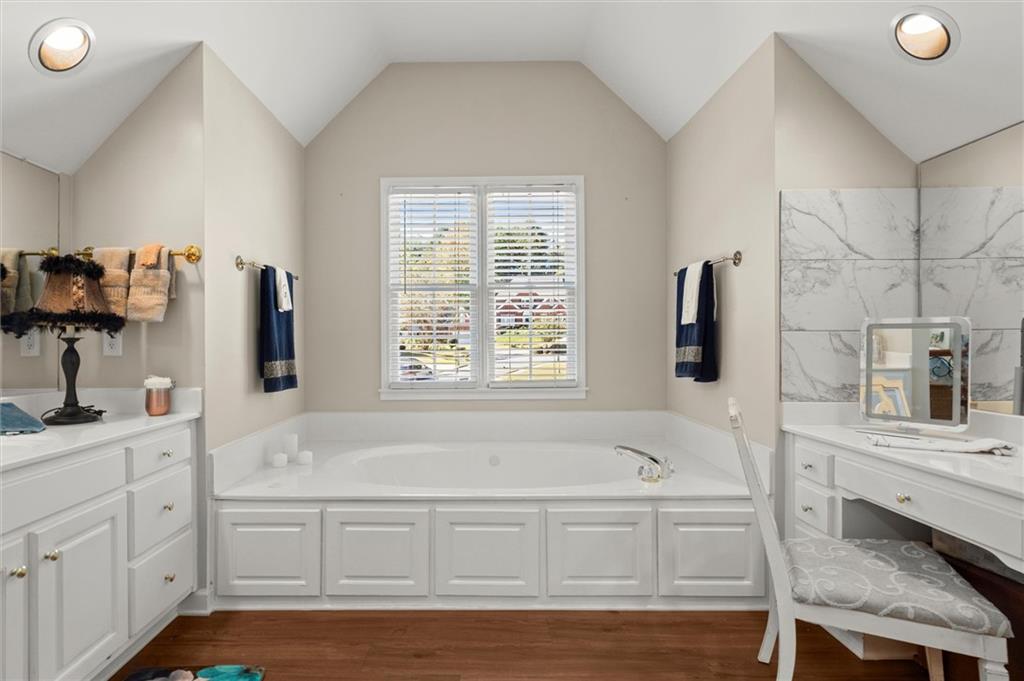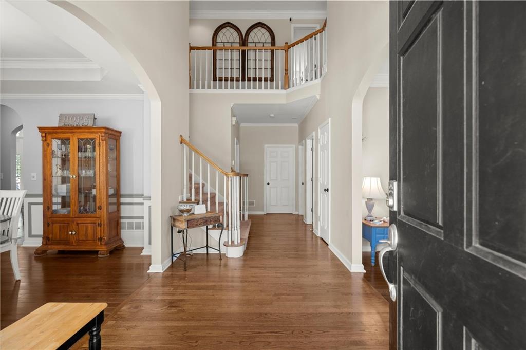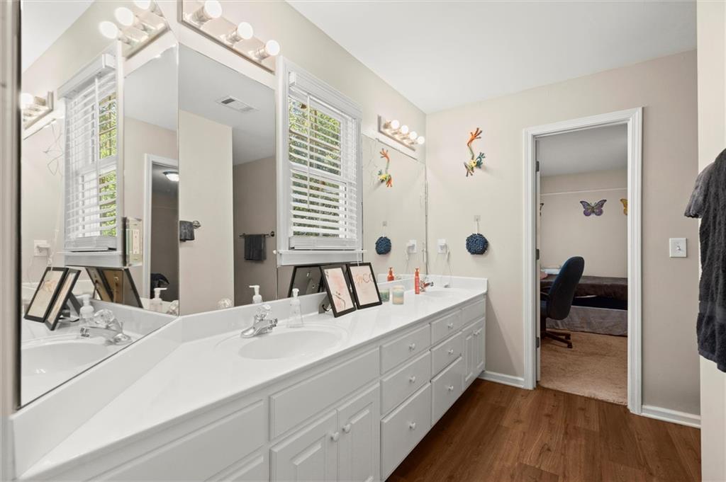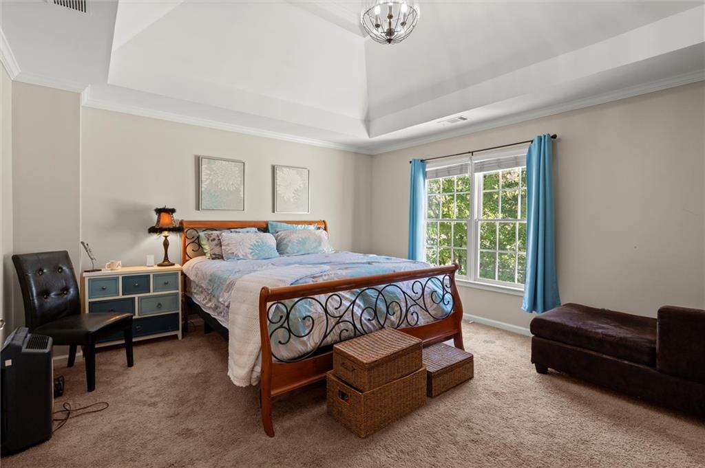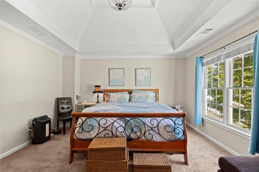 Here’s your chance to own one of the few five-bedroom, four-bath executive homes with a full basement in the highly sought-after Olde Savannah Square community! This spacious and beautifully maintained home is ideal for multigenerational living, offering comfort, flexibility, and style. The main level features gleaming hardwood floors, a bedroom and full bath—perfect for guests or extended family—and a renovated kitchen that opens to the stunning two-story great room. A wall of floor-to-ceiling windows fills the space with natural light and brings the outdoors in, creating an inviting and airy atmosphere. You’ll also find a formal dining room for gatherings and a private sitting room ideal for reading or relaxing. Upstairs, you’ll discover four spacious bedrooms and two full baths, including a generous primary suite with his-and-hers walk-in closets, a spa-like bathroom featuring a soaking garden tub, and a separate shower. The partially finished basement offers endless possibilities—with its wall-to-wall windows, direct access to the backyard, and multiple flexible areas that can serve as a home theater, gym, office, or recreation space. Step outside to a private backyard that backs up to a serene creek, where you can unwind on the deck and enjoy your favorite drink while surrounded by nature. Recent upgrades include new hardwood floors in the main level, kitchen granite countertops, new main-level HVAC, an EV charger, updated electrical panel, new smoke alarm system, and more! Olde Savannah Square is an active and vibrant community featuring a clubhouse, pool, tennis and pickleball courts, beach volleyball, and a children’s playground. Conveniently located near I-85, I-985, top-rated schools, shopping, dining, and entertainment, this home truly has it all. Don’t miss the opportunity to make this exceptional property yours—schedule your private showing today!