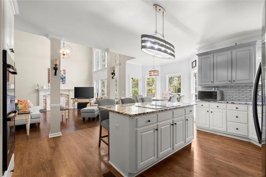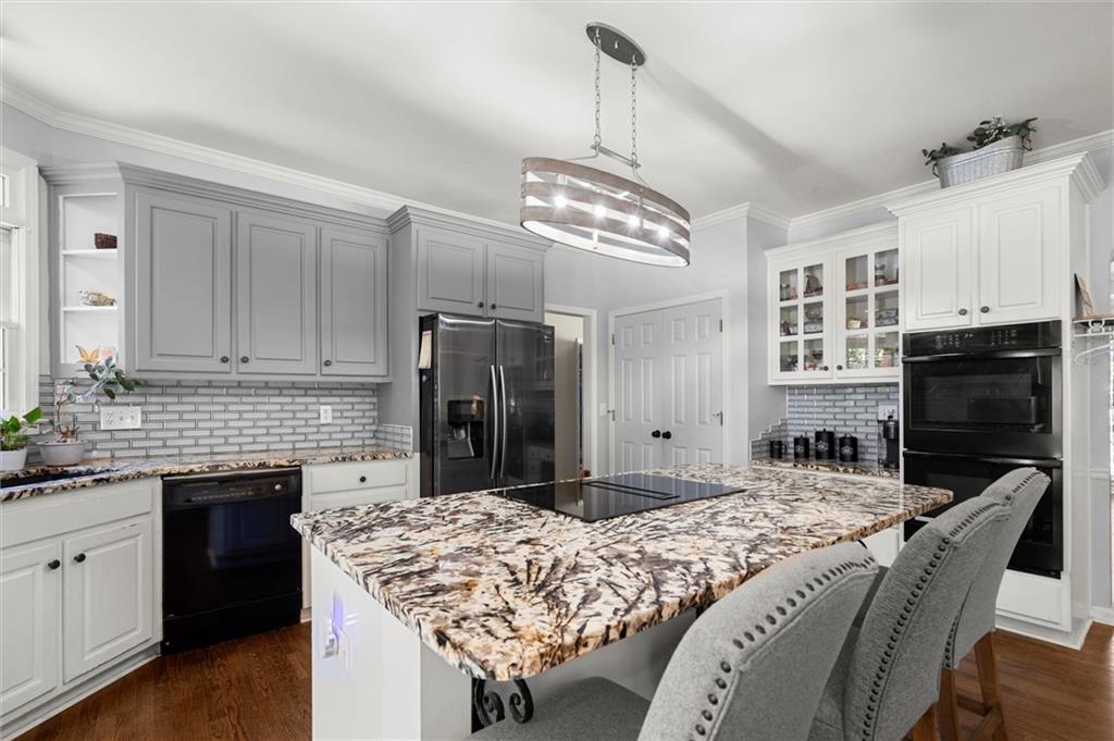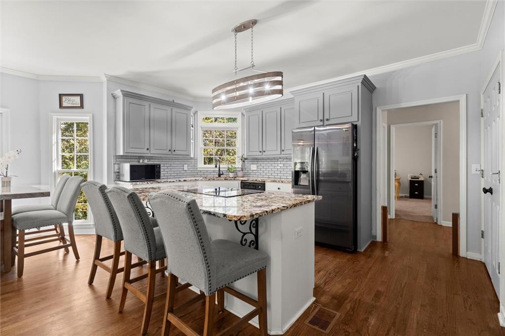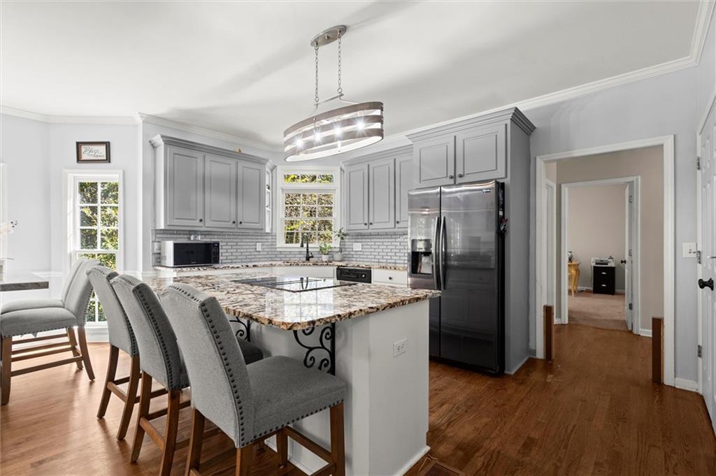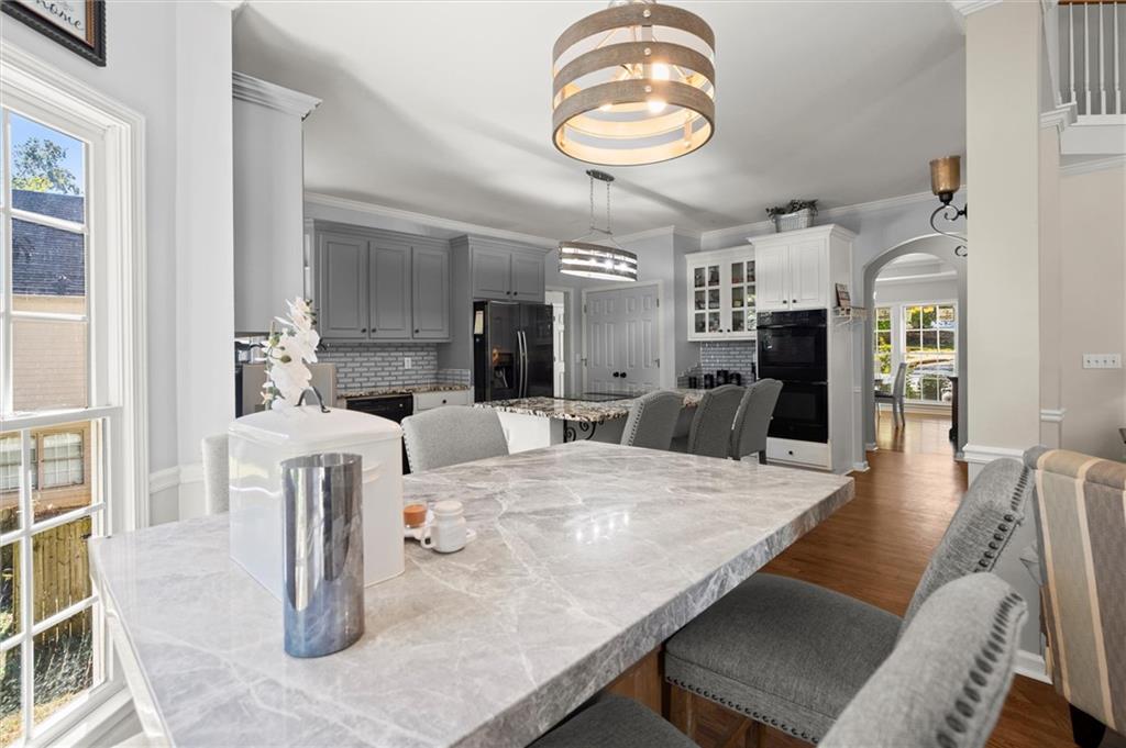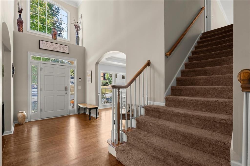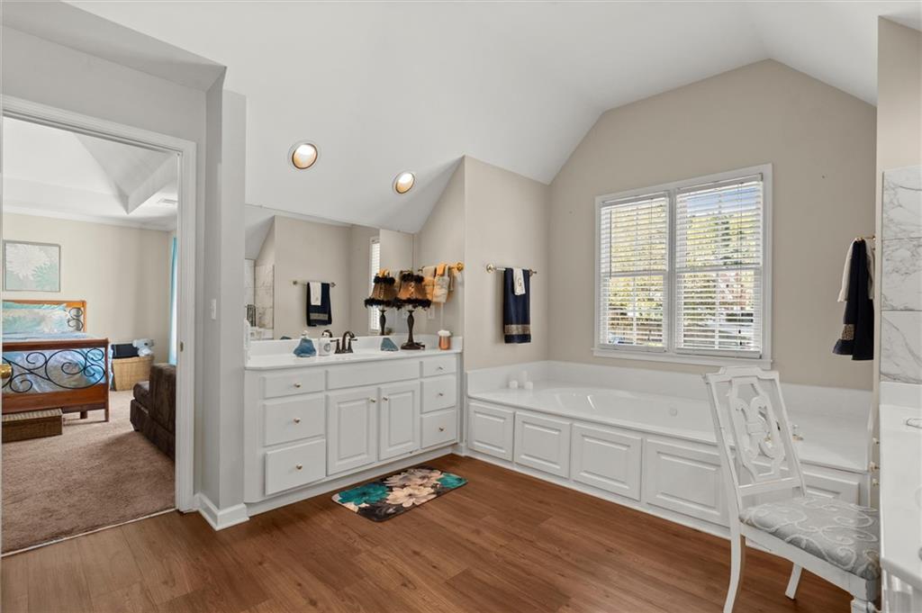 Here’s your chance to own one of the few five-bedroom, four-bath executive homes with a full basement in the highly sought-after Olde Savannah Square community! This spacious and beautifully maintained home is ideal for multigenerational living, offering comfort, flexibility, and style. The main level features gleaming hardwood floors, a bedroom and full bath—perfect for guests or extended family—and a renovated kitchen that opens to the stunning two-story great room. A wall of floor-to-ceiling windows fills the space with natural light and brings the outdoors in, creating an inviting and airy atmosphere. You’ll also find a formal dining room for gatherings and a private sitting room ideal for reading or relaxing. Upstairs, you’ll discover four spacious bedrooms and two full baths, including a generous primary suite with his-and-hers walk-in closets, a spa-like bathroom featuring a soaking garden tub, and a separate shower. The partially finished basement offers endless possibilities—with its wall-to-wall windows, direct access to the backyard, and multiple flexible areas that can serve as a home theater, gym, office, or recreation space. Step outside to a private backyard that backs up to a serene creek, where you can unwind on the deck and enjoy your favorite drink while surrounded by nature. Recent upgrades include new hardwood floors in the main level, kitchen granite countertops, new main-level HVAC, an EV charger, updated electrical panel, new smoke alarm system, and more! Olde Savannah Square is an active and vibrant community featuring a clubhouse, pool, tennis and pickleball courts, beach volleyball, and a children’s playground. Conveniently located near I-85, I-985, top-rated schools, shopping, dining, and entertainment, this home truly has it all. Don’t miss the opportunity to make this exceptional property yours—schedule your private showing today!
