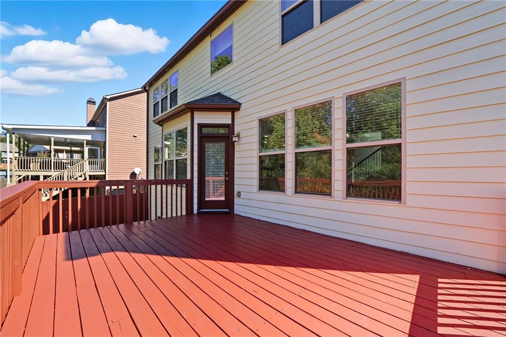 Nestled in the sought-after Champions Run community, this elegant home blends classic charm with modern comfort in a setting designed for both everyday living and effortless entertaining. Step through the spacious front porch and feel instantly at home. A grand two-story foyer welcomes you with natural light and an immediate sense of openness, setting the stage for what’s to come. Just beyond, a refined dining room with coffered ceilings and wainscoting creates an inviting space for memorable gatherings. The heart of the home flows into an open living room and kitchen, designed for both comfort and connection. The kitchen offers abundant counter space, generous cabinetry, and a double oven that makes entertaining effortless. Alongside the main living areas, a guest bedroom on the main level adds versatility and ease. Step outside from the living room onto the expansive back deck—perfect for summer entertaining and weekend BBQs. Overlooking a fully fenced, lushly landscaped backyard, this space offers the ideal backdrop for gathering with friends or relaxing at the end of the day. Below, a walkout from the unfinished daylight basement leads to a back patio and garden area, creating seamless indoor-outdoor living. Upstairs, a secondary bedroom is enhanced by its own large covered balcony—a perfect spot to enjoy quiet mornings or sunset views. Nearby, the master bedroom is filled with natural light, highlighted by a vaulted cathedral ceiling and a cozy sitting area that invites rest and retreat. The home has been freshly painted throughout and features new carpet upstairs, adding a clean, updated feel to the living spaces. Beyond your lot line, the community is enriched with amenities to support an active, balanced lifestyle. Access to a swimming pool, tennis courts, and a family-friendly playground provide daily opportunities for recreation and connection. Nearby, George Pierce Park, the city’s largest park at 304 acres, offers trails, athletic fields, a pond, playgrounds, and scenic green space to explore. The nearby Suwanee Creek Greenway adds miles of inviting pathways winding through wooded landscapes—perfect for walking, running, or biking. The community’s robust amenities package speaks to both active living and lasting enjoyment for all ages. This home gracefully blends architectural charm, comfortable living zones, and desirable amenity access. It’s a place where everyday life and shared moments are equally well accommodated. Let this property be where your next chapter begins.