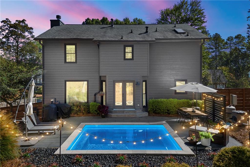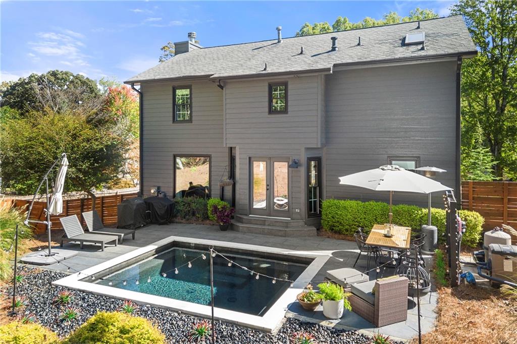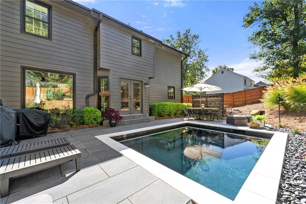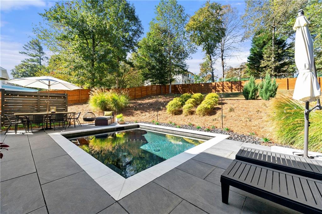 Modern Luxury Meets Established Charm in West Cobb Welcome to this completely reimagined 3-bedroom, 2.5-bath masterpiece—a true showstopper of modern design and functional luxury, nestled in a highly sought-after, established community in West Cobb, Marietta, GA. Minutes from top-rated schools, premier shopping, fine dining, and every convenience, this is the lifestyle upgrade you've been waiting for. Designer Interior Touches & Practical Upgrades Every detail of this home has been thoughtfully modernized, starting with brand-new, energy-efficient windows installed throughout, bathing the space in natural light while keeping utilities low. Open and Airy Design: All stairways have been opened up and fitted with modern horizontal railings, creating a seamless, contemporary flow across all levels. Premium Flooring: Durable, stylish wide plank LVP flooring extends throughout the entire home, ensuring beauty and easy care. Chef's Dream Kitchen: The heart of the home features beautiful stone countertops, abundant workspace, a striking aesthetic with open shelving, and a charming breakfast area with picturesque pool views. A separate, formal dining room is ready for hosting elegant dinner parties. Cozy Gathering Spaces: The family room centers around a beautifully refurbished fireplace, providing warmth and character. Plus, a private, cozy office in the finished basement is ideal for remote work, a quiet reading nook, or a home gym. Practical Upgrades: This home also boasts new garage doors and a clean, durable epoxy floor in the garage. The Ultimate Owner's Suite The spacious primary suite is your private sanctuary. It boasts a luxurious, spa-like bath with a deep soaking tub, a separate large shower, and a double vanity with custom cabinetry. Getting ready is a pleasure with the California Custom Closet system, providing exceptional organization and storage. All bathrooms are fully updated with beautiful tile work and modern fixtures. Resort-Style Outdoor Oasis The backyard is an absolute oasis, designed for both relaxation and entertaining. Escape the everyday with your new gunite plunge pool that can be heated to a soothing 104 degrees (hot tub temperature)—perfect for year-round enjoyment. The custom outdoor space is complete with an expansive paved patio and a professionally landscaped yard, creating a stunning, low-maintenance haven. This home offers the perfect blend of modern sophistication and timeless neighborhood charm. With a location that puts you minutes from anything you need and in the district of sought-after schools, you don't have to compromise on convenience or community. Come see why this West Cobb gem won't last long!