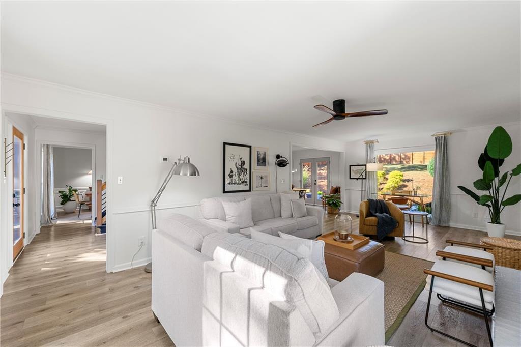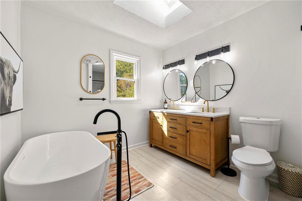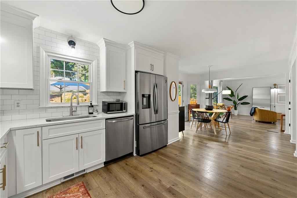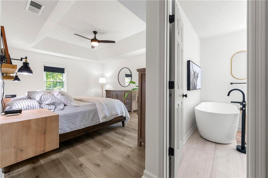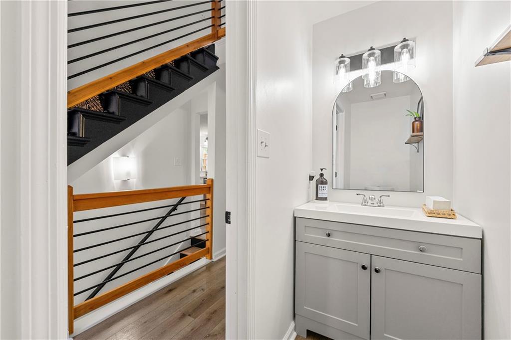 Modern Luxury Meets Established Charm in West Cobb Welcome to this completely reimagined 3-bedroom, 2.5-bath masterpiece—a true showstopper of modern design and functional luxury, nestled in a highly sought-after, established community in West Cobb, Marietta, GA. Minutes from top-rated schools, premier shopping, fine dining, and every convenience, this is the lifestyle upgrade you've been waiting for. Designer Interior Touches & Practical Upgrades Every detail of this home has been thoughtfully modernized, starting with brand-new, energy-efficient windows installed throughout, bathing the space in natural light while keeping utilities low. Open and Airy Design: All stairways have been opened up and fitted with modern horizontal railings, creating a seamless, contemporary flow across all levels. Premium Flooring: Durable, stylish wide plank LVP flooring extends throughout the entire home, ensuring beauty and easy care. Chef's Dream Kitchen: The heart of the home features beautiful stone countertops, abundant workspace, a striking aesthetic with open shelving, and a charming breakfast area with picturesque pool views. A separate, formal dining room is ready for hosting elegant dinner parties. Cozy Gathering Spaces: The family room centers around a beautifully refurbished fireplace, providing warmth and character. Plus, a private, cozy office in the finished basement is ideal for remote work, a quiet reading nook, or a home gym. Practical Upgrades: This home also boasts new garage doors and a clean, durable epoxy floor in the garage. The Ultimate Owner's Suite The spacious primary suite is your private sanctuary. It boasts a luxurious, spa-like bath with a deep soaking tub, a separate large shower, and a double vanity with custom cabinetry. Getting ready is a pleasure with the California Custom Closet system, providing exceptional organization and storage. All bathrooms are fully updated with beautiful tile work and modern fixtures. Resort-Style Outdoor Oasis The backyard is an absolute oasis, designed for both relaxation and entertaining. Escape the everyday with your new gunite plunge pool that can be heated to a soothing 104 degrees (hot tub temperature)—perfect for year-round enjoyment. The custom outdoor space is complete with an expansive paved patio and a professionally landscaped yard, creating a stunning, low-maintenance haven. This home offers the perfect blend of modern sophistication and timeless neighborhood charm. With a location that puts you minutes from anything you need and in the district of sought-after schools, you don't have to compromise on convenience or community. Come see why this West Cobb gem won't last long!
