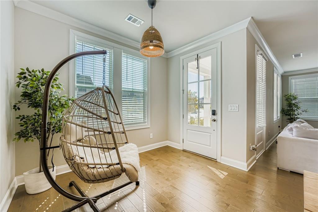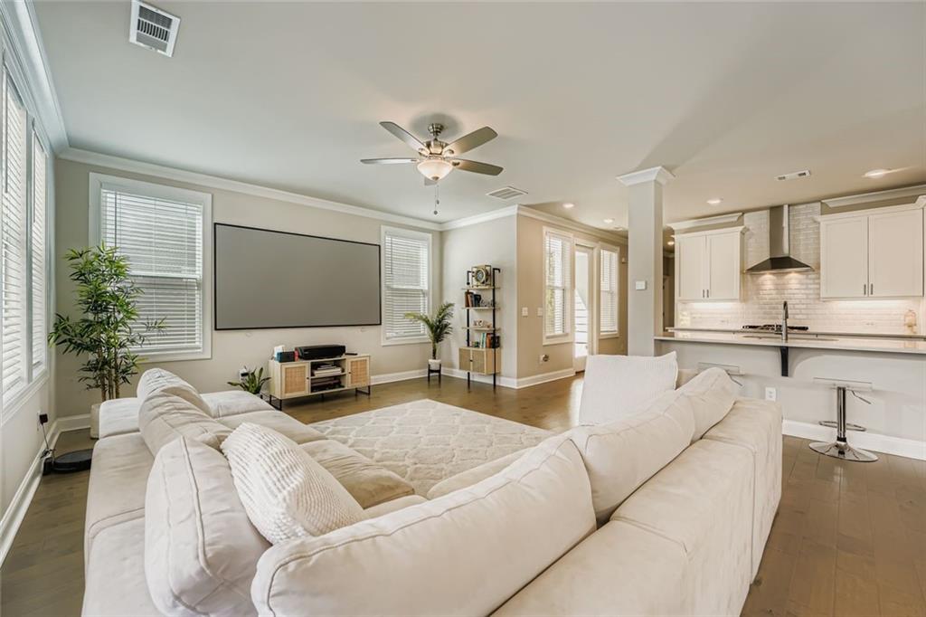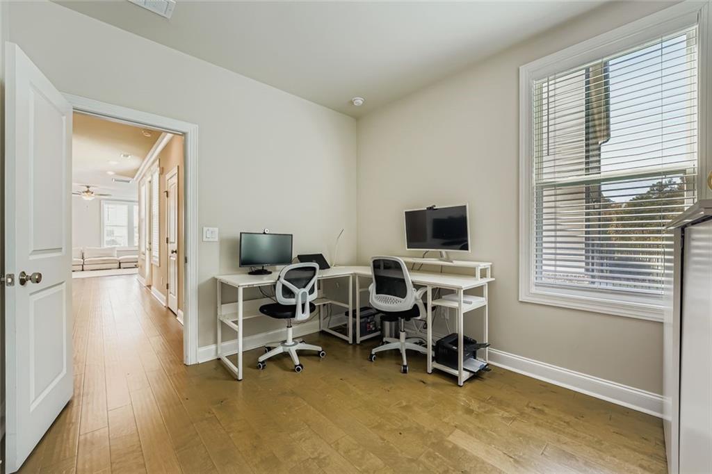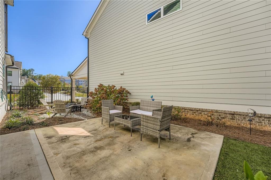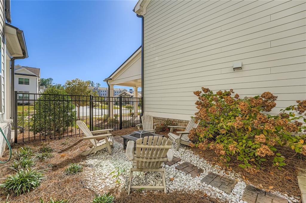 Terrific location and schools! This beautifully crafted, open concept floor plan offers a welcoming foyer that opens up to a large Family Room, Dining Area and Kitchen! Additional office/exercise room on main level! Oversized kitchen island overlooks the Family Room! Upstairs you will enjoy an oversized Owner’s Suite with his and her closets, Owner’s Bath with separate vanities and two additional bedrooms joined by a Jack and Jill bathroom! The outdoor entertaining space features a side covered porch with an extended patio that views the fire-pit area as well as installed artificial turf rear yard which creates a larger more useable yard within the level fenced courtyard area. Numerous features include a rear-entry garage, irrigation system/** Premium Artificial Turf yard & custom fire fit ( unique in the community)*** The HOA covers all landscaping, ensuring a pristine, well kept appearance year round perfect for low-maintenance living. Community amenities include a gated entrance, cabana, pool, five pocket parks and access to County Park trails and a path to Peachtree Ridge Park! Ellington is also located within the desirable Peachtree Ridge School District and Suwanee Town Center!