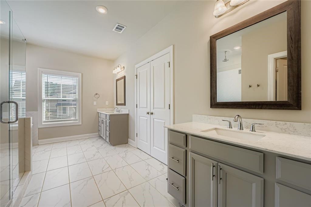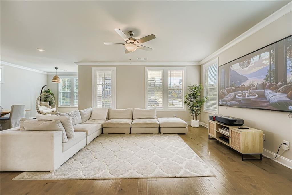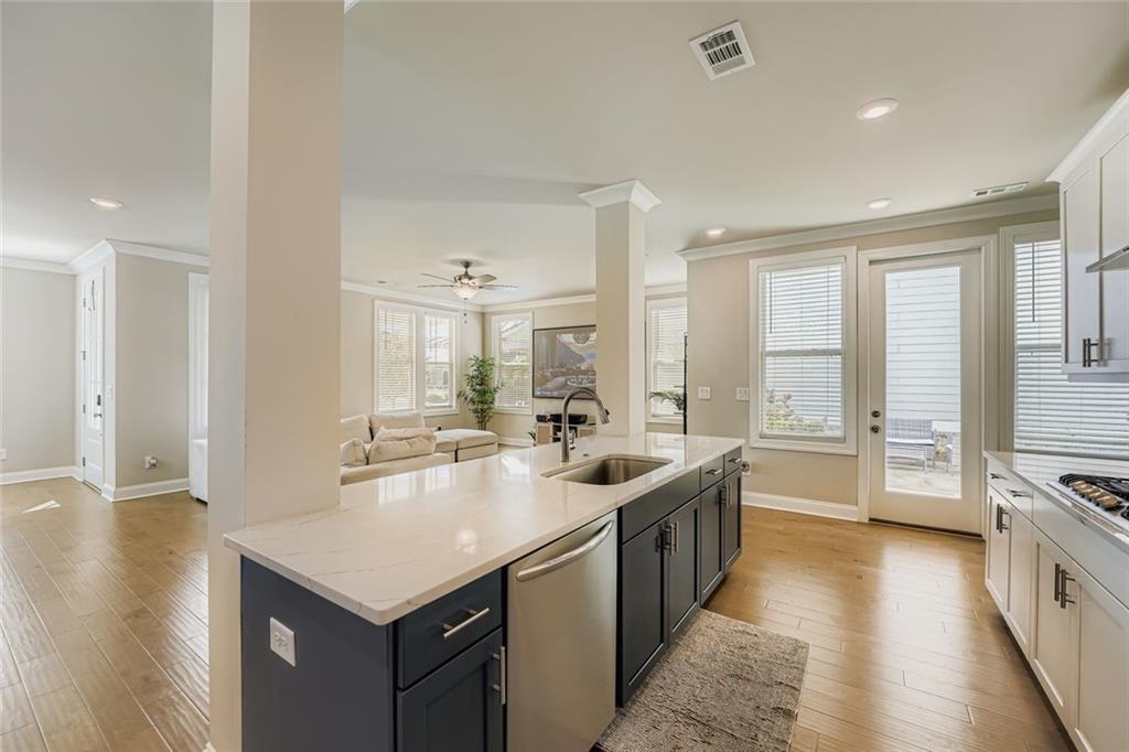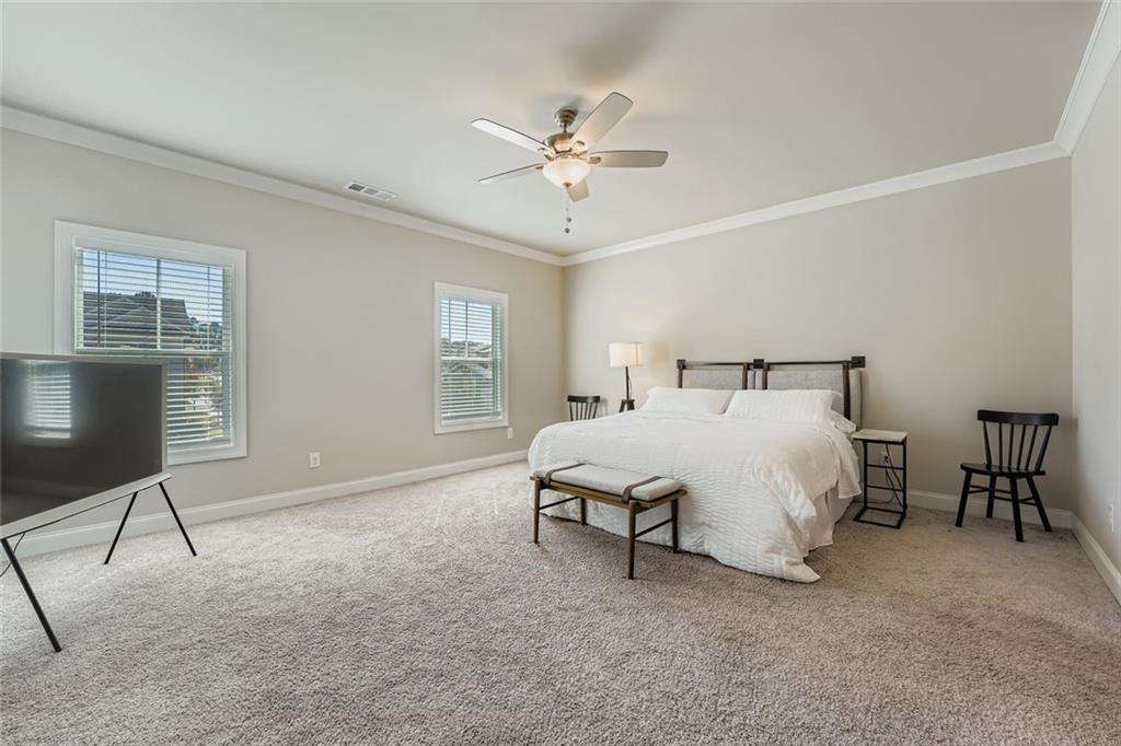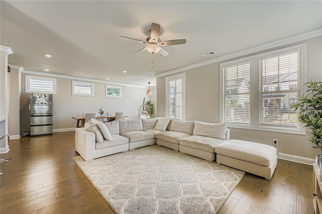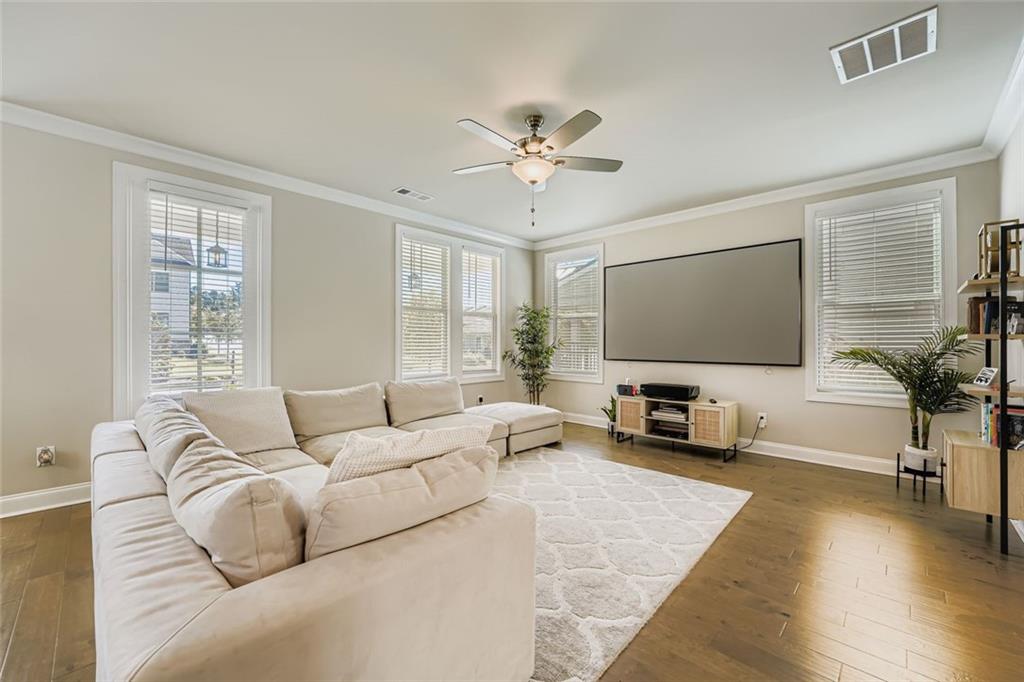 Terrific location and schools! This beautifully crafted, open concept floor plan offers a welcoming foyer that opens up to a large Family Room, Dining Area and Kitchen! Additional office/exercise room on main level! Oversized kitchen island overlooks the Family Room! Upstairs you will enjoy an oversized Owner’s Suite with his and her closets, Owner’s Bath with separate vanities and two additional bedrooms joined by a Jack and Jill bathroom! The outdoor entertaining space features a side covered porch with an extended patio that views the fire-pit area as well as installed artificial turf rear yard which creates a larger more useable yard within the level fenced courtyard area. Numerous features include a rear-entry garage, irrigation system/** Premium Artificial Turf yard & custom fire fit ( unique in the community)*** The HOA covers all landscaping, ensuring a pristine, well kept appearance year round perfect for low-maintenance living. Community amenities include a gated entrance, cabana, pool, five pocket parks and access to County Park trails and a path to Peachtree Ridge Park! Ellington is also located within the desirable Peachtree Ridge School District and Suwanee Town Center!