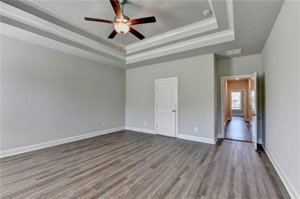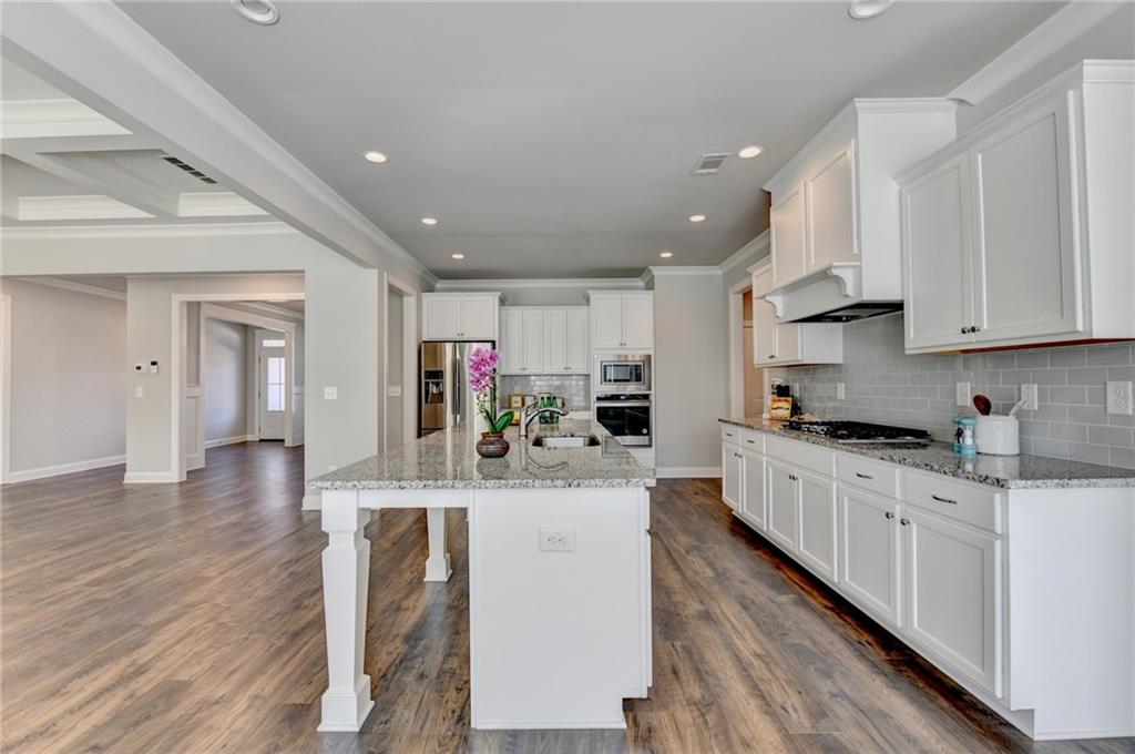Welcome to the Walker Anderson Homes, a stunning all-hardwood floor ranch-style retreat on a large, level, and private homesite. This beautifully designed home offers the ideal blend of comfort and sophistication, featuring a covered rear porch that overlooks the expansive backyard, perfect for outdoor gatherings, gardening, or simply enjoying peaceful moments in nature. Inside, the thoughtfully designed main level boasts a luxurious owner’s suite and a spacious secondary bedroom, both with private en-suite baths. The open-concept living space is highlighted by a gourmet kitchen with painted cabinets, a gas cooktop with a vent hood, a separate wall oven and microwave, a walk-in pantry, and a mudroom with built-in lockers for added convenience. Upstairs, you’ll find two oversized bedrooms with walk-in closets, a full bath, and a versatile loft—perfect as a media room, play area, or home office. This home is an exceptional opportunity to enjoy single-level living with additional space for guests or family, all set on a spectacular, level backyard that offers endless possibilities. Don’t miss this rare gem!