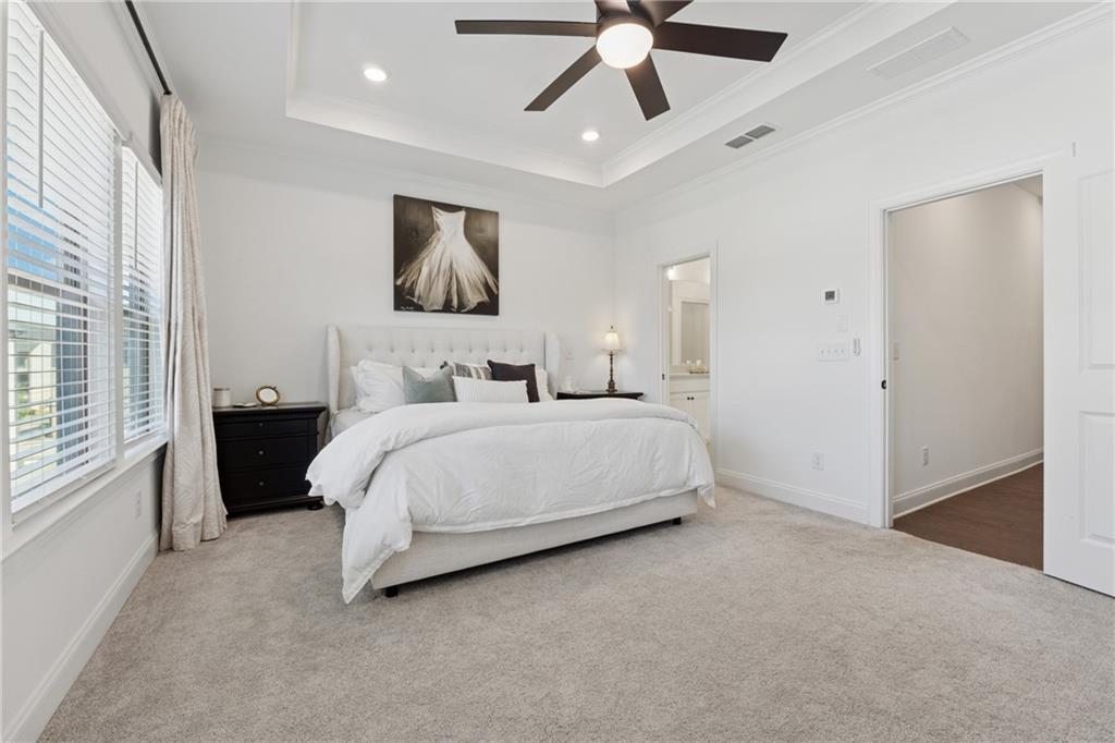 A beautifully appointed townhome in sought-after Reverie on Cumberland! This elegant, like-new residence offers open-concept living with abundant natural light and designer details throughout. The chef’s kitchen boasts quartz countertops, large island, and premium stainless-steel appliances — seamlessly connecting to a spacious living area and private balcony. The primary suite features a spa-inspired bath with double vanities and a generous walk-in closet. Secondary bedroom with en-suite bath is perfect for guests or a home office. Lower-level flex space with full bath offers the option for a private guest floor. Enjoy resort-style amenities including a sparkling pool, clubhouse, fitness center, and gated entry. Ideally located just minutes from The Battery, Truist Park, Vinings restaurants, and major highways — offering effortless, low-maintenance luxury living in the heart of it all!