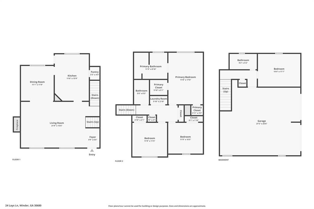 Welcome home to 24 Lays Ln, nestled in the quiet Pinkston Farms community in the heart of Barrow County. This charming home offers the perfect blend of comfort, space, and convenience. Step inside and you’re greeted by vaulted ceilings, natural light, and an open floor plan that makes gathering with family and friends easy. The cozy living room fireplace sets the perfect tone for movie nights or quiet evenings in. The kitchen is bright and functional, complete with modern appliances and plenty of cabinet space for all your cooking essentials. Upstairs, the spacious owner’s suite offers a relaxing retreat with a walk-in closet and private bath featuring dual vanities, a soaking tub, and a separate shower. The additional bedrooms are ideal for kids, guests, or even a home office. Downstairs, a bonus room with its own full bath offers flexibility for a playroom, gym, or guest suite. Outside, enjoy your large, level backyard—perfect for kids, pets, or weekend barbecues. The two-car garage adds convenience, and the quiet street means little traffic and a peaceful setting. Best of all, this home is just minutes from downtown Winder, where you can enjoy local restaurants, coffee shops, parks, and community events. You’ll love being close to schools, shopping, and easy routes to Athens, Braselton, and Bethlehem. Whether you’re looking for your first home or a place to make lasting family memories, 24 Lays Lane has everything you need and the warmth you’ve been looking for.