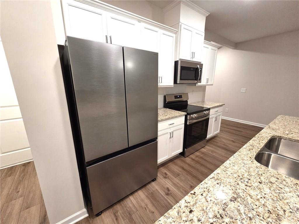 This is a brand new, never-lived-in, upscale 2-story townhome in a gated community. Hardwood floors on the main floor, a gourmet kitchen with a huge island and granite countertops. Spacious master suite with modern bathroom and walk-in closet. Vacant, ready for immediate move-in! Rent includes trash pickup & HOA dues. All electric, no gas, high-efficiency heat pump. App fee is $50/adult.