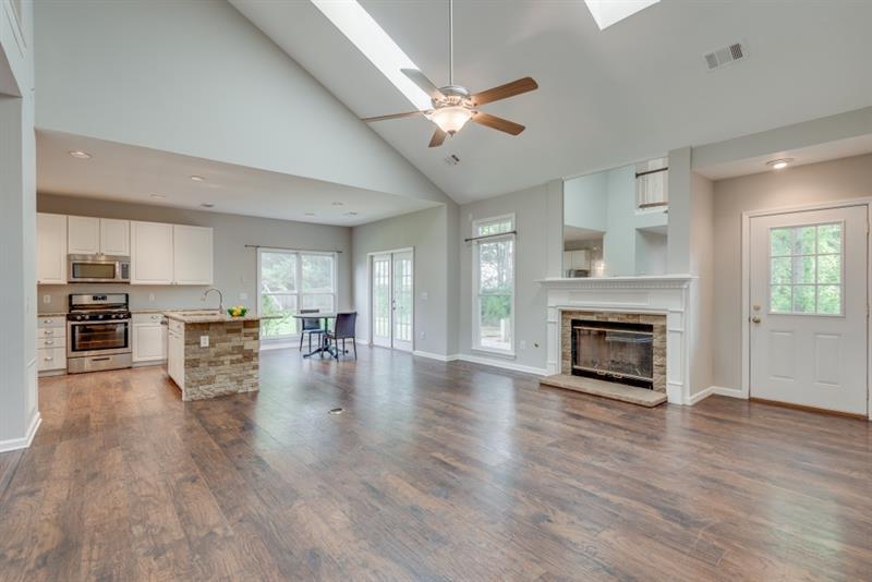 Welcome home to this amazing swim/tennis community that's zoned for award-winning Johns Creek Elementary/Riverwatch Middle/Lambert High school district! This 5 bed 3.5 bath home is loaded with tons of natural light, has vaulted ceilings throughout, includes a separate formal living room & formal dining room, has an open floor plan with view from kitchen to fireside family room, and is situated on a flat half acre lot. Upgrades include luxury vinyl flooring throughout common areas of main floor, granite counters & stainless steel appliances in the eat-in kitchen, and new vanities and lighting in all secondary bathrooms. Oversized master on main contains tray ceiling, walk-in closet, and a large ensuite bathroom equipped with double vanities, walk-in shower, and soaking tub. Four spacious secondary bedrooms are upstairs and share two additional full bathrooms. Enjoy outdoor living space with the massive flat fenced-in backyard (and huge front and side yard), private firepit, patio, and deck that's perfect for entertaining or grilling out. Washing machine, dryer, lawn care, and access to community swim/tennis all included in rent! The location couldn't be better- walk to nearby shopping & restaurants, and easy access to I-85, 141, Peachtree Industrial, and Buford Highway. Also very close to the upcoming Johns Creek Town Center (Medley), Suwanee Town Center, Avalon, Downtown Alpharetta, The Forum, Peachtree Corners Town Center, and more.