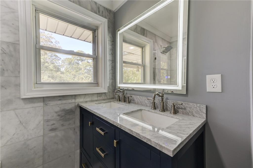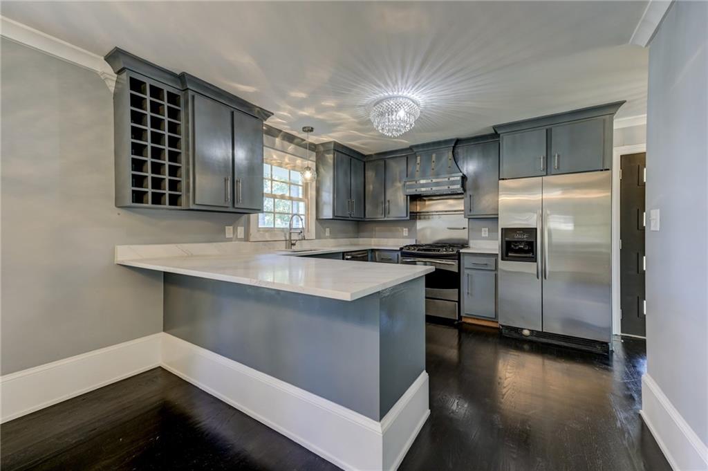This Home has been Meticulously Renovated Great Yard & Fenced in the Back. Great Location with a 5 Minute Drive to All the Happenings on The Westside and 15 minute Drive to Buckhead / Midtown. Covered Front Porch with Custom Mid -Century Front Door. Walk Inside and You have Newly Refinished Stained Black. Large Open Floorplan Featuring; Large Living Room. Dining Area. Chefs Kitchen Featuring Designer Cabinets, Counter Tops & Backsplash & High-End Appliances. The Kitchen Adjoins the Keeping/ Breakfast Room Which Includes a Very Cool Glass Wall Leading Down to your Terrace Level. Newly Added Guest Powder Room. Brand New Guest Bath with Designer Selected Stone Counters with Double Vanities, Large Soaking Tub and Stone Surround with Frameless Glass Shower Wall, Stone Wainscoting on Back Wall. Two Large Secondary Bedrooms with Ample Closet Space. Beautiful Master Bedroom with En-Suite Bath Appointed w/ Designer Stone, Frameless Glass Shower., New Vanity & Very Cool Vanity Mirror. Finishings. Outside in The Beautiful Backyard there is a 20 x 20 Detached Garage with Electricity and Water which can easily be converted into an In-law Suite or VRBO / AIR BNB for Income Generation. Full Daylight Terrace Level that can also be finished to whatever your heart desires Don’t Miss out on this Opportunity!