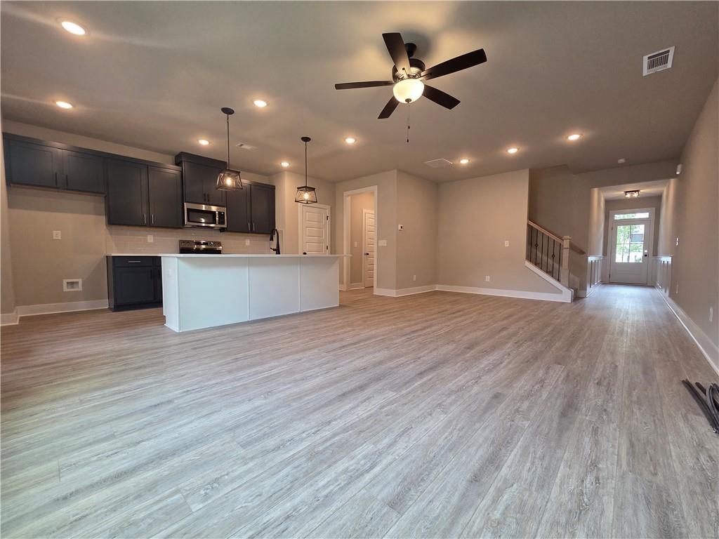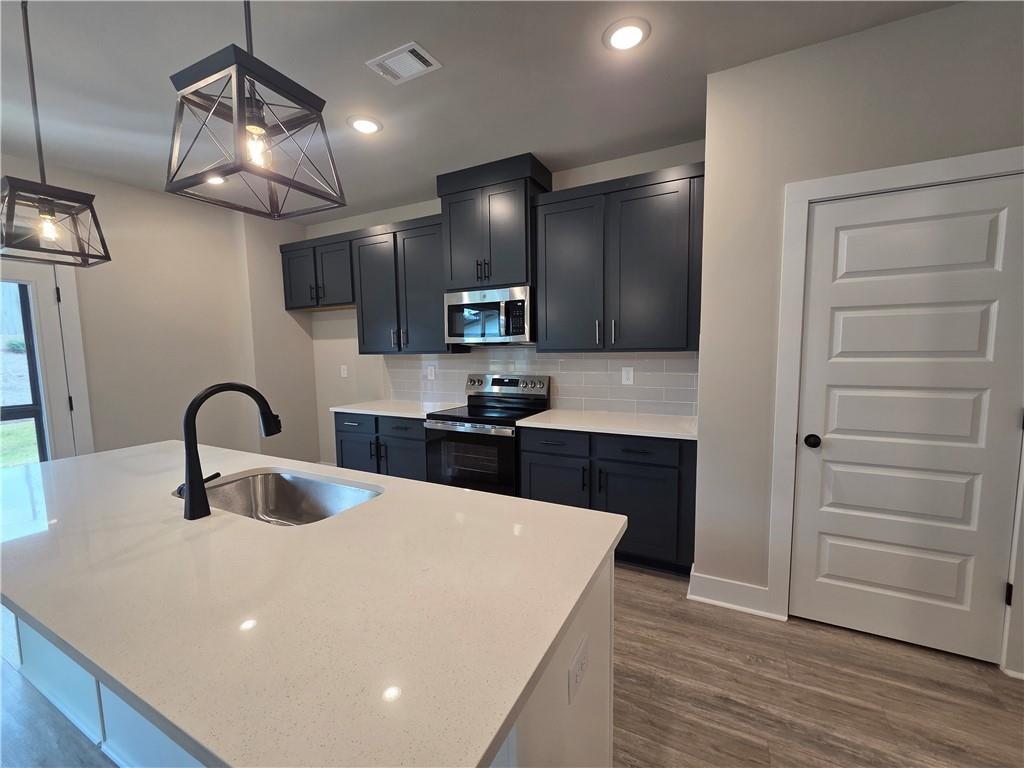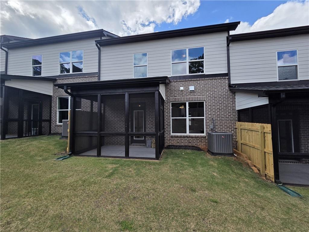 BRAND NEW TOWNHOUSE - 4 BEDROOM AND 2.5 BATHROOM - Sweetwater floor plan with a covered screened-in back porch, a 4 bedroom design in the gated community of Parkstone Row in Tucker, GA. Parkstone Row is also located in the highly regarded Parkview High School District, making it a top choice for renters seeking quality schools and convenience. The homes in Parkstone Row feature a premium list of modern finishes that outshine the competition. Brick exteriors with cedar accents, 3/4 view front doors. Inside, you'll find designer kitchens with quartz countertops, shaker-style cabinetry, stainless steel appliances, subway tile backsplash, and pendant lighting over the island. High-end details continue throughout with 1x6 baseboard trim, 1x4 door casings, 1x4 window surrounds, 5-panel interior doors, flat-panel wainscoting in the foyer and dining area, black hardware and fixtures, oak site-finished stained hardwood stairs, and fully tiled master showers on the floor and walls with frameless glass doors. LVP flooring extends through the main level and continues upstairs in the common areas, providing both durability and style where it’s often overlooked. Both levels feature 9-foot ceilings, and the main level is enhanced by 6-foot-tall windows that fill the space with natural light. Each home also includes an electric vehicle charging outlet. HOA dues cover lawn maintenance, termite bond, and select exterior building maintenance, offering a low-maintenance lifestyle in a secure, gated setting.