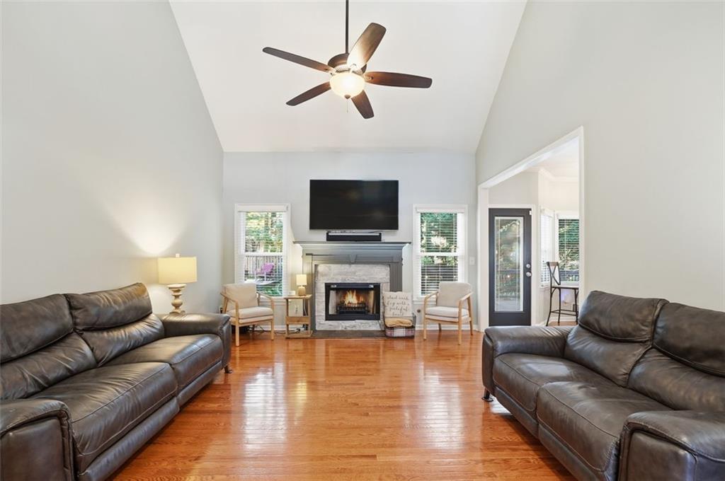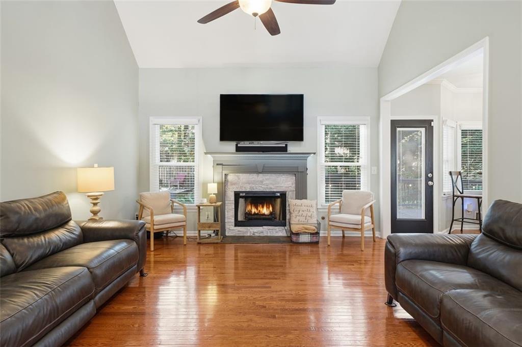 Welcome to your future home in the highly sought after Amberton Community in the Hillgrove High School district. Amazing curb appeal with gorgeous wrap around porch overlooking a well manicured front yard and side yard, perfect for entertaining. This home has been meticulously maintained. Beautiful hardwood floors throughout, with formal dining room, spacious kitchen with bar seating, opening up to the large living room with fireplace and high ceilings. Spacious master on the main with vaulted ceiling, large open bathroom with heated floors, double vanity, and walk in closet. 3 large bedrooms upstairs with balcony overlooking living room and foyer. Finished basement with spacious media room, office, and 2 storage rooms. Basement exterior door opens to exquisite side yard, complete with stone pavers, large wood burning fireplace, sitting area with elevated bar, TV viewing area, and water fountain. Perfect for watching the big game! Amberton features pedestrian sidewalks, walking trails, playground, pond, tennis/pickleball courts, large clubhouse, and Olympic-size swimming pool.