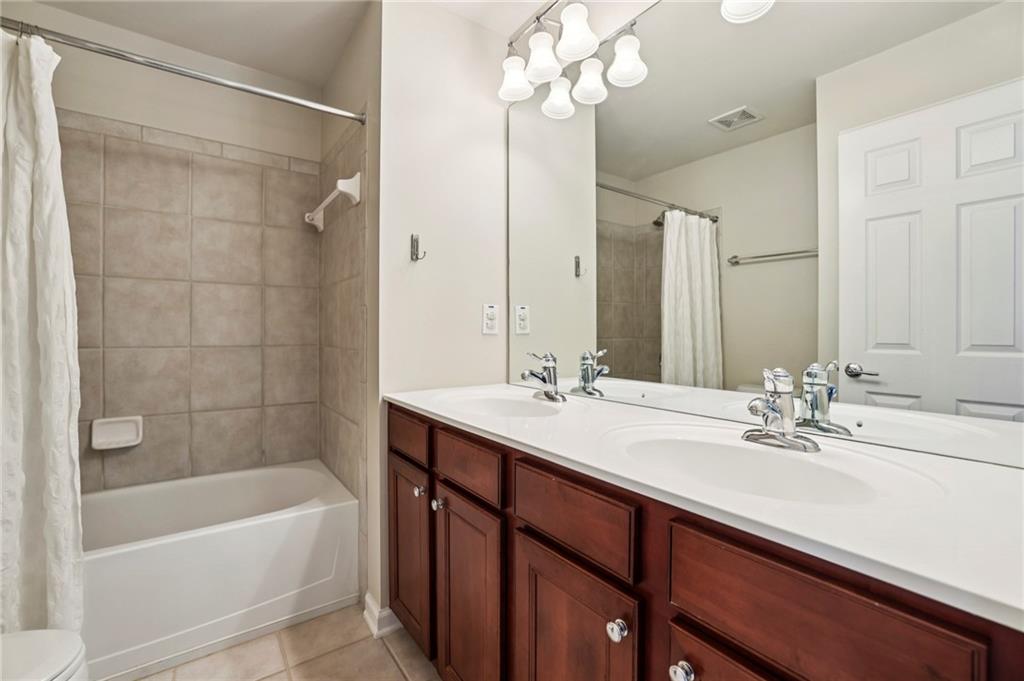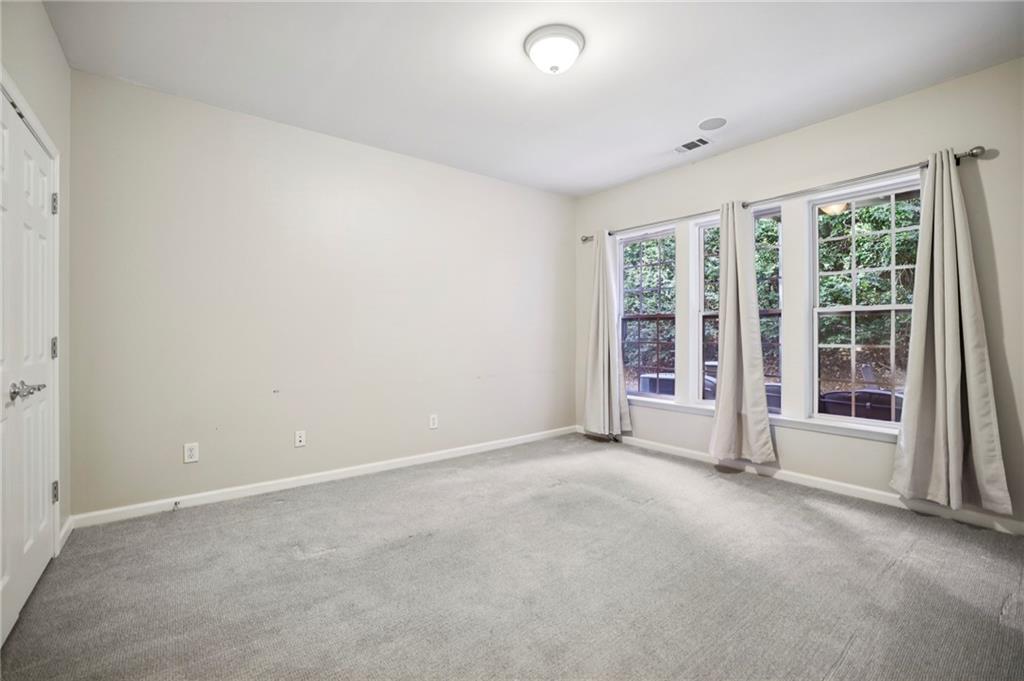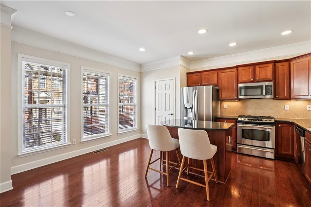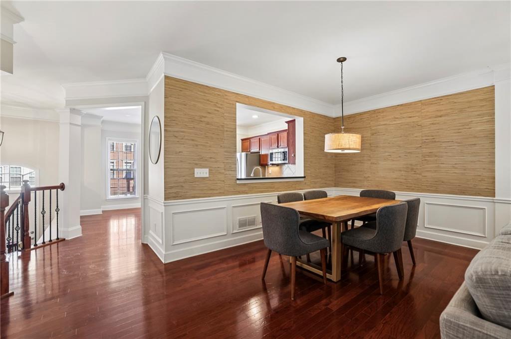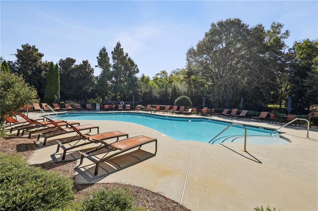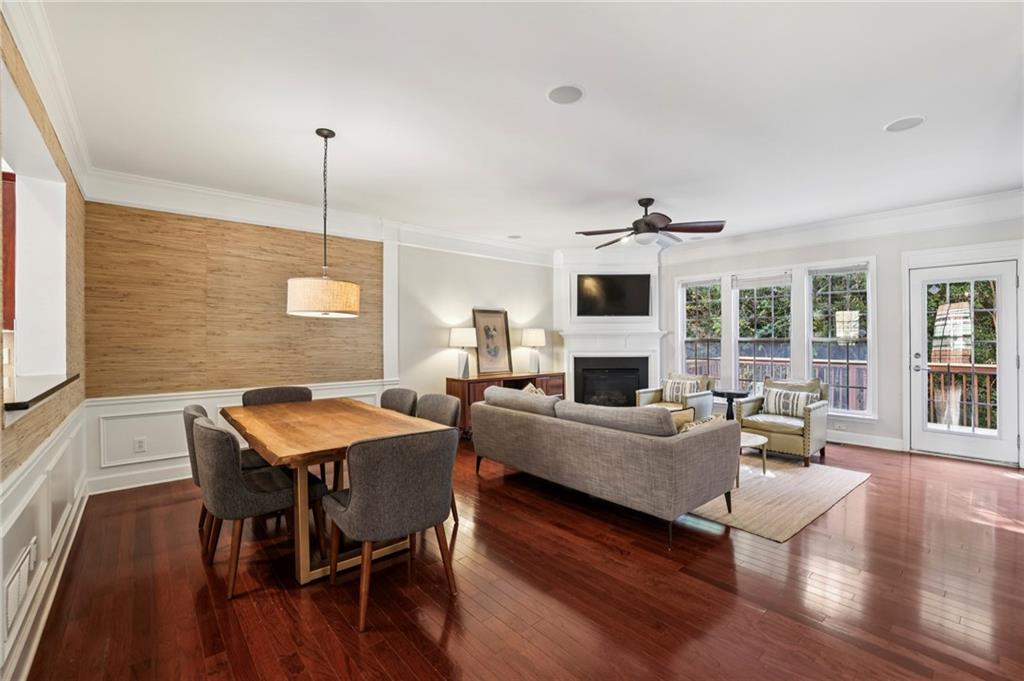 Located in Westbury at Vinings inside the Perimeter, this light and bright townhome offers abundant living space. With gleaming hardwood floors, the main level features an inviting kitchen equipped with stainless steel appliances, an island with seating, granite countertops, a walk-in pantry, and three nearly floor-to-ceiling windows. A pass-through to the dining room allows for views into the living area while maintaining a distinct kitchen space. The inviting dining area includes picture molding wainscoting, grasscloth-style wallpaper and a seamless flow into the fireside living room. A French door off the living room opens to the rear deck, which overlooks a wooded area– creating privacy and tranquility. A convenient half bathroom completes the main level. Venture upstairs to discover the spacious primary suite, which includes a trio of windows overlooking the wooded backyard, a tray ceiling with oversized crown molding, a walk-in closet and an en suite bathroom with two vanities, a jetted bathtub and a separate shower. Two additional bedrooms, featuring neutral finishes, and a shared bathroom with a double vanity complete the upper level. The living spaces continue on the lower level, which includes a flex space – perfect for an office or additional bedroom, a half bathroom, a laundry room, and an exterior door to the covered patio. This level also includes ample storage space and access to the two-car garage. Westbury at Vinings is a quiet community with a pool and cabana, a dog park, beautiful green spaces and plenty of guest parking. Enjoy living on the border of the City of Atlanta with low Cobb County taxes and easy access to I-285, The Battery Atlanta, Truist Field, retail, trails, the Chattahoochee River and nearby parks. This home is also conveniently located just 20 minutes from Hartsfield-Jackson Atlanta International Airport and within minutes of Smyrna, Buckhead, the Westside and more.