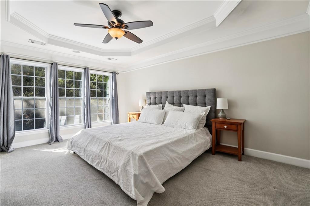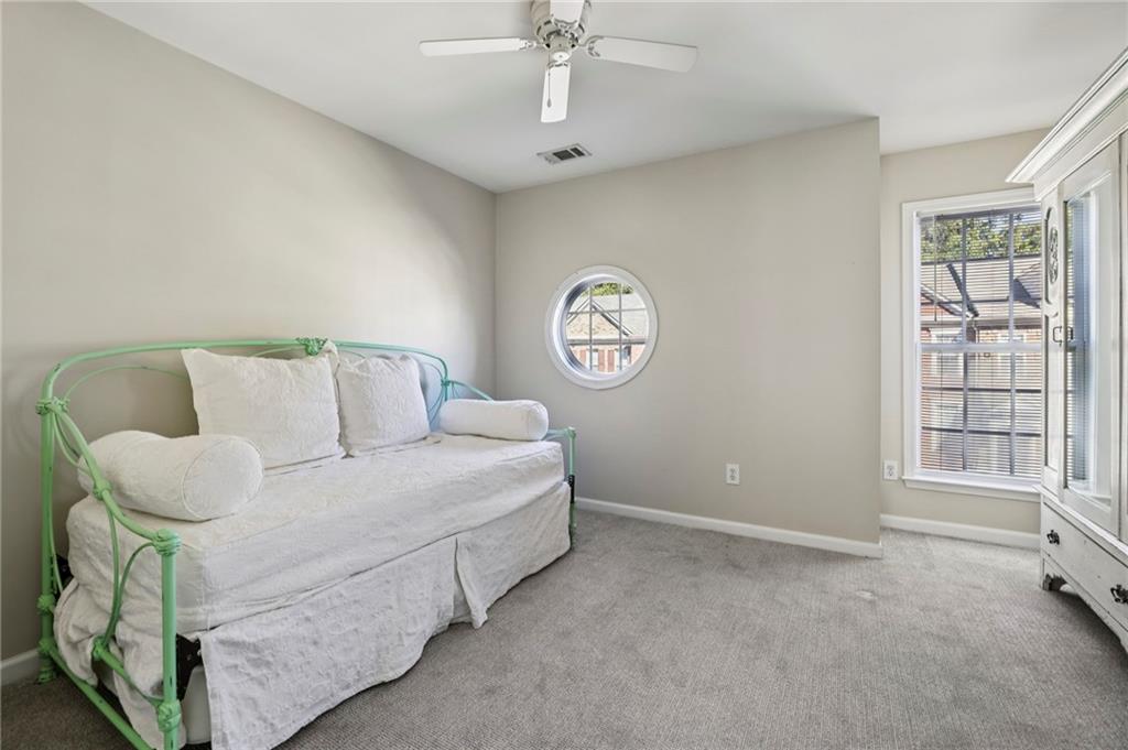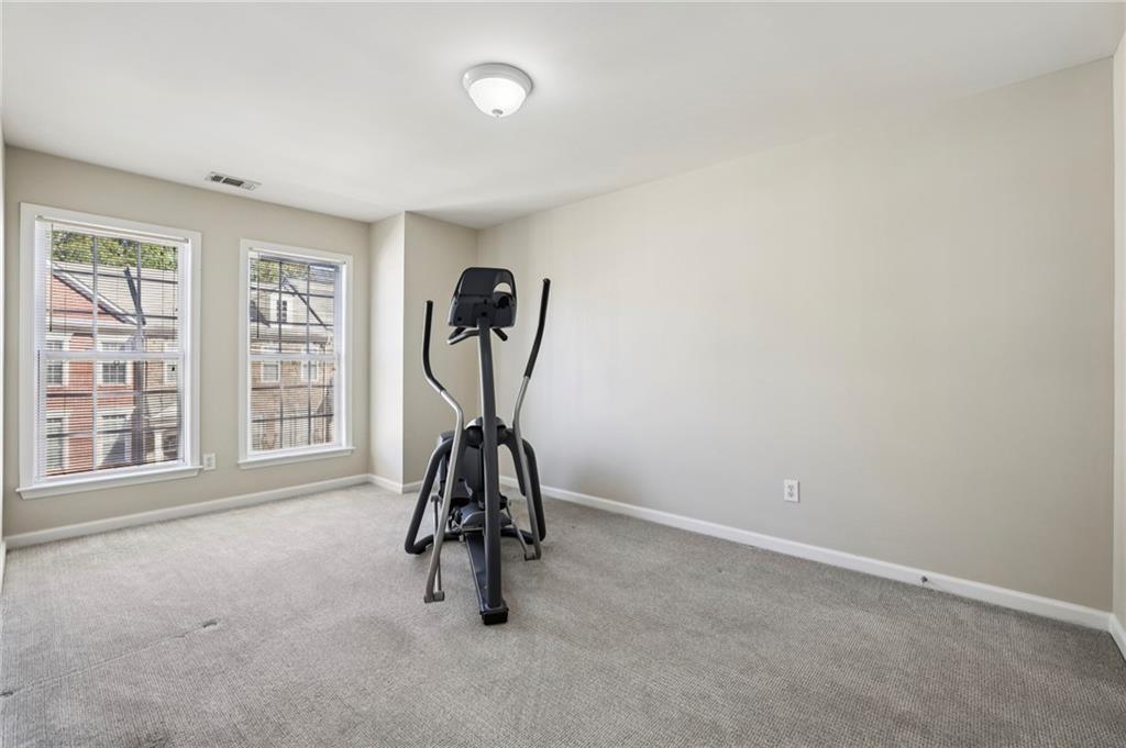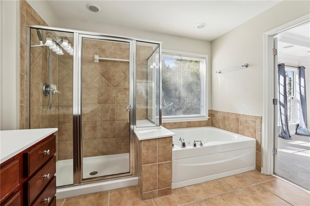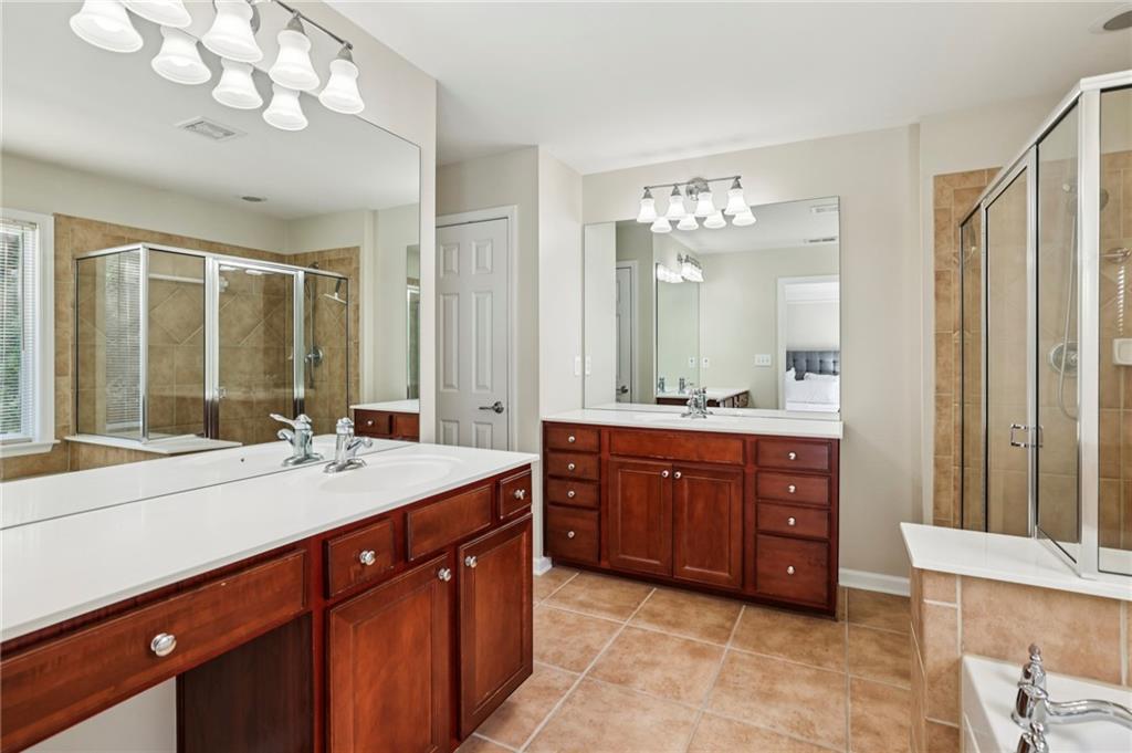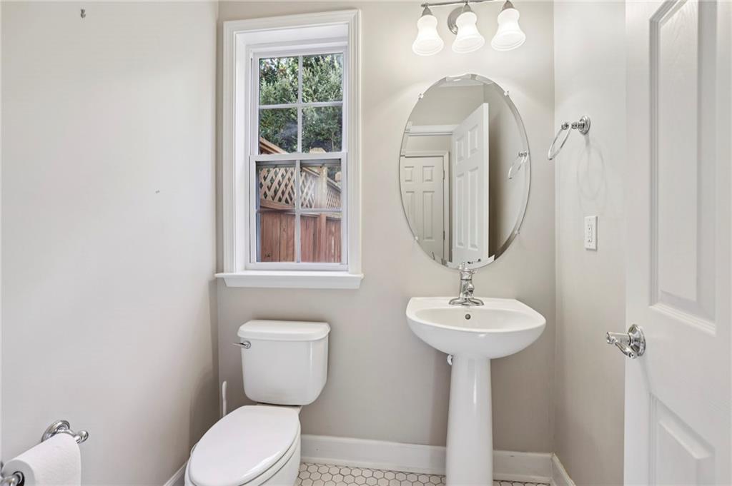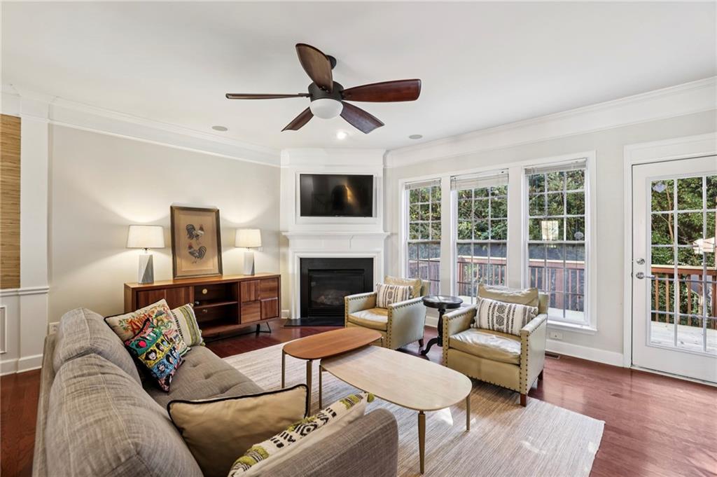 Located in Westbury at Vinings inside the Perimeter, this light and bright townhome offers abundant living space. With gleaming hardwood floors, the main level features an inviting kitchen equipped with stainless steel appliances, an island with seating, granite countertops, a walk-in pantry, and three nearly floor-to-ceiling windows. A pass-through to the dining room allows for views into the living area while maintaining a distinct kitchen space. The inviting dining area includes picture molding wainscoting, grasscloth-style wallpaper and a seamless flow into the fireside living room. A French door off the living room opens to the rear deck, which overlooks a wooded area– creating privacy and tranquility. A convenient half bathroom completes the main level. Venture upstairs to discover the spacious primary suite, which includes a trio of windows overlooking the wooded backyard, a tray ceiling with oversized crown molding, a walk-in closet and an en suite bathroom with two vanities, a jetted bathtub and a separate shower. Two additional bedrooms, featuring neutral finishes, and a shared bathroom with a double vanity complete the upper level. The living spaces continue on the lower level, which includes a flex space – perfect for an office or additional bedroom, a half bathroom, a laundry room, and an exterior door to the covered patio. This level also includes ample storage space and access to the two-car garage. Westbury at Vinings is a quiet community with a pool and cabana, a dog park, beautiful green spaces and plenty of guest parking. Enjoy living on the border of the City of Atlanta with low Cobb County taxes and easy access to I-285, The Battery Atlanta, Truist Field, retail, trails, the Chattahoochee River and nearby parks. This home is also conveniently located just 20 minutes from Hartsfield-Jackson Atlanta International Airport and within minutes of Smyrna, Buckhead, the Westside and more.